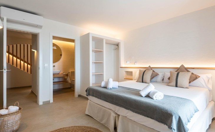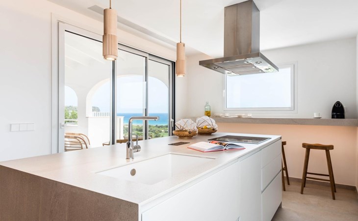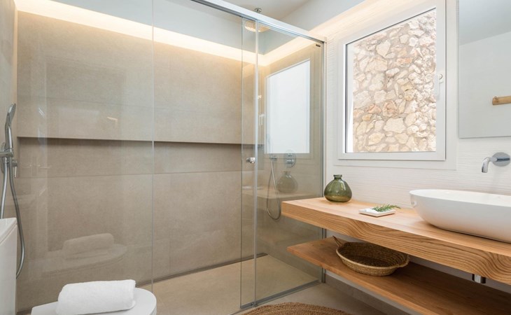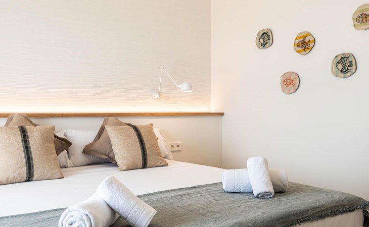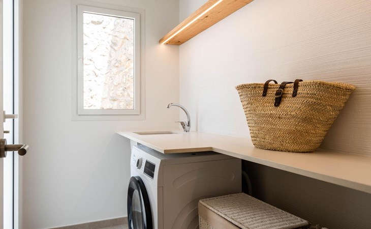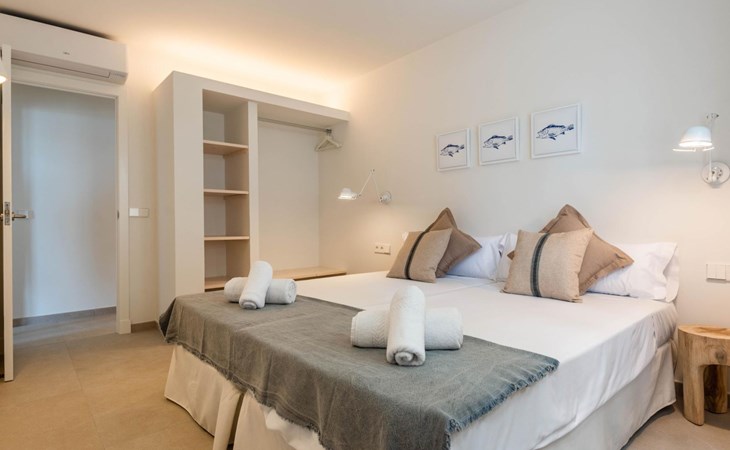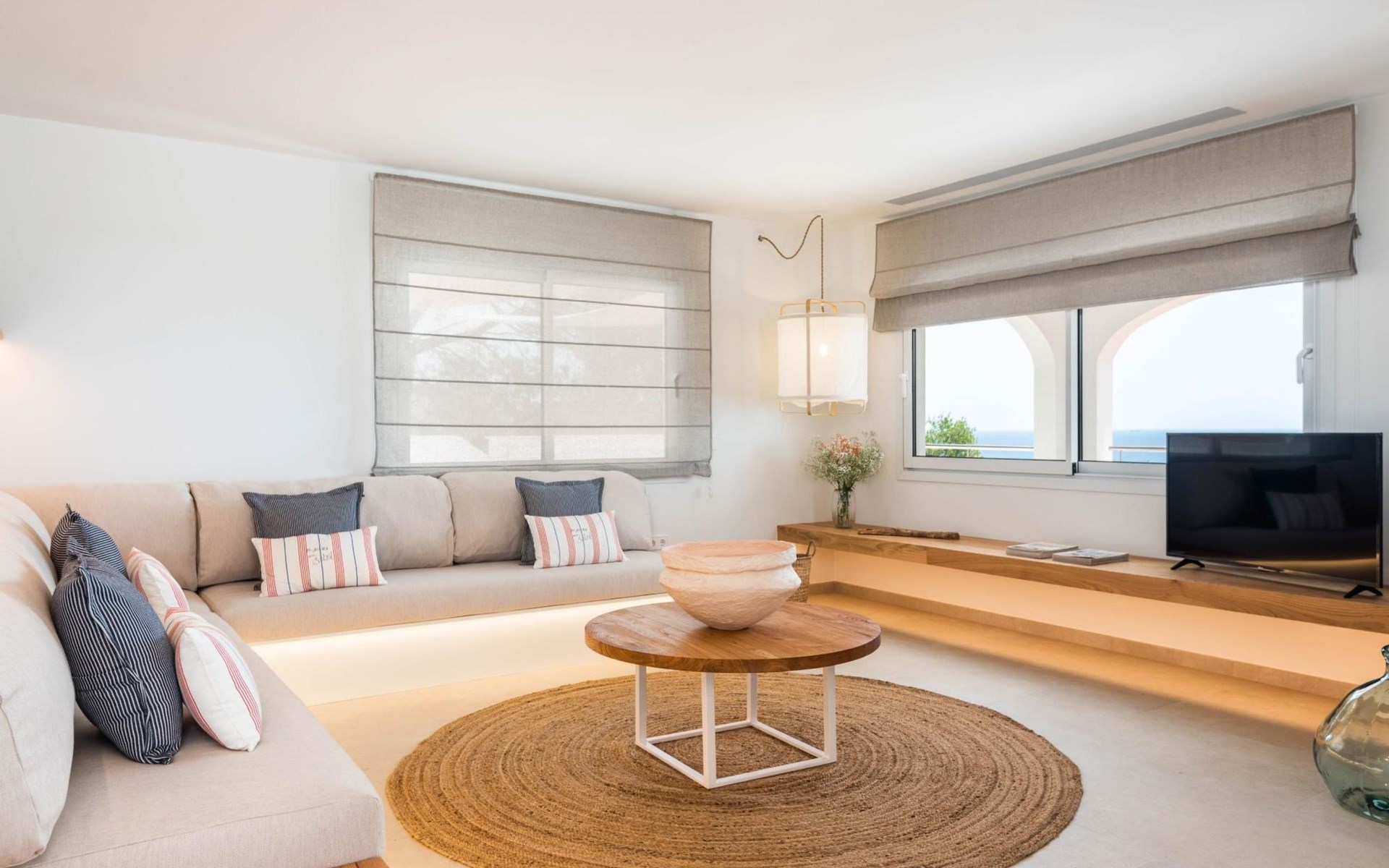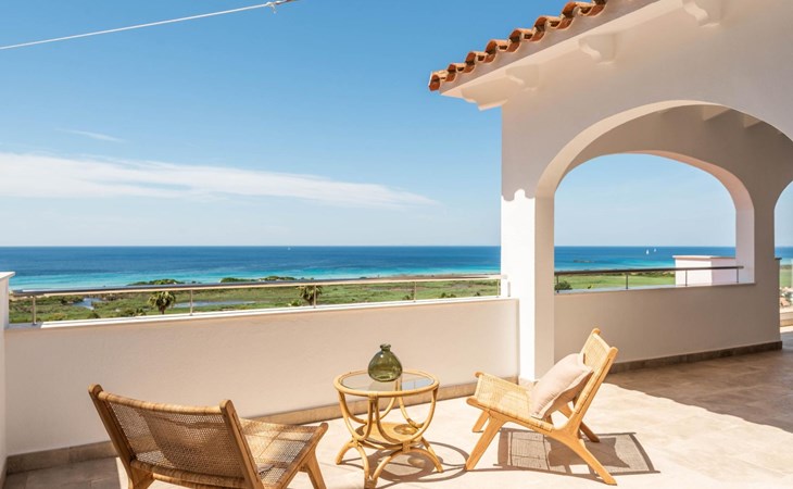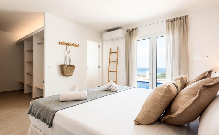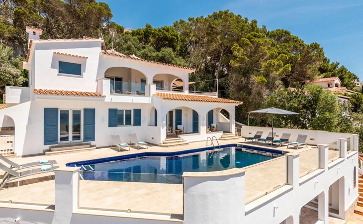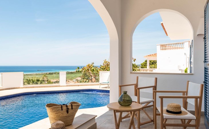 Son Bou: Very modern, beautiful villa "Villa Atalis", renovated in 2022. In the centre of San Jaime, 700 m from the sea. Private: property 782 m2, swimming pool (8 x 4 m, seasonal availability: 20.Apr. - 01.Nov.). Outdoor shower, barbecue. In the house: internet access, WiFi, washing machine. Parking on the premises. Shop 700 m, grocery 800 m, restaurant 600 m, bus stop "Son Bou" 450 m, sandy beach 700 m. Please note: car recommended. Baby equipment on request. Groups of teenagers on request only. Loading and unloading of baggage is possible at the holiday house. Main road 300 m from the property. Airfield 20 km from the property.