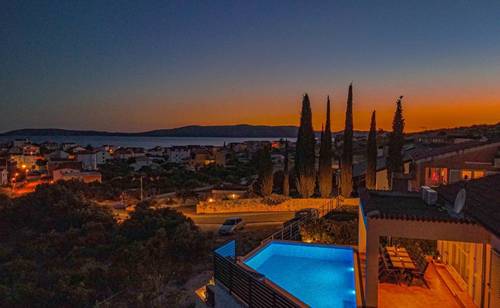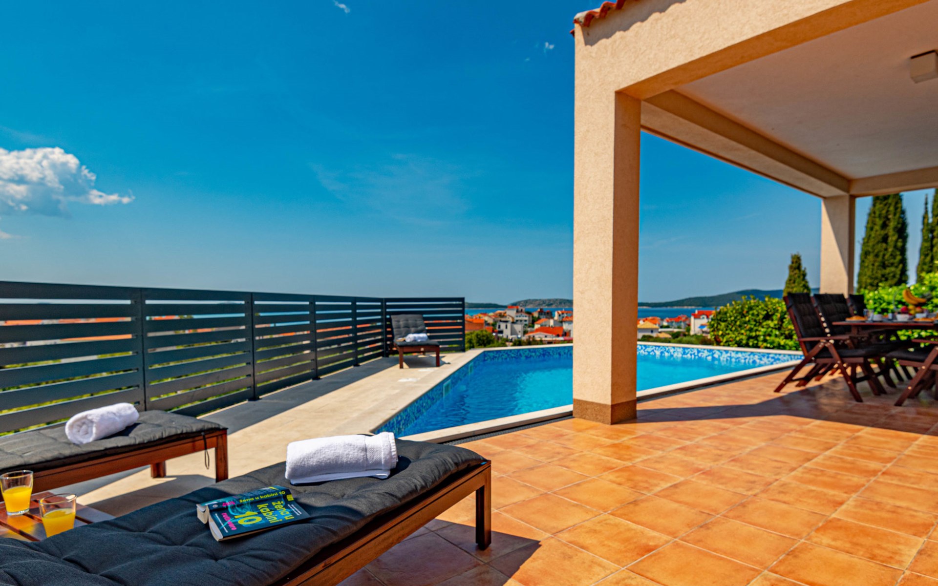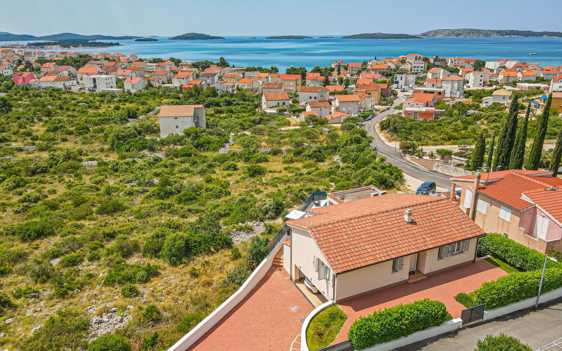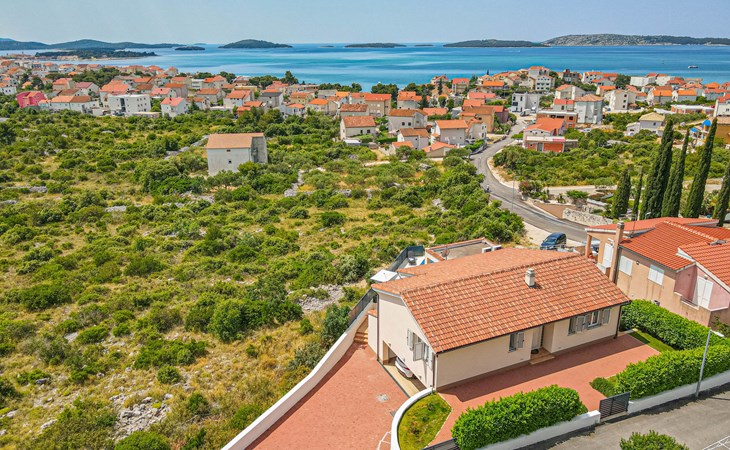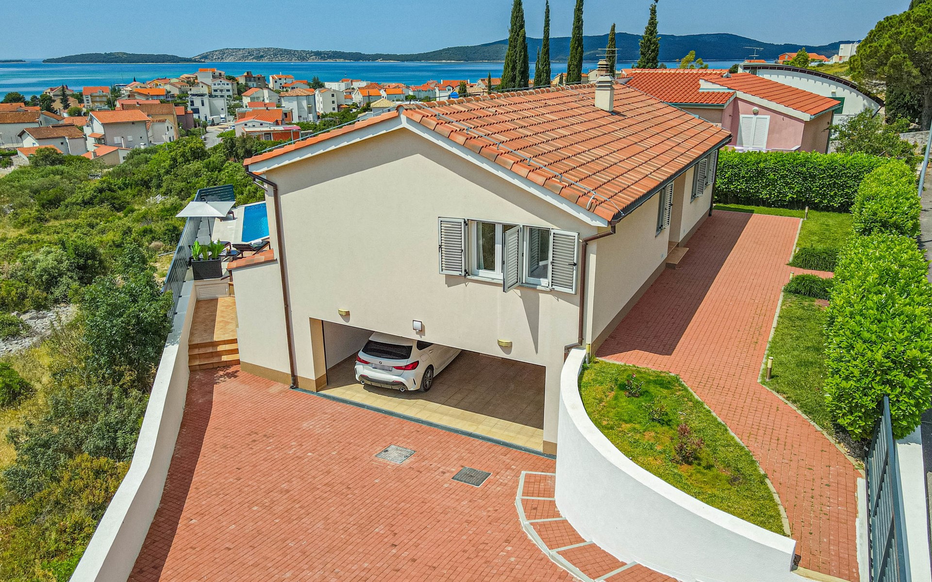Beautiful single-family house "Paola", 3 storeys. In a sunny position, 500 m from the sea, 500 m from the beach. Private: property 550 m2 (fenced), swimming pool (32 m2, depth 150 cm, seasonal availability: 01.Apr. - 31.Oct.) with internal staircase. Unconventional pool shape. Outdoor shower, barbecue, pool maintenance by the owner/gardener. In the house: internet access, fitness room, washing machine, tumble dryer. Shop, restaurant, bus stop 500 m, railway station 6 km, ferry 6 km, pebble beach 500 m, public bathing area 1.6 km, concrete beach 500 m. Nearby attractions: Aquapark 2 km, NP Krka 17 km.