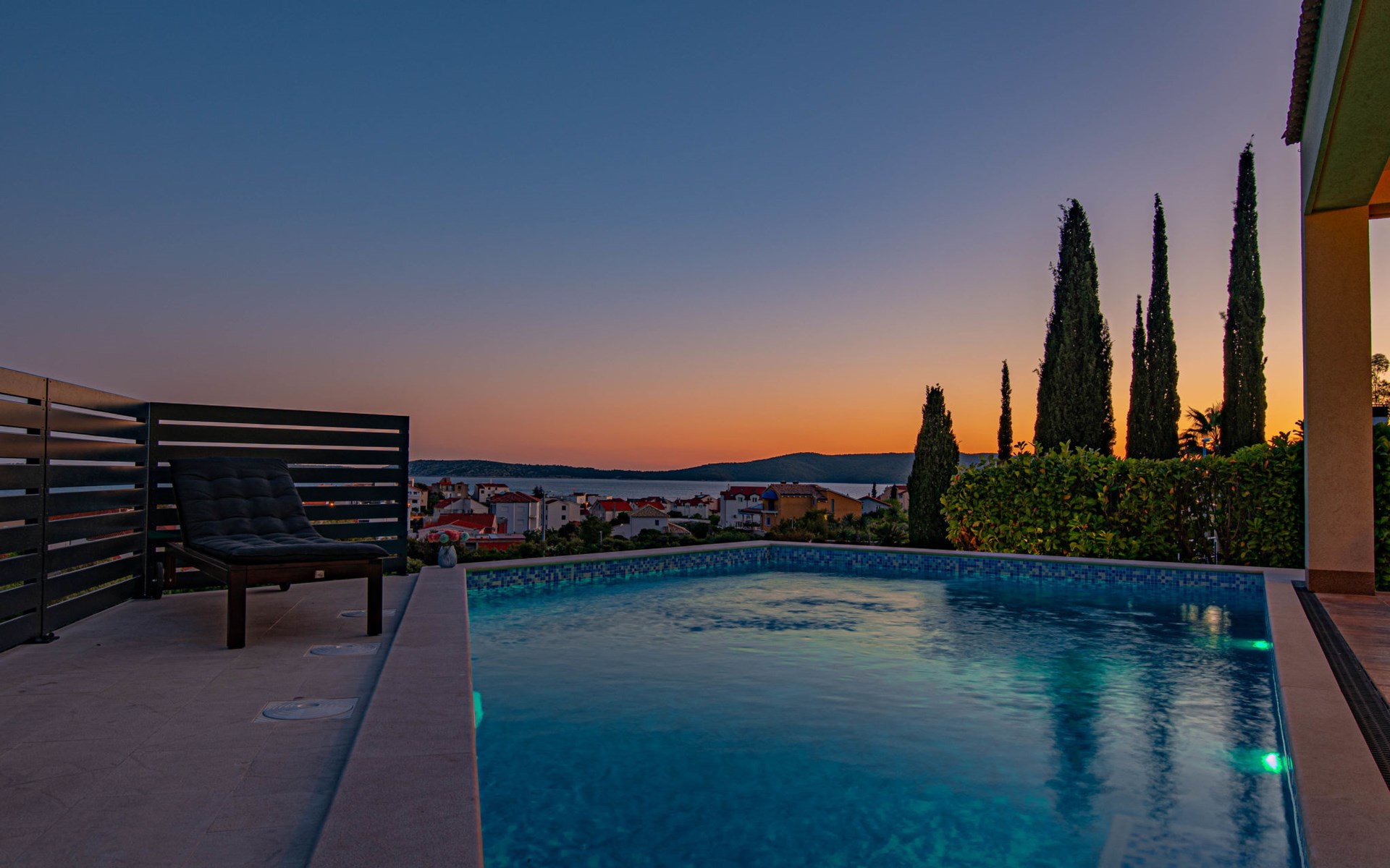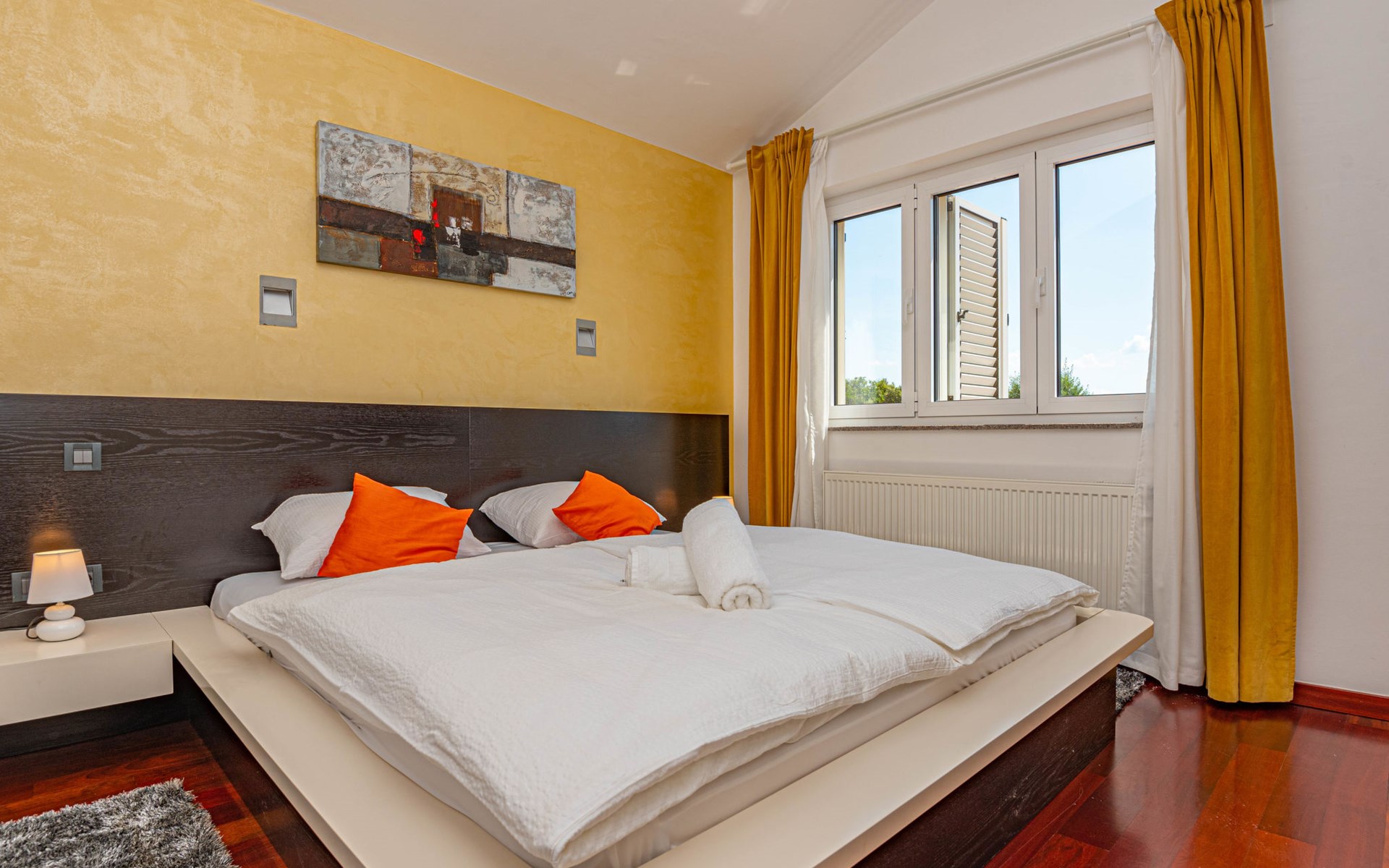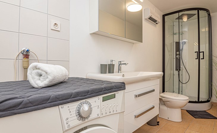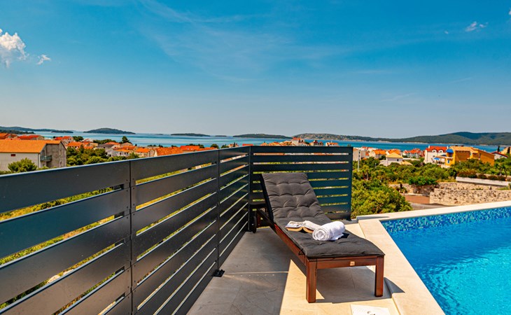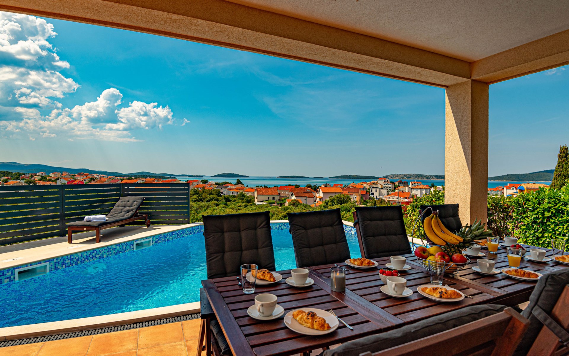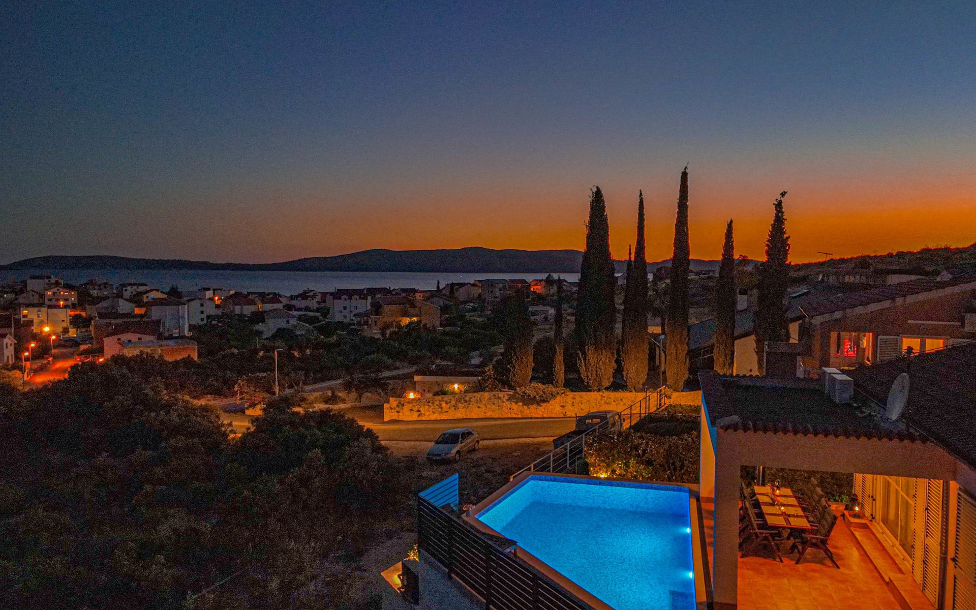 Beautiful single-family house "Paola", 3 storeys. In a sunny position, 500 m from the sea, 500 m from the beach. Private: property 550 m2 (fenced), swimming pool (32 m2, depth 150 cm, seasonal availability: 01.Apr. - 31.Oct.) with internal staircase. Unconventional pool shape. Outdoor shower, barbecue, pool maintenance by the owner/gardener. In the house: internet access, fitness room, washing machine, tumble dryer. Shop, restaurant, bus stop 500 m, railway station 6 km, ferry 6 km, pebble beach 500 m, public bathing area 1.6 km, concrete beach 500 m. Nearby attractions: Aquapark 2 km, NP Krka 17 km.