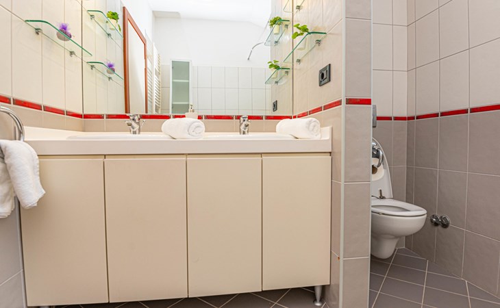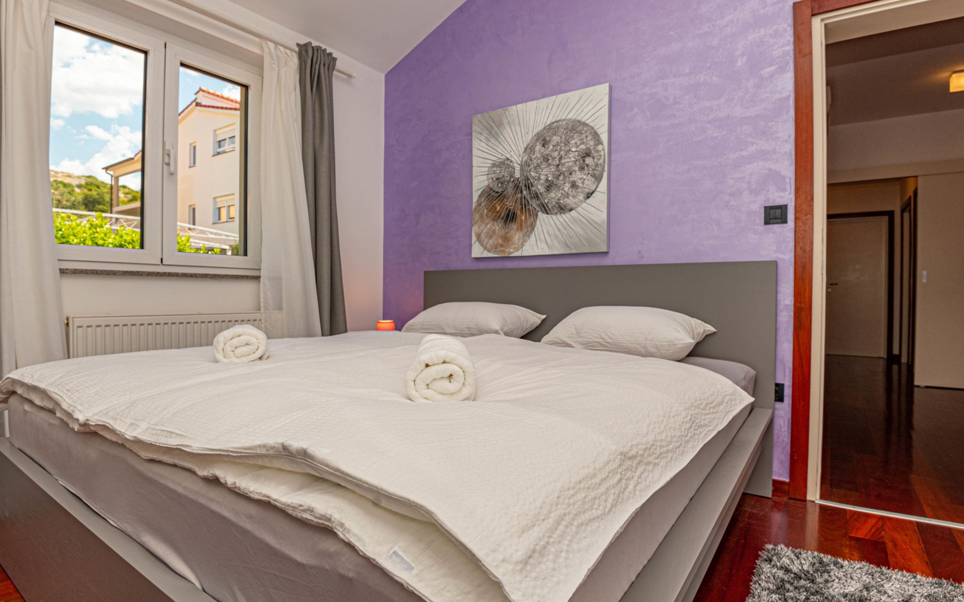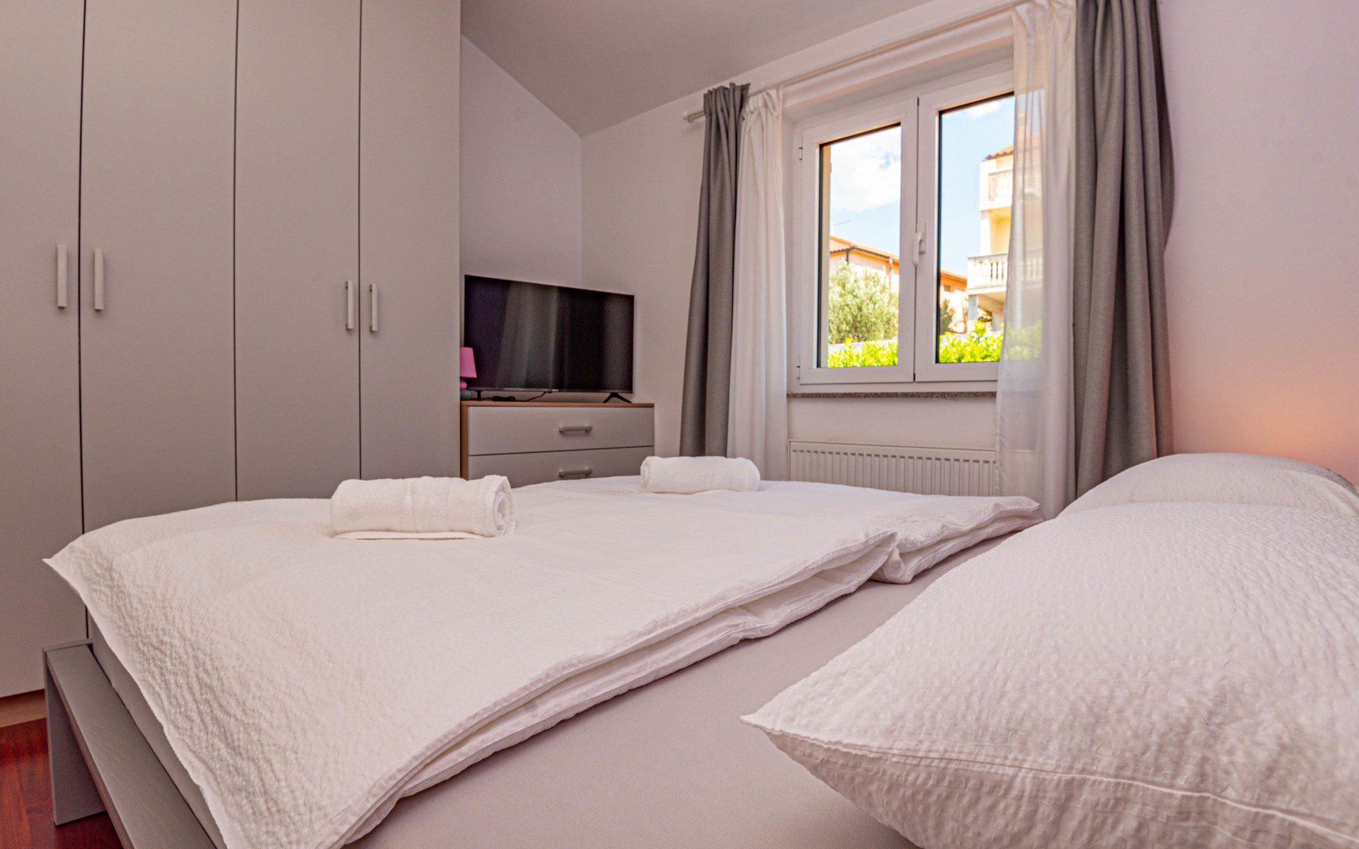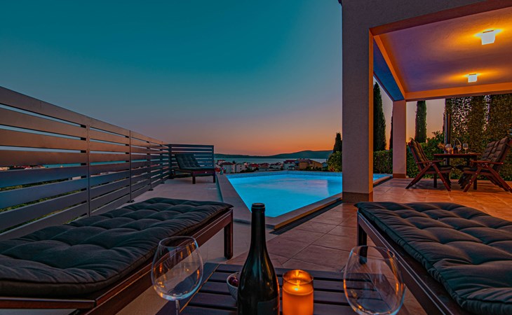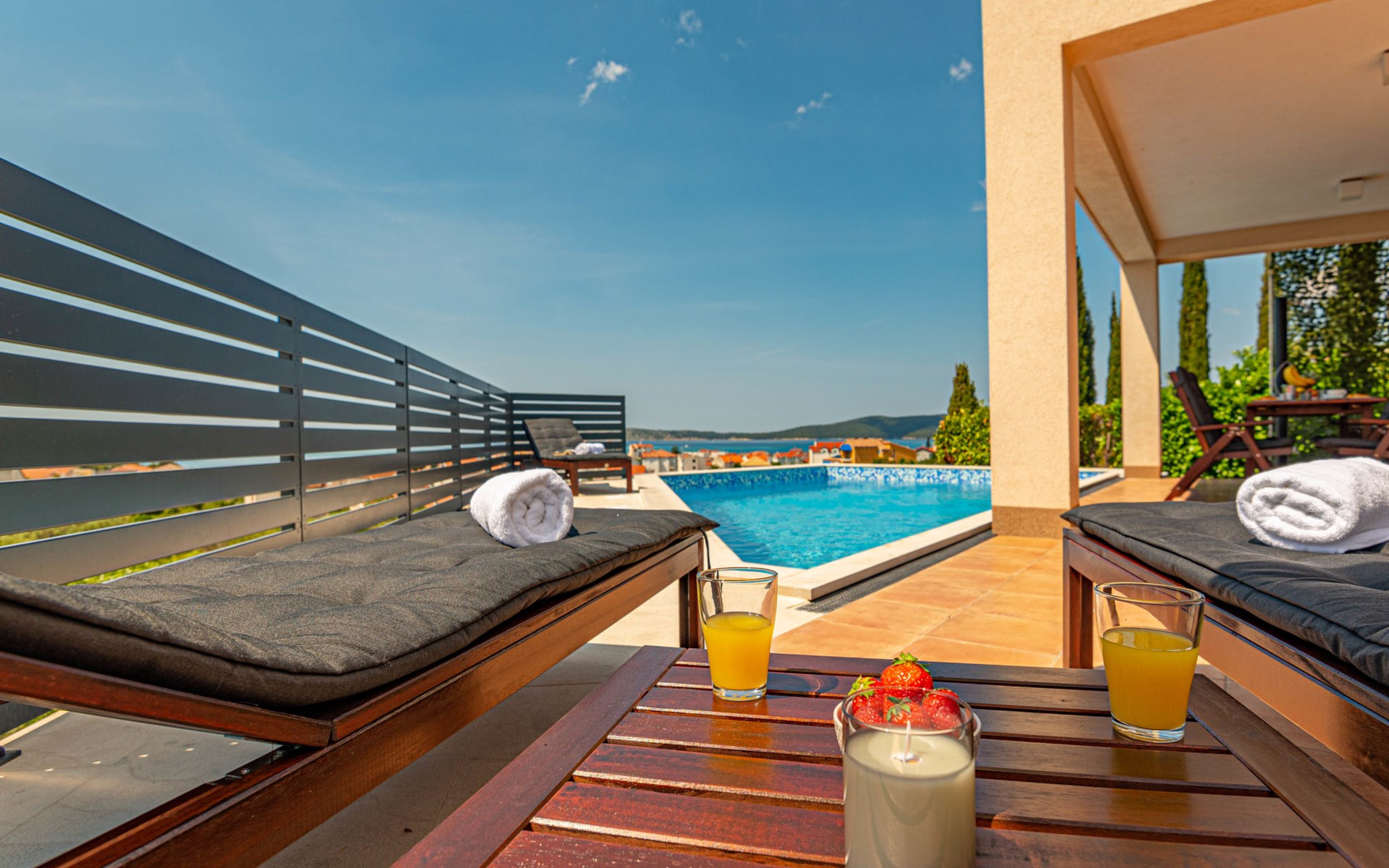 Beautiful single-family house "Paola", 3 storeys. In a sunny position, 500 m from the sea, 500 m from the beach. Private: property 550 m2 (fenced), swimming pool (32 m2, depth 150 cm, seasonal availability: 01.Apr. - 31.Oct.) with internal staircase. Unconventional pool shape. Outdoor shower, barbecue, pool maintenance by the owner/gardener. In the house: internet access, fitness room, washing machine, tumble dryer. Shop, restaurant, bus stop 500 m, railway station 6 km, ferry 6 km, pebble beach 500 m, public bathing area 1.6 km, concrete beach 500 m. Nearby attractions: Aquapark 2 km, NP Krka 17 km.