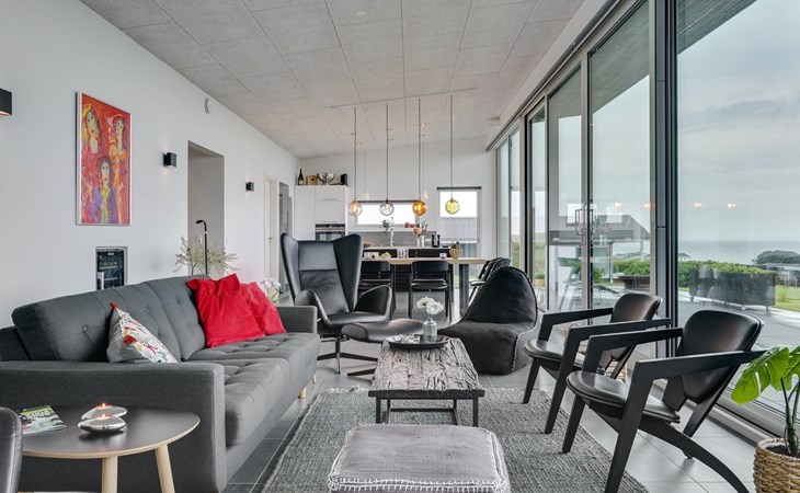 Single-family house, built in 2020. 200 m from the sea. Private: property 1'455 m2, well-kept garden. Terrace (90 m2), barbecue, fireplace. In the house: washing machine, tumble dryer. Parking at the house. E-charging station. Grocery 5 km. Golf course 26.4 km. The owner does not accept any youth groups.