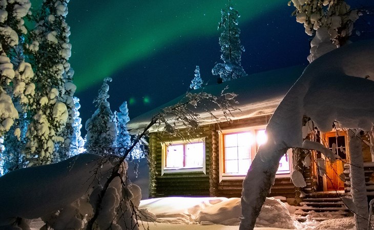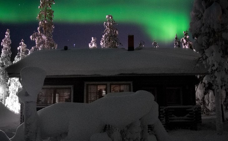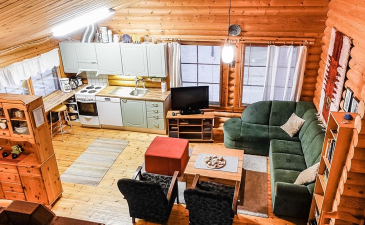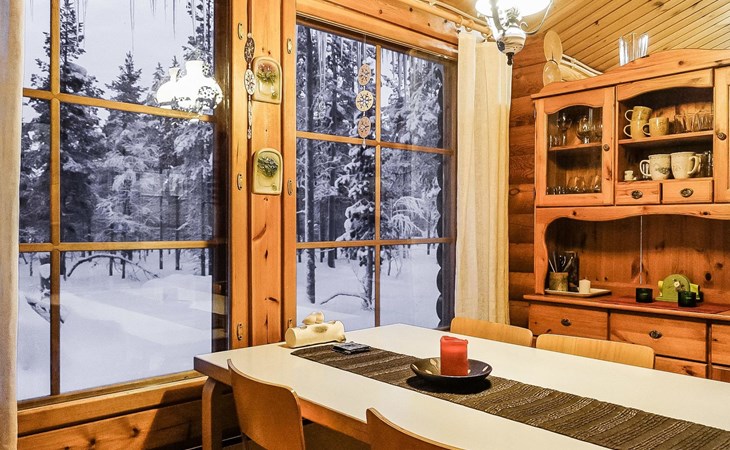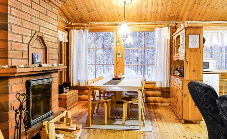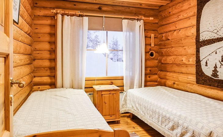 Log cottage 2003, living room/ kitchen 1 extra bed, bedroom 2 beds, bedroom double bed, sleeping loft (to which rather steep stairs): 2 beds and a mattress, dressing room, washroom, sauna (elec. stove), open porch. Barbeque shelter. Comfortable holiday chalet in Laanila, close to Saariselkä (3 km), Kaunispää ski lifts 5 km, Spa 3 km. Saariselkä ski trail network 200 m away, illuminated ski trail 14 km.
