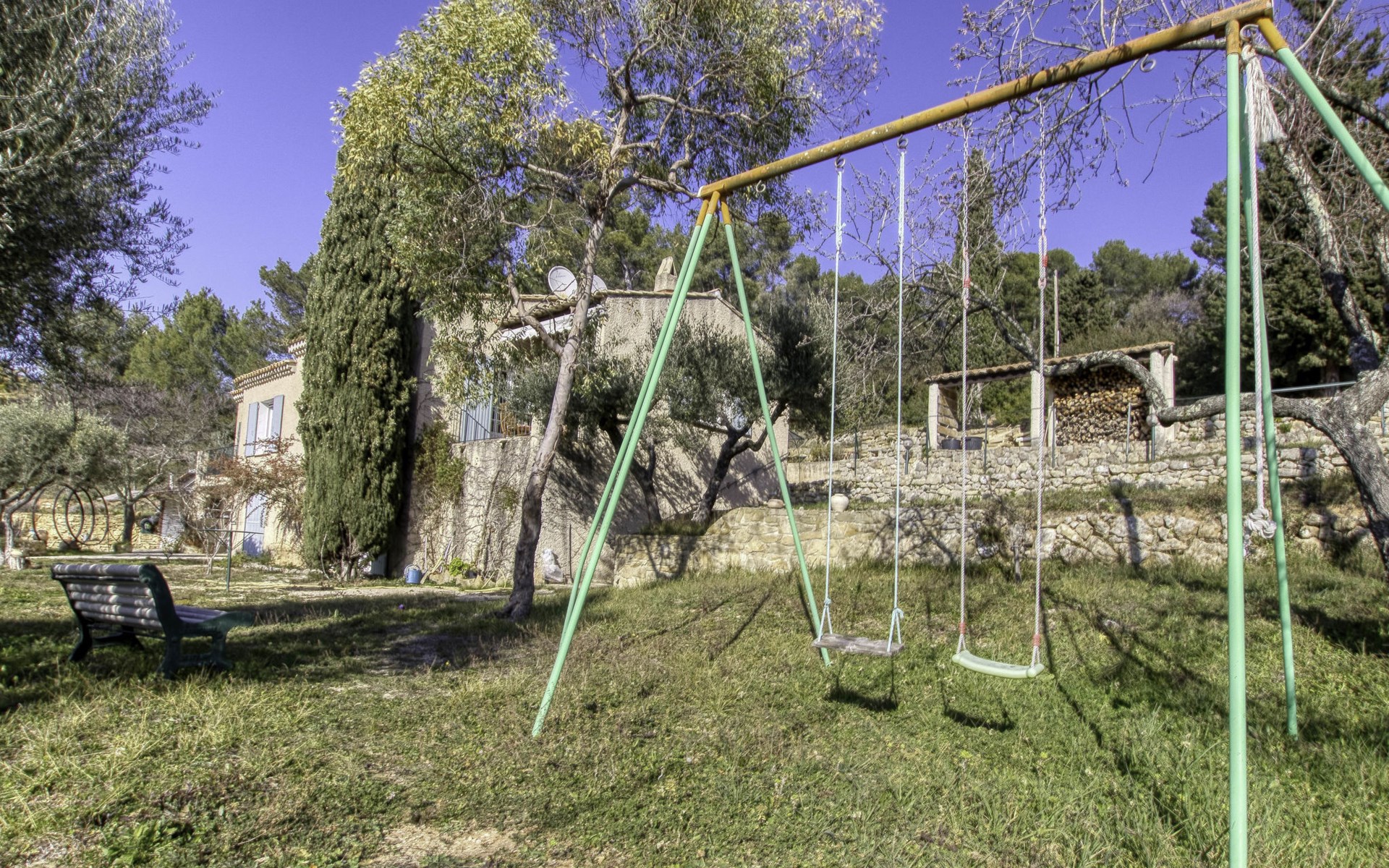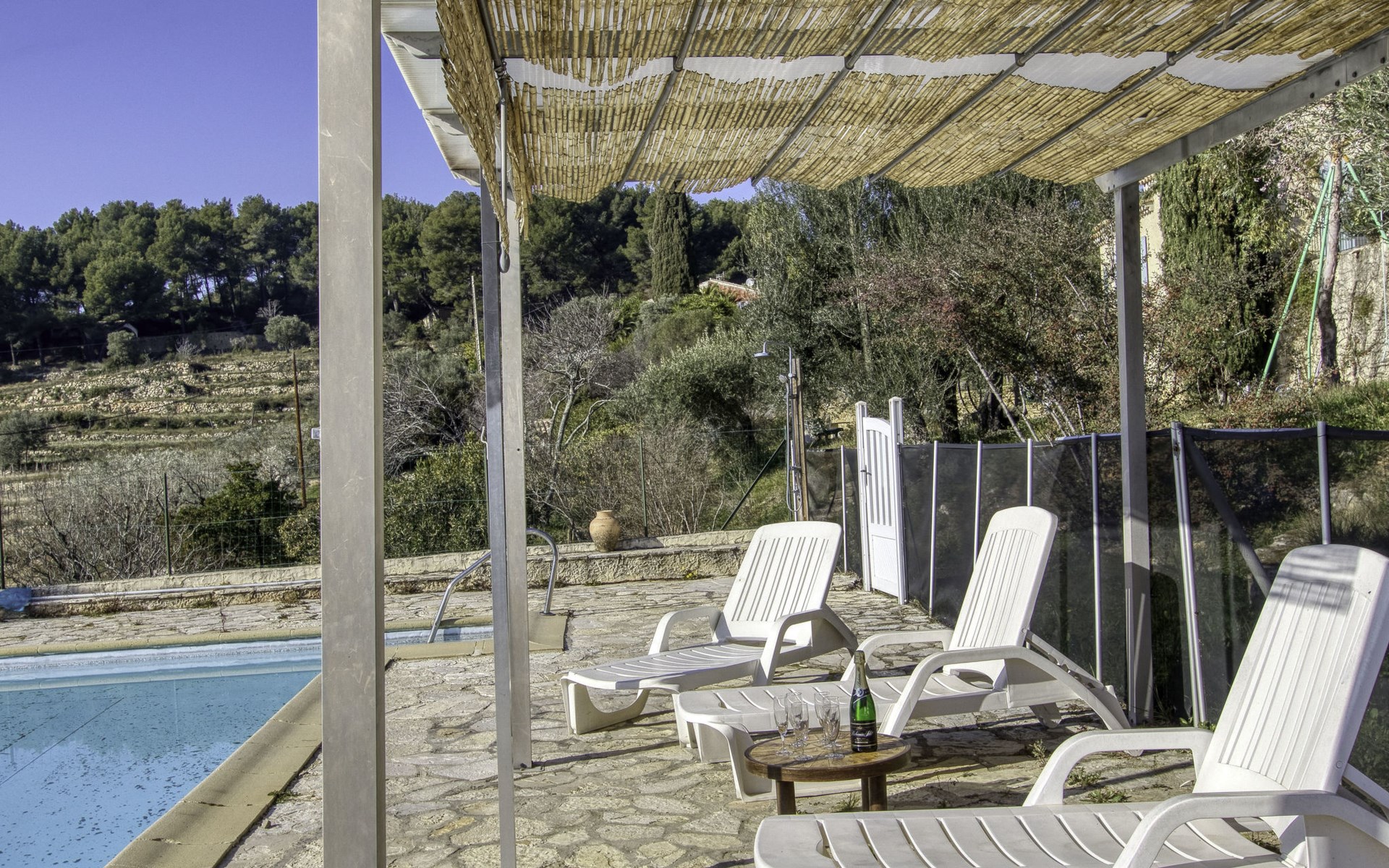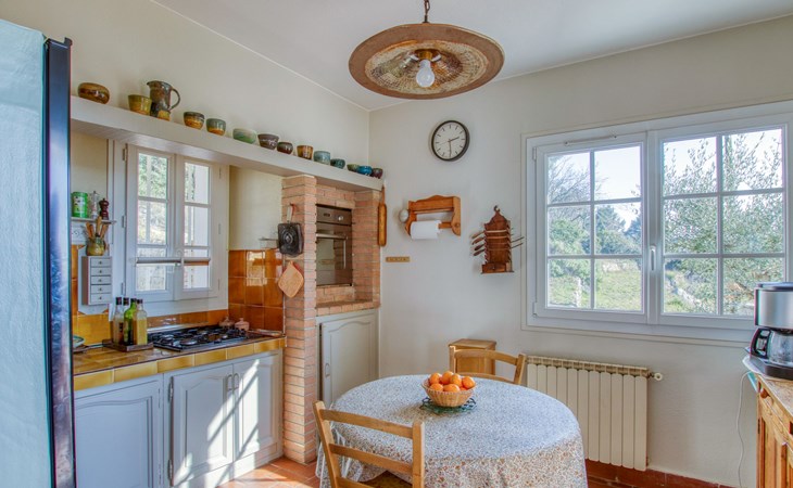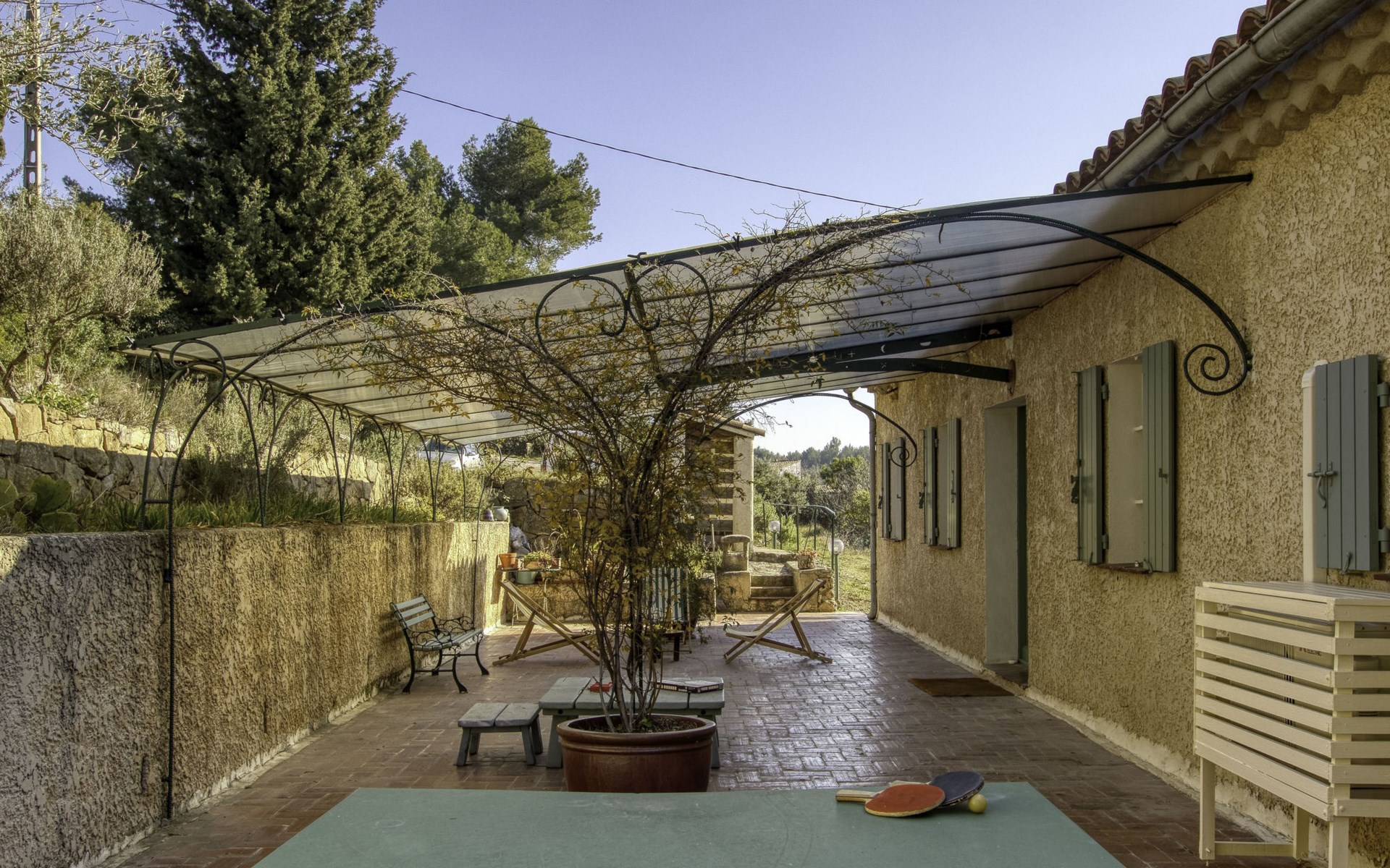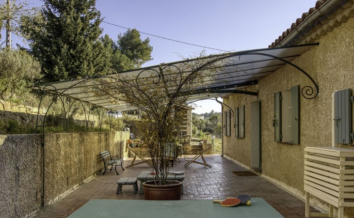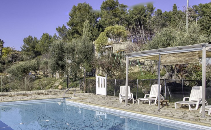 Single-family house "Le Mas de la Poterie", surrounded by trees and vineyards. In the district of Beausset vieux, on the outskirts, 4 km from the centre, in a quiet, sunny position on top of a hill, 9 km from the sea. Private: garden 6'000 m2 (not fenced), swimming pool (10 x 5 m, depth 100 - 170 cm, seasonal availability: 01.May. - 14.Oct.) with salt water and alarm system. Outdoor shower, table tennis (swing), pool maintenance by the owner/gardener. Parking (for 2 cars). Grocery 2 km, restaurant 2 km, sandy beach " de bandol" 9 km. Golf course (18 hole) 10 km. Hiking paths: Sainte Baume,Sainte Victoire,Calanques, Cassis,Porquerolles,Ile verte,Embiez. Please note: car recommended. The owner does not accept any youth groups. The keys‘ handover takes place by the agency INTERHOME in ST CYR SUR MER, 14 km. Owner lives in separate semi-detached house. The house is located on a protected site. The owner has his pottery workshop and his studio in a lower and independent part of the house,¨.