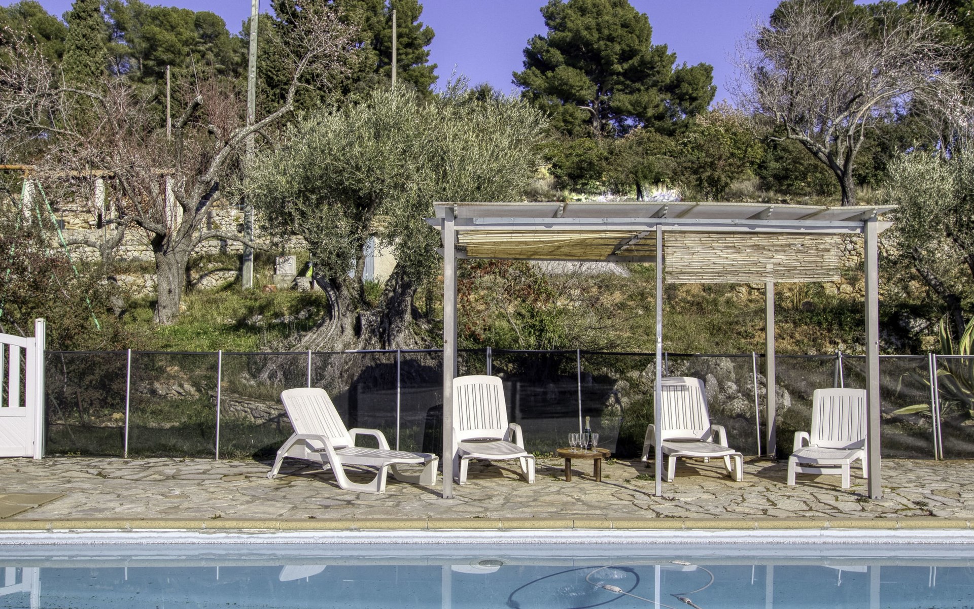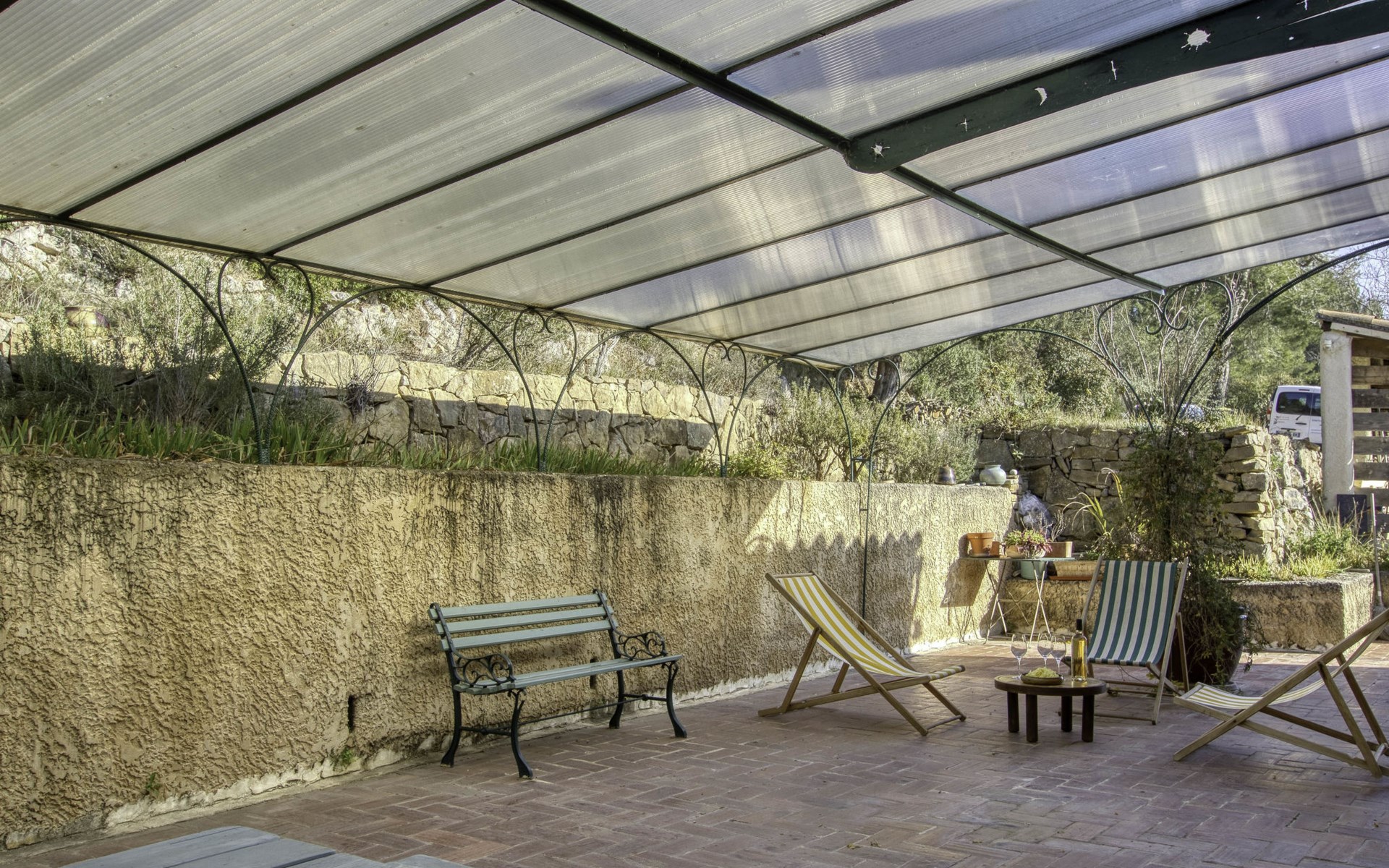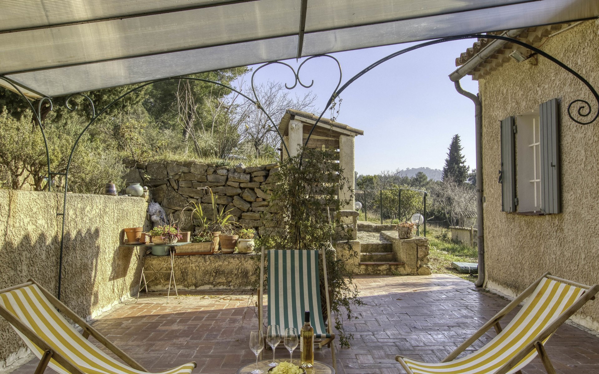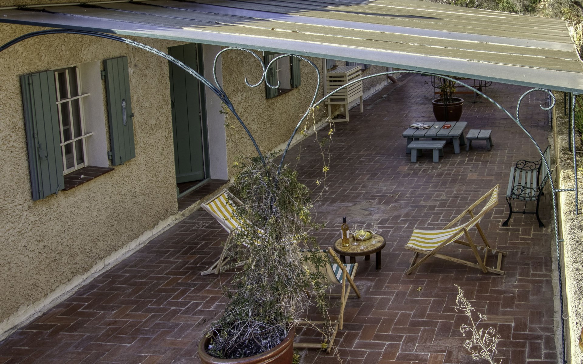 Single-family house "Le Mas de la Poterie", surrounded by trees and vineyards. In the district of Beausset vieux, on the outskirts, 4 km from the centre, in a quiet, sunny position on top of a hill, 9 km from the sea. Private: garden 6'000 m2 (not fenced), swimming pool (10 x 5 m, depth 100 - 170 cm, seasonal availability: 01.May. - 14.Oct.) with salt water and alarm system. Outdoor shower, table tennis (swing), pool maintenance by the owner/gardener. Parking (for 2 cars). Grocery 2 km, restaurant 2 km, sandy beach " de bandol" 9 km. Golf course (18 hole) 10 km. Hiking paths: Sainte Baume,Sainte Victoire,Calanques, Cassis,Porquerolles,Ile verte,Embiez. Please note: car recommended. The owner does not accept any youth groups. The keys‘ handover takes place by the agency INTERHOME in ST CYR SUR MER, 14 km. Owner lives in separate semi-detached house. The house is located on a protected site. The owner has his pottery workshop and his studio in a lower and independent part of the house,¨.