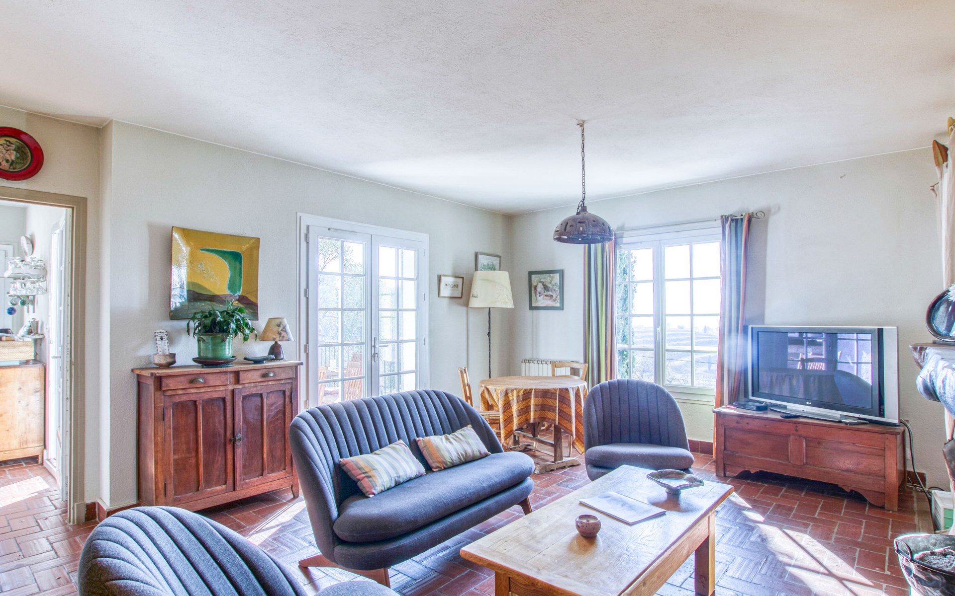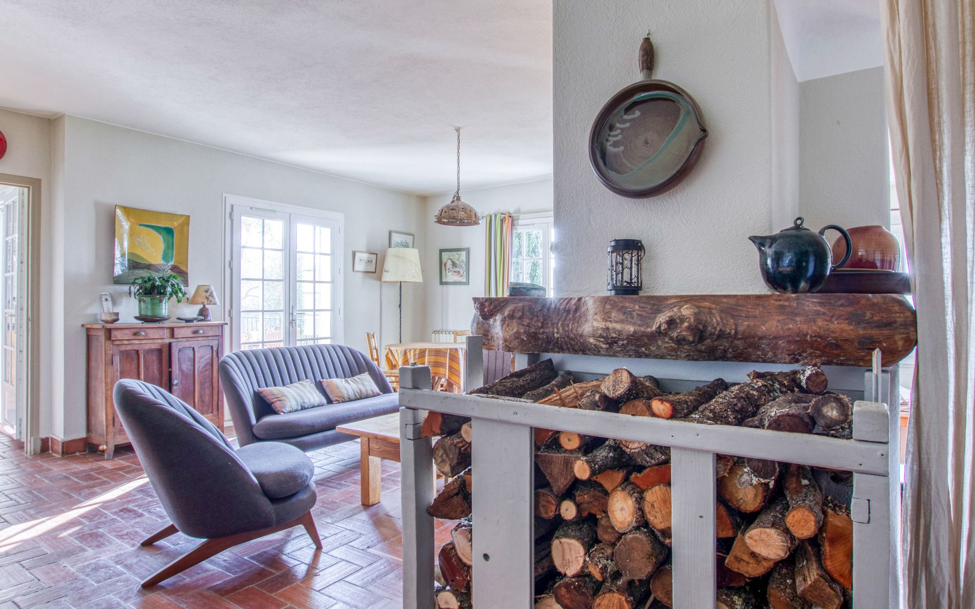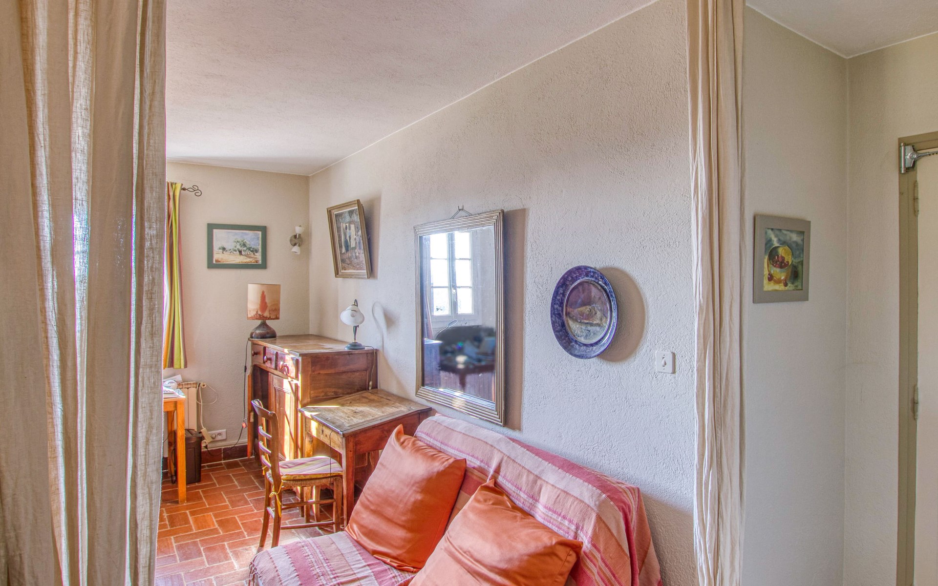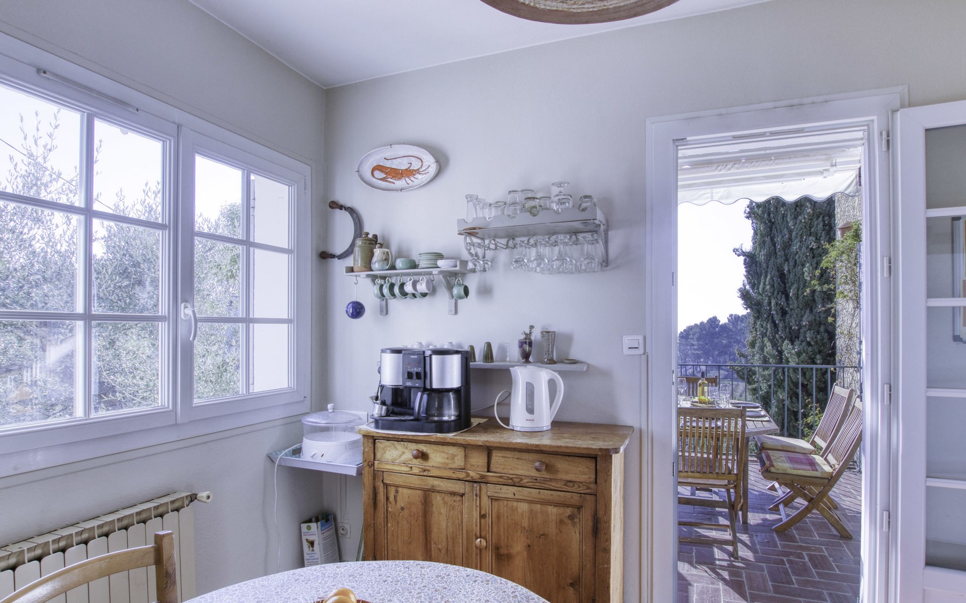 Single-family house "Le Mas de la Poterie", surrounded by trees and vineyards. In the district of Beausset vieux, on the outskirts, 4 km from the centre, in a quiet, sunny position on top of a hill, 9 km from the sea. Private: garden 6'000 m2 (not fenced), swimming pool (10 x 5 m, depth 100 - 170 cm, seasonal availability: 01.May. - 14.Oct.) with salt water and alarm system. Outdoor shower, table tennis (swing), pool maintenance by the owner/gardener. Parking (for 2 cars). Grocery 2 km, restaurant 2 km, sandy beach " de bandol" 9 km. Golf course (18 hole) 10 km. Hiking paths: Sainte Baume,Sainte Victoire,Calanques, Cassis,Porquerolles,Ile verte,Embiez. Please note: car recommended. The owner does not accept any youth groups. The keys‘ handover takes place by the agency INTERHOME in ST CYR SUR MER, 14 km. Owner lives in separate semi-detached house. The house is located on a protected site. The owner has his pottery workshop and his studio in a lower and independent part of the house,¨.