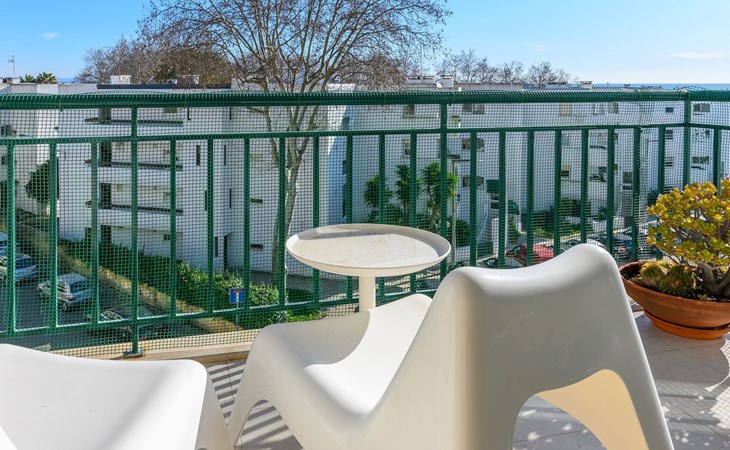 Stepping outside, the apartment offers a peaceful balcony, providing a serene spot to unwind and recharge without the buzz of the city. Although grilling is not allowed, this outdoor space is perfect for enjoying the balmy evenings with a cool drink or a good book. The apartment, positioned on the 3rd floor, captures the essence of coastal living, where simplicity and nature harmonize.