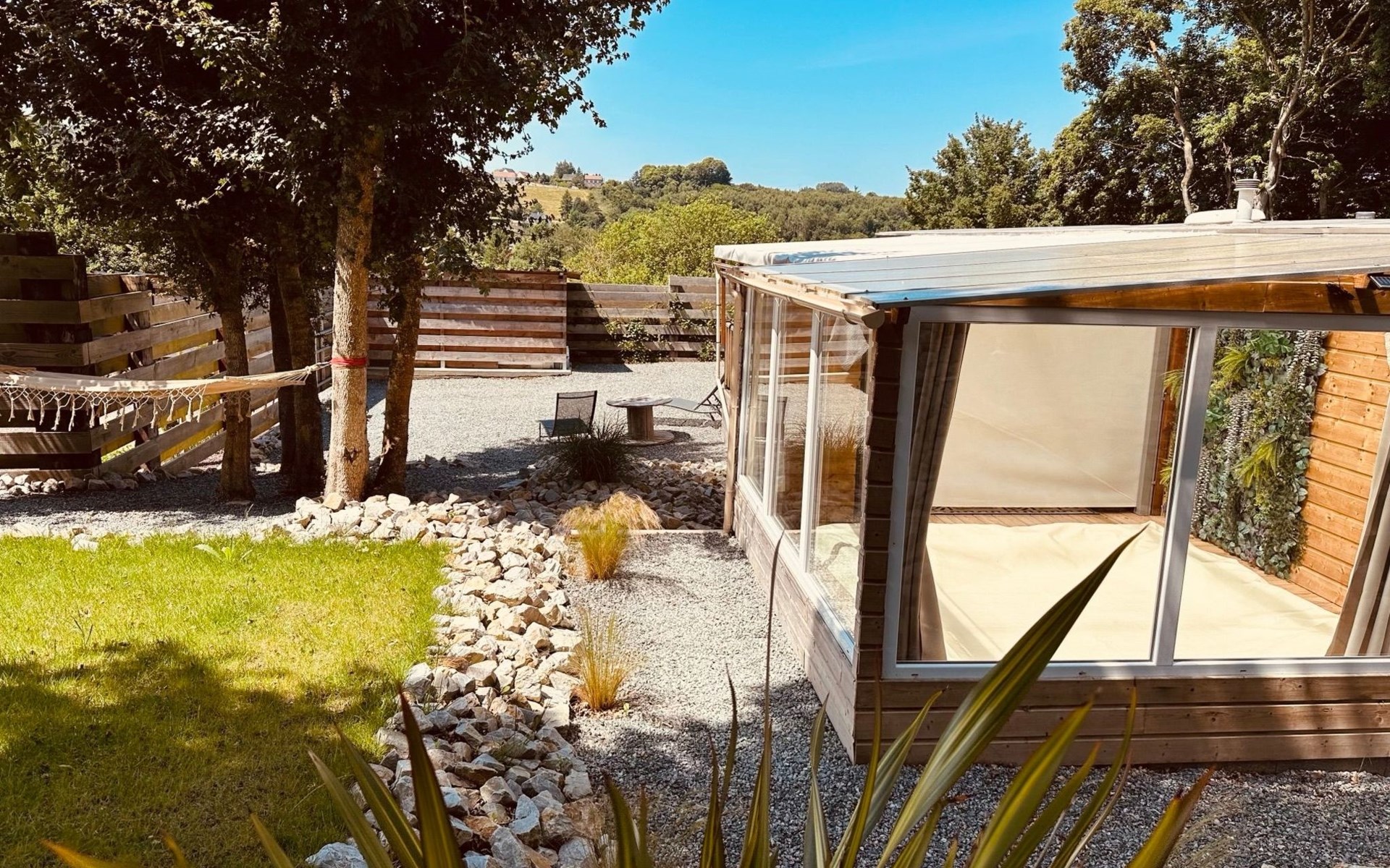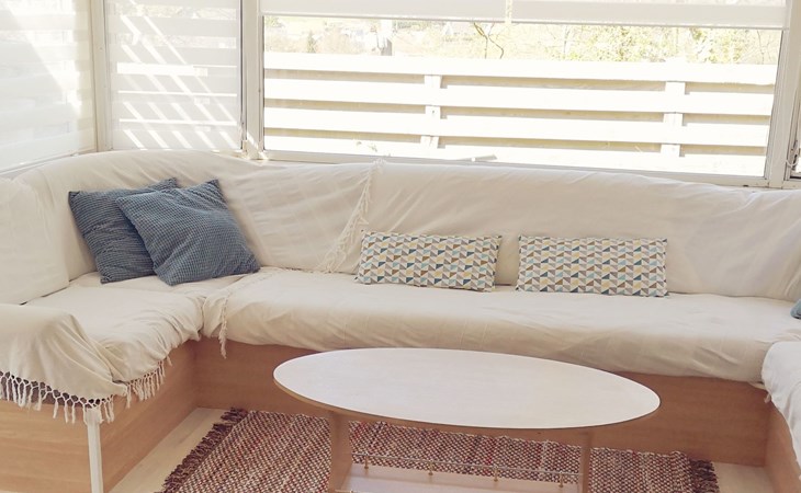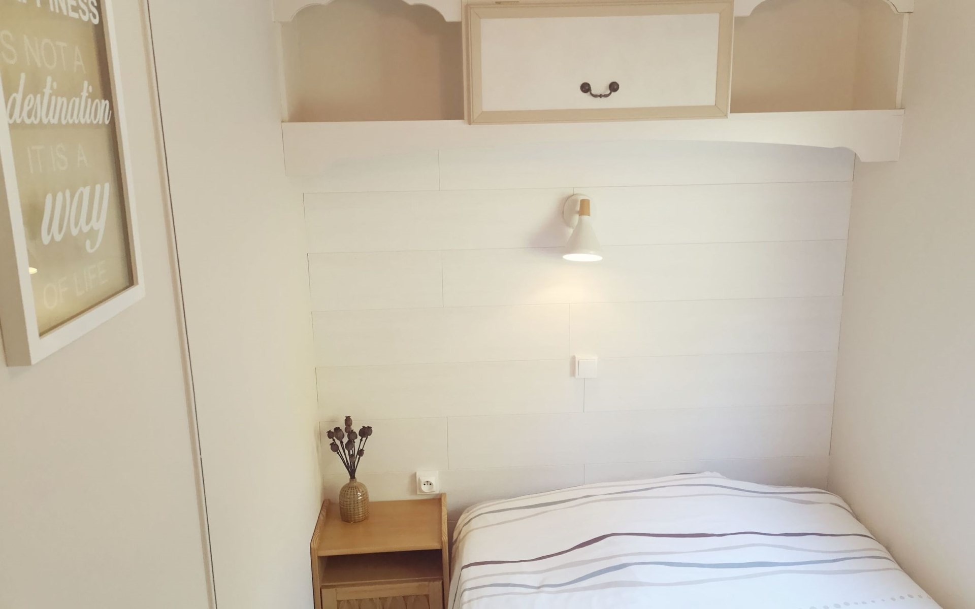 The interior of this mobile home is equipped to meet your needs during your stay. The kitchen is well equipped with a ceramic hob, a dishwasher, a coffee maker with soft pods, an electric kettle and a mini-oven to prepare and enjoy your meals with ease. A washing machine for private use in the accommodation also ensures your comfort. Relaxation is guaranteed with a connected TV, so you can keep up to date with your favourite series and films.