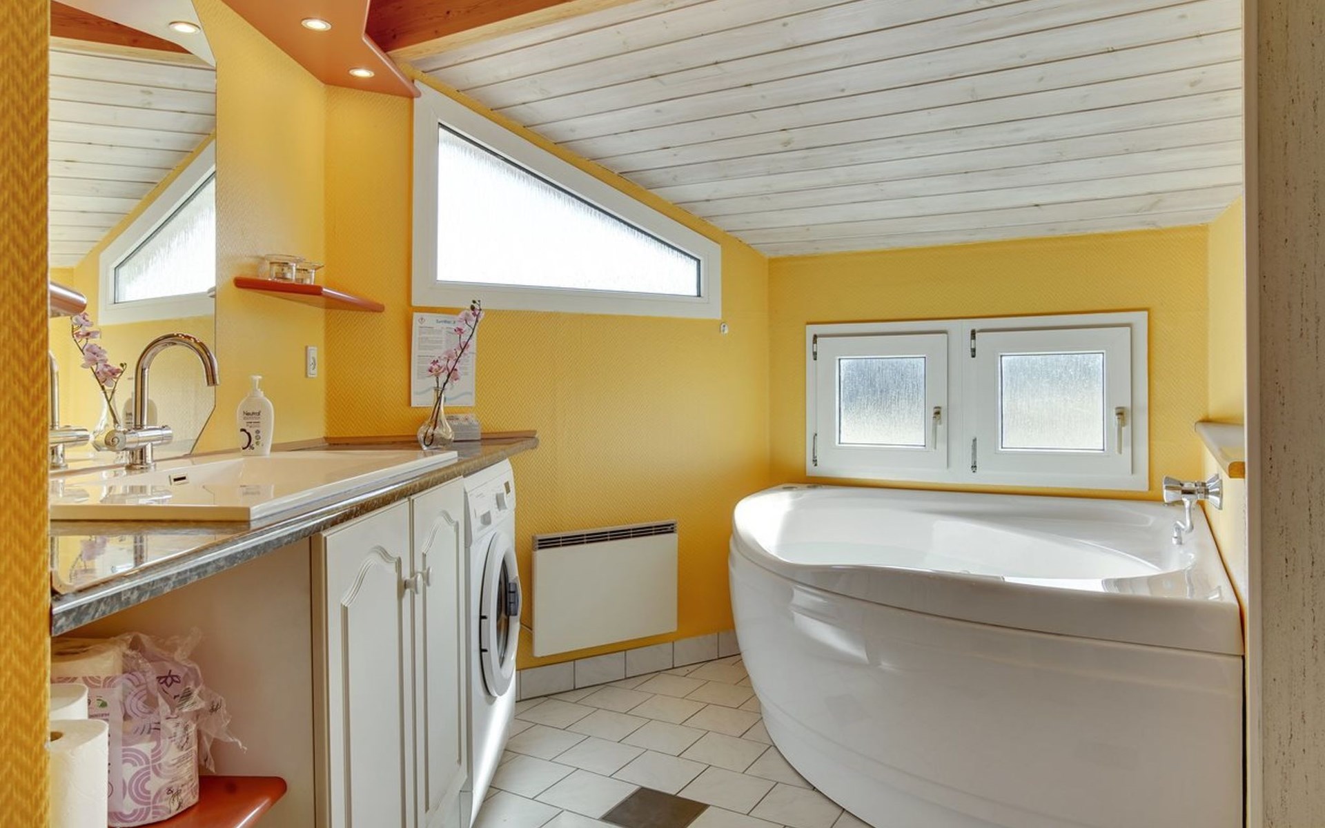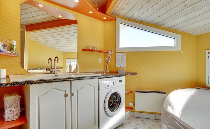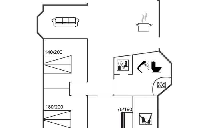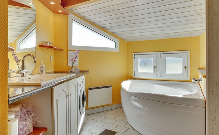 Single-family house, built in 1999. 364 m from the sea. Private: natural state property 1'250 m2. Terrace (15 m2), children's playground (swing). In the house: sauna, washing machine. Parking at the house. Grocery 800 m. The owner does not accept any youth groups.