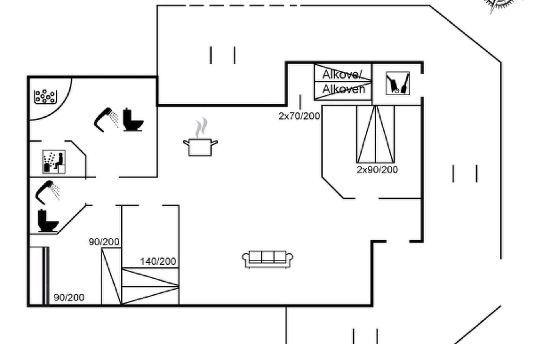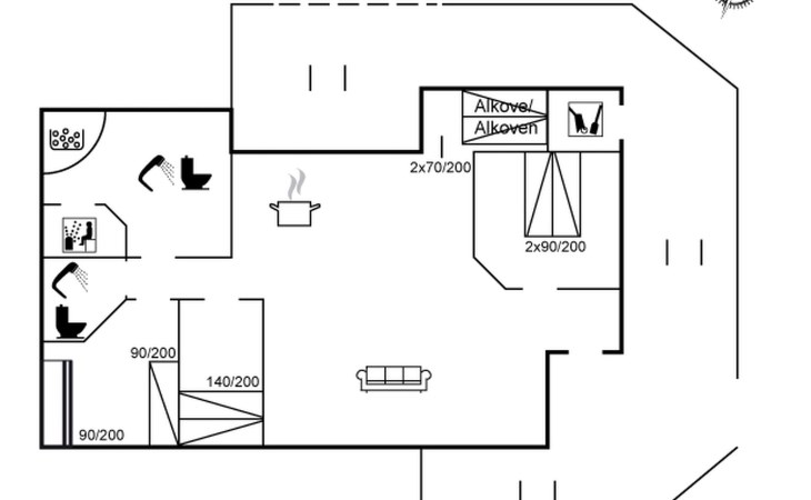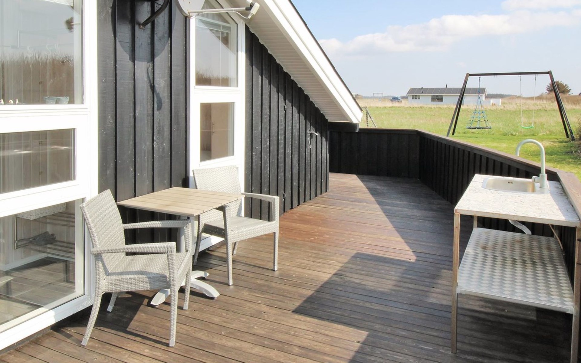 Single-family house, built in 1994. 300 m from the sea. Private: natural state property 2'500 m2. Terrace (50 m2), children's playground (swing). In the house: sauna, washing machine. Parking at the house. Grocery 1 km. The owner does not accept any youth groups.
