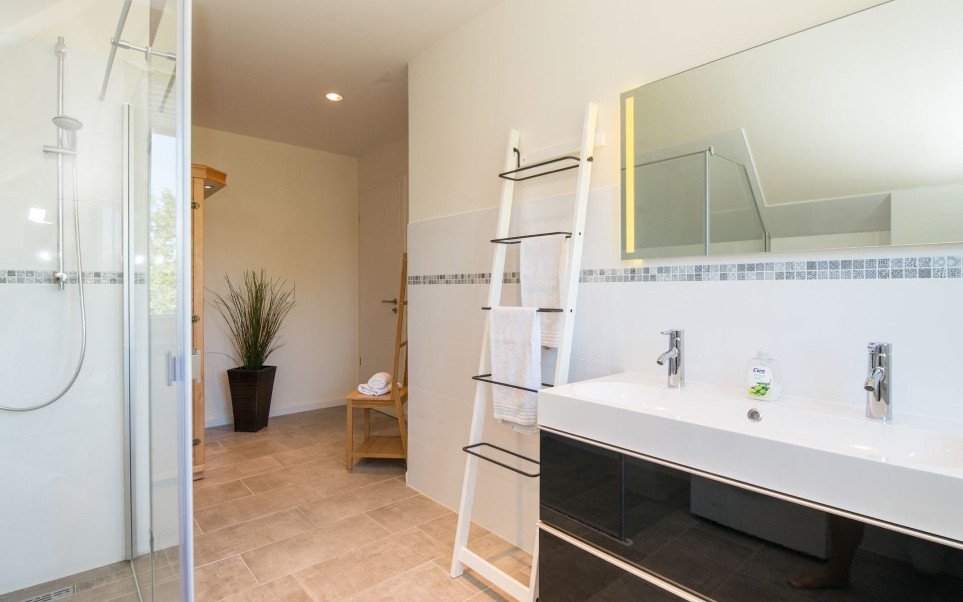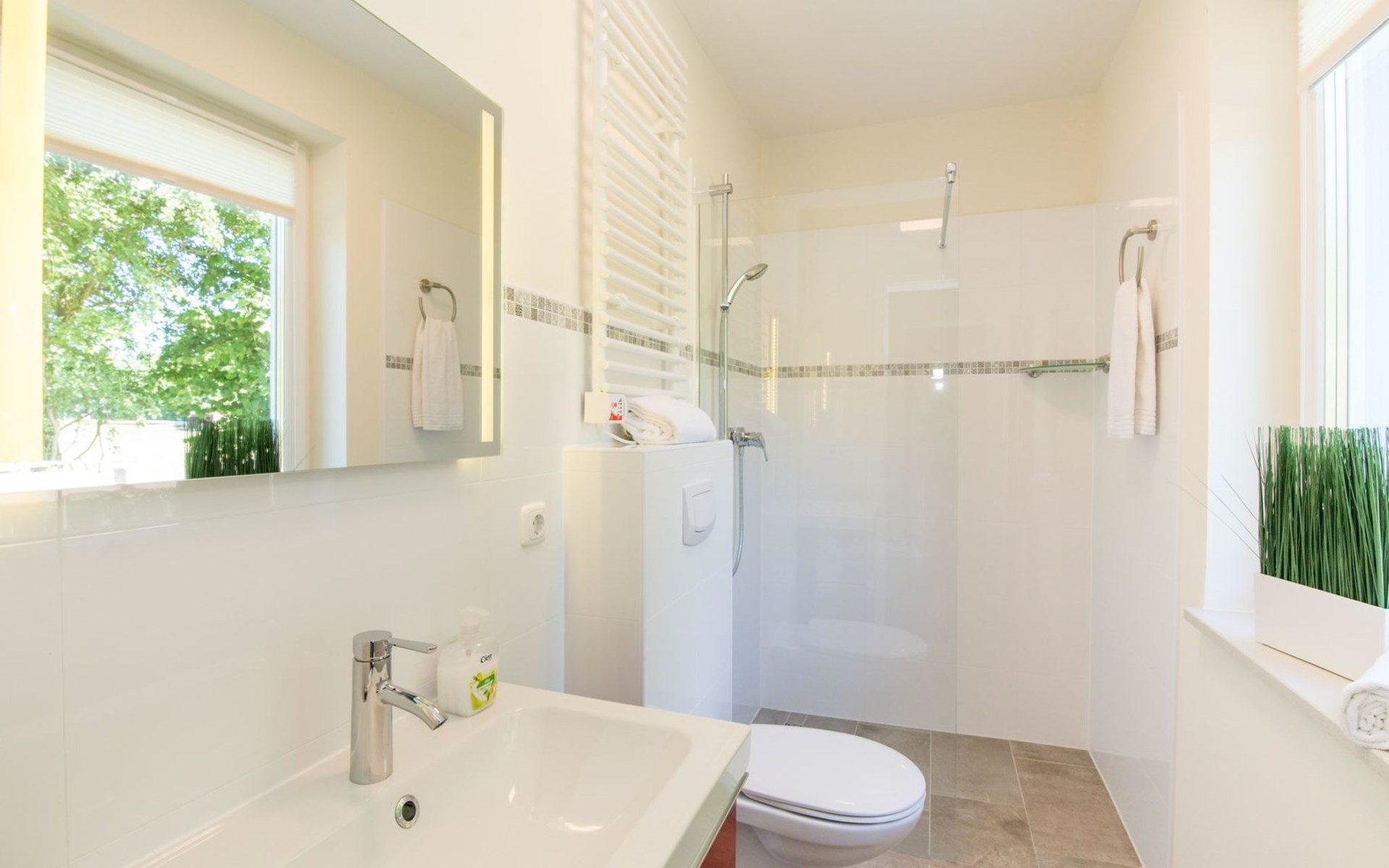 The exterior features of the holiday home are just as impressive as the interior. An inviting terrace invites you to relax and enjoy the quiet hours, while the communal garden offers plenty of space for play and leisure. For guests travelling by car, there is a charging station for electric cars. Bicycle enthusiasts will appreciate the covered and lockable bicycle storage area, which offers additional security.