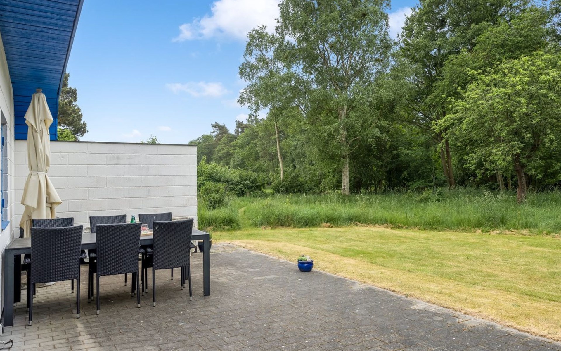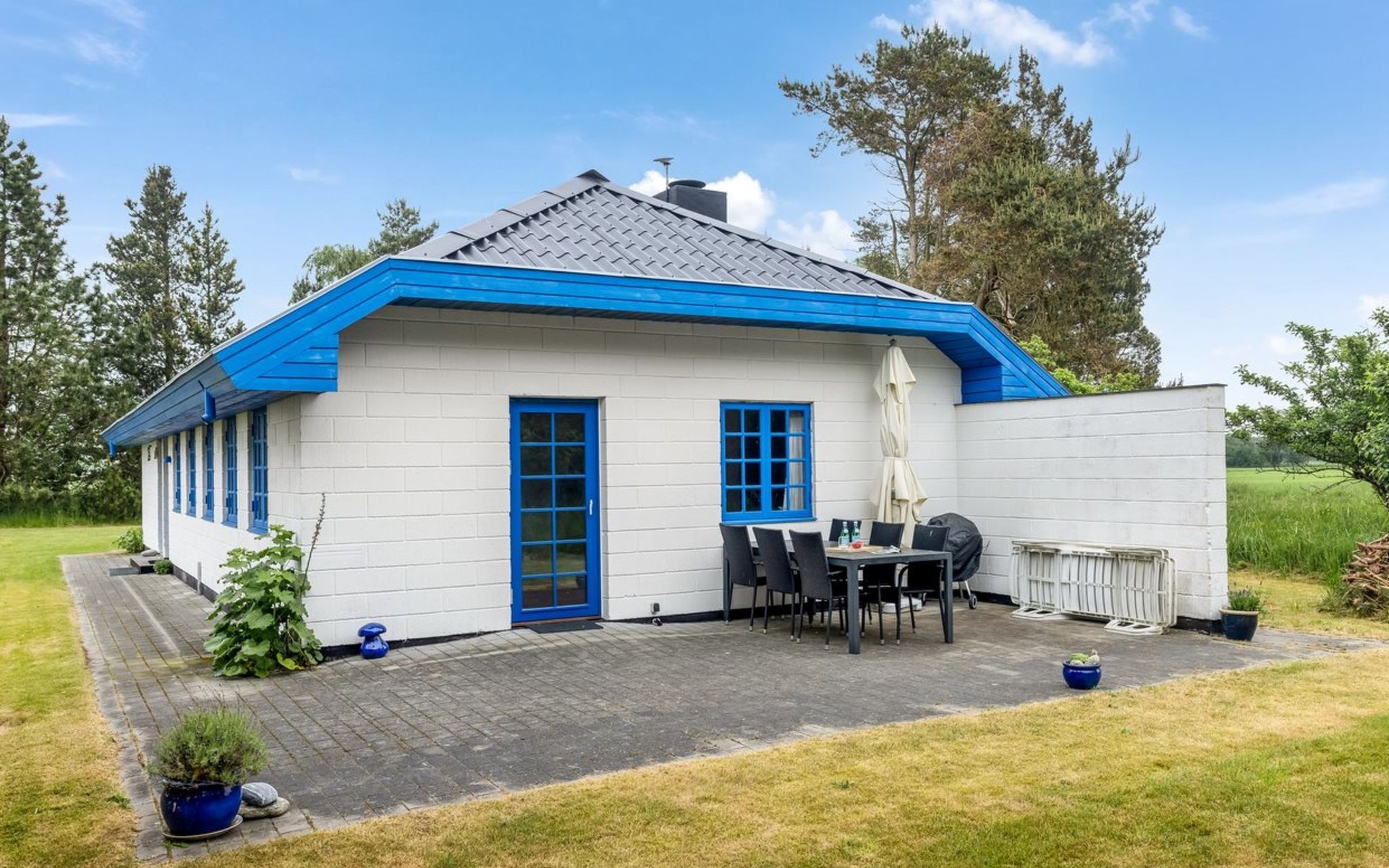 Single-family house, built in 1974. 5 km from the sea. Private: property 5'000 m2. Children's playground. In the house: washing machine. Parking at the house. Grocery 2.5 km. The owner does not accept any youth groups.