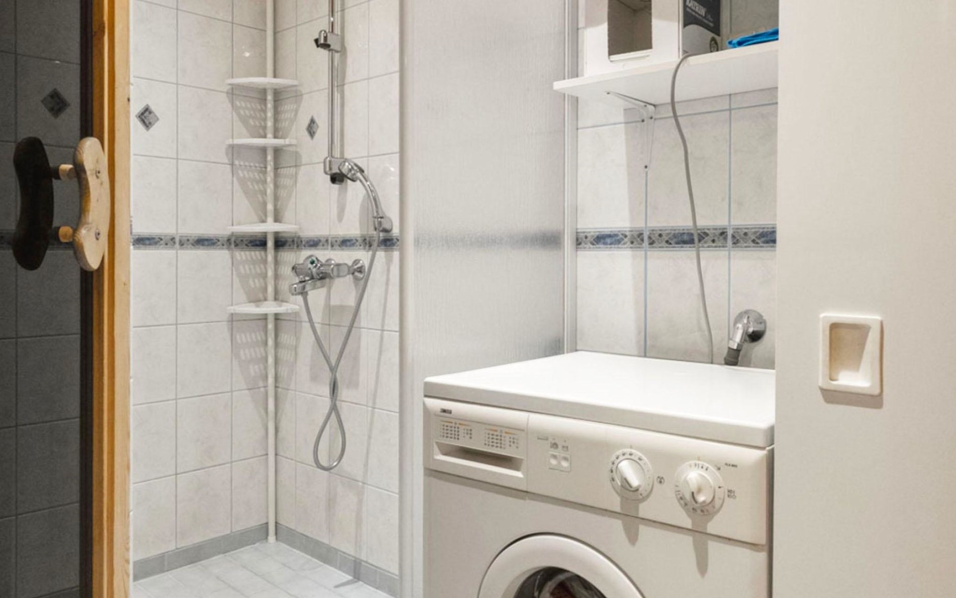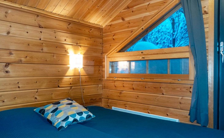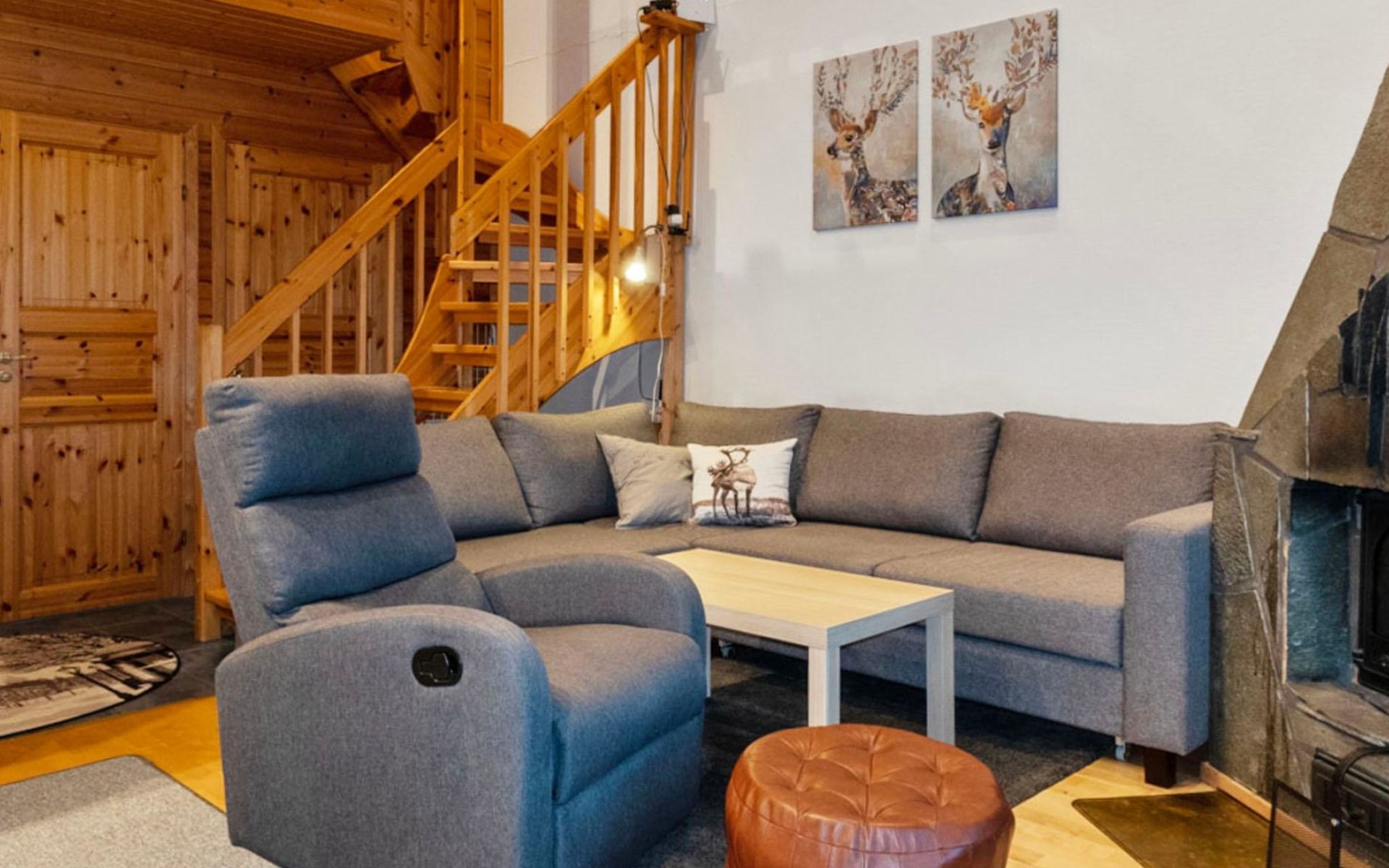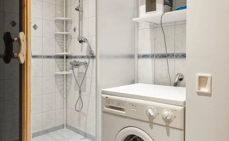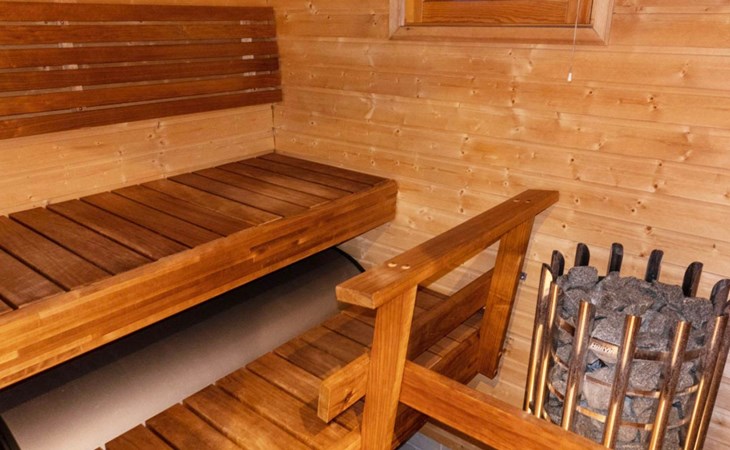 Living room/kitchen, double bed in the bedroom (so-called Yankee bed), 2 beds in the upper floor bedroom, access to the balcony from the bedroom, 2 beds in the loft, sauna, washroom, WC, covered terrace.