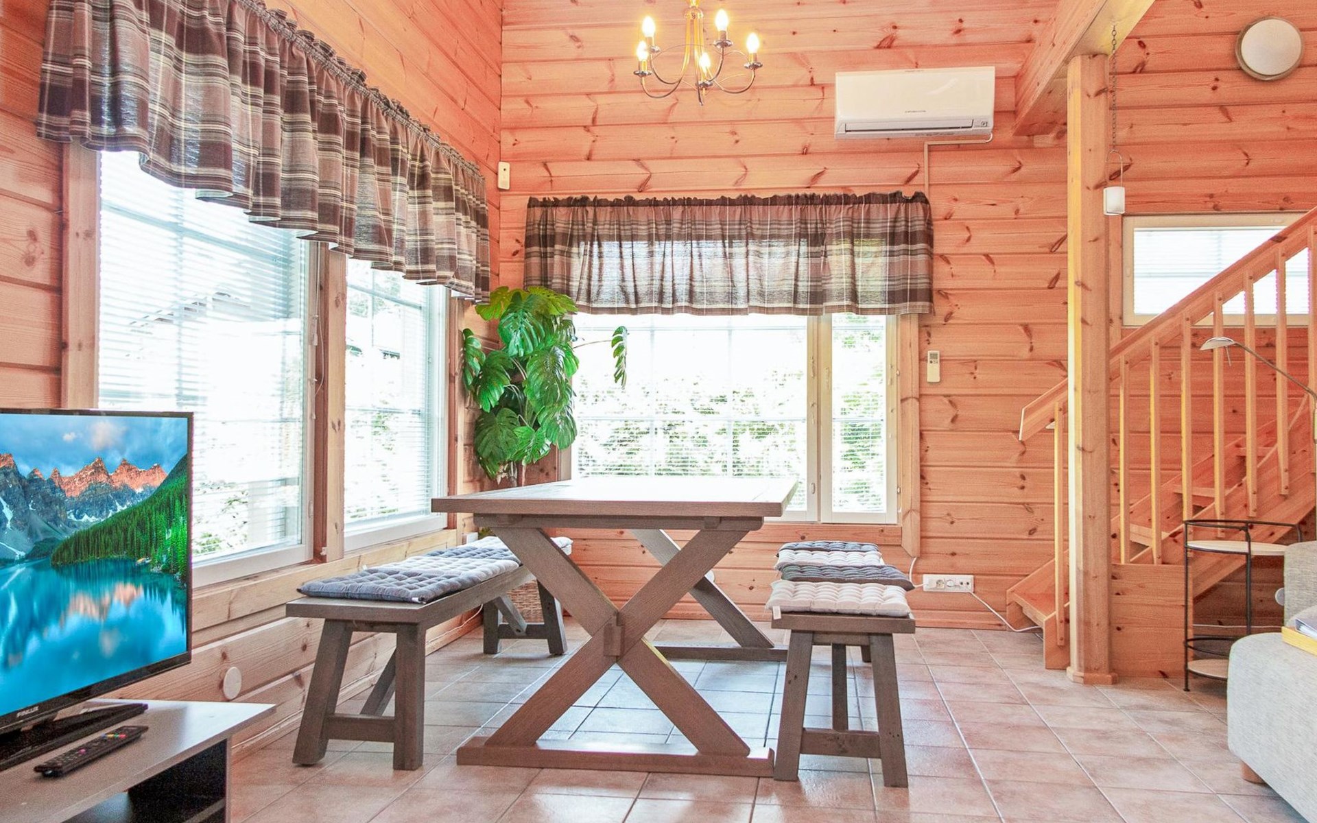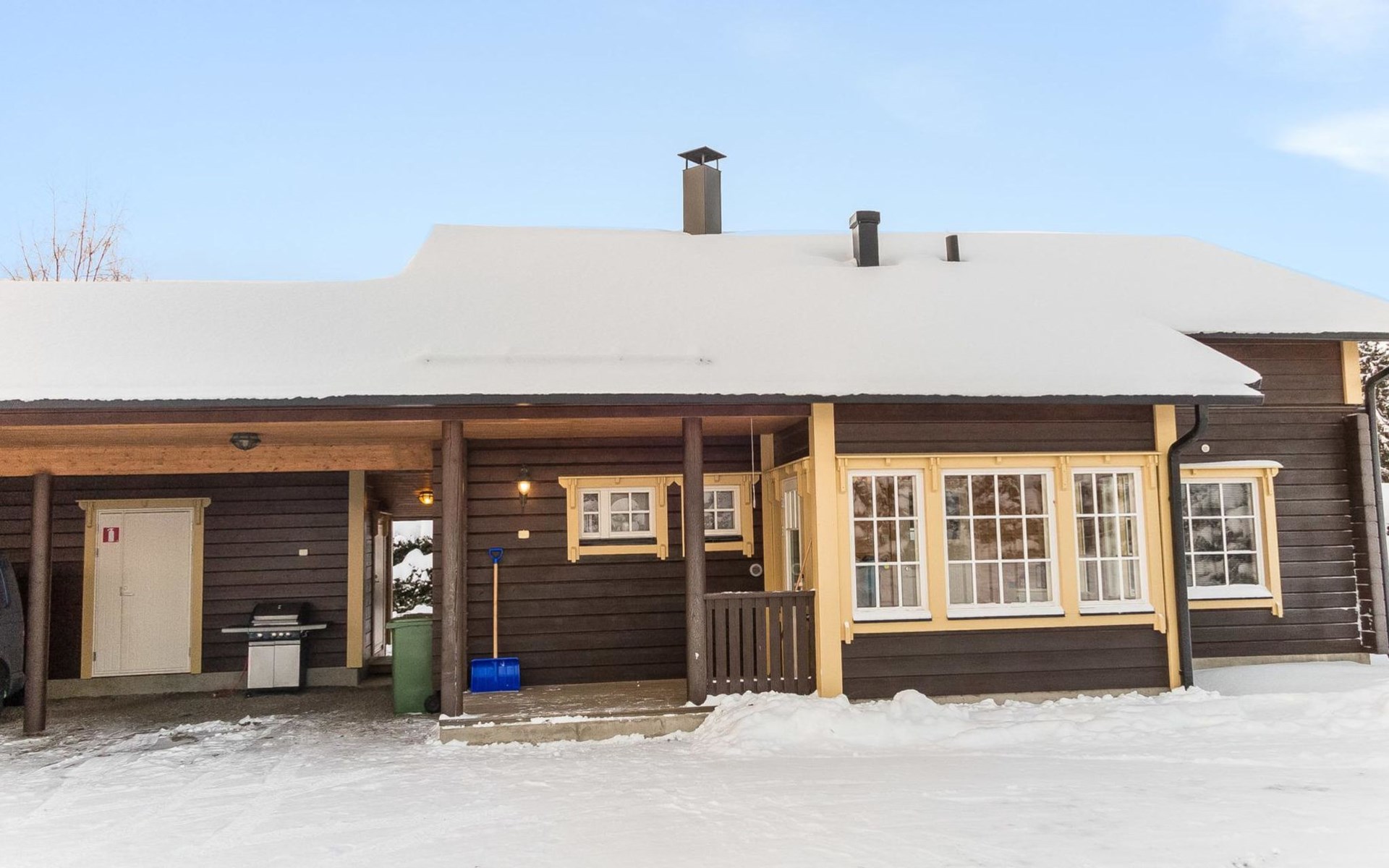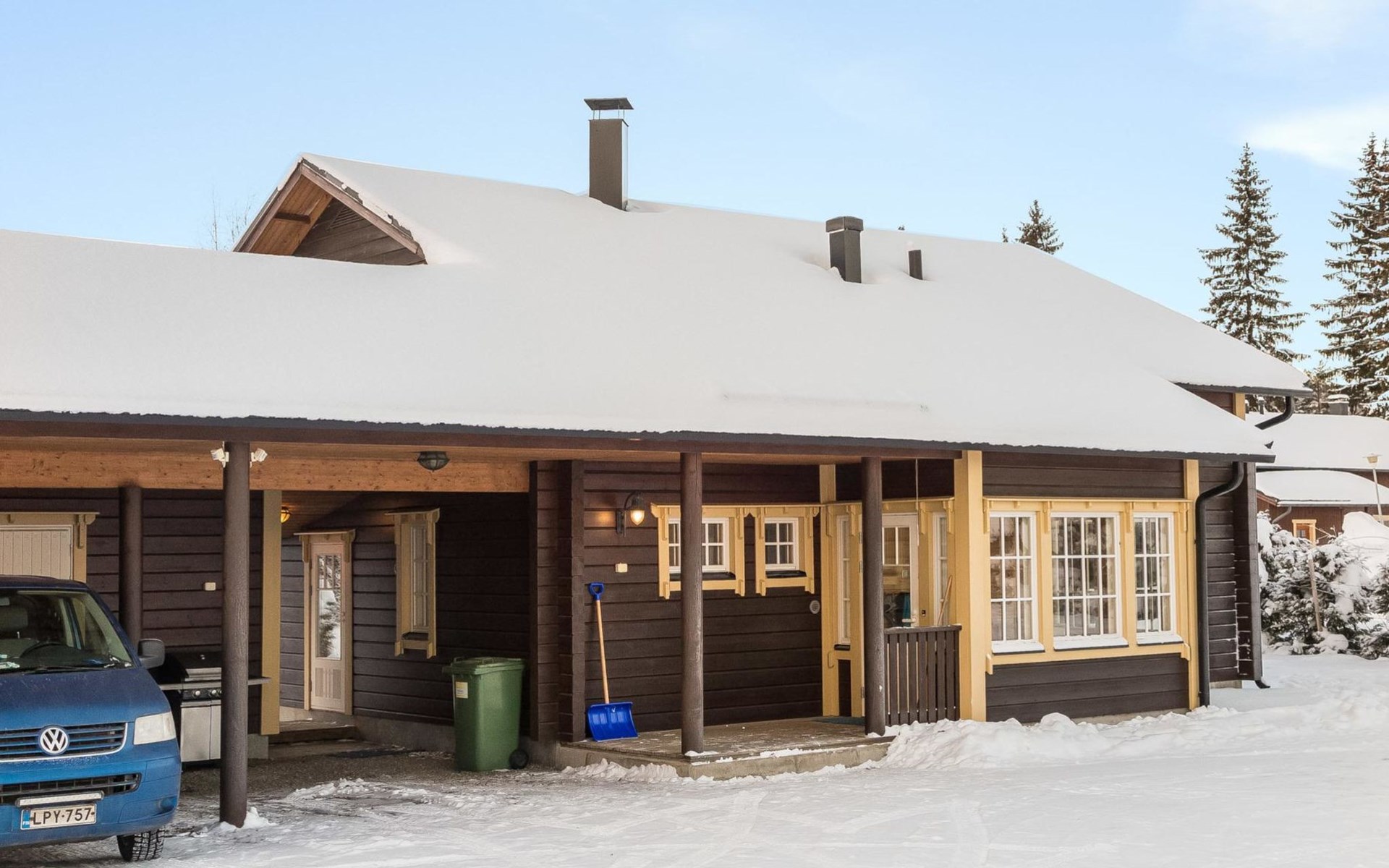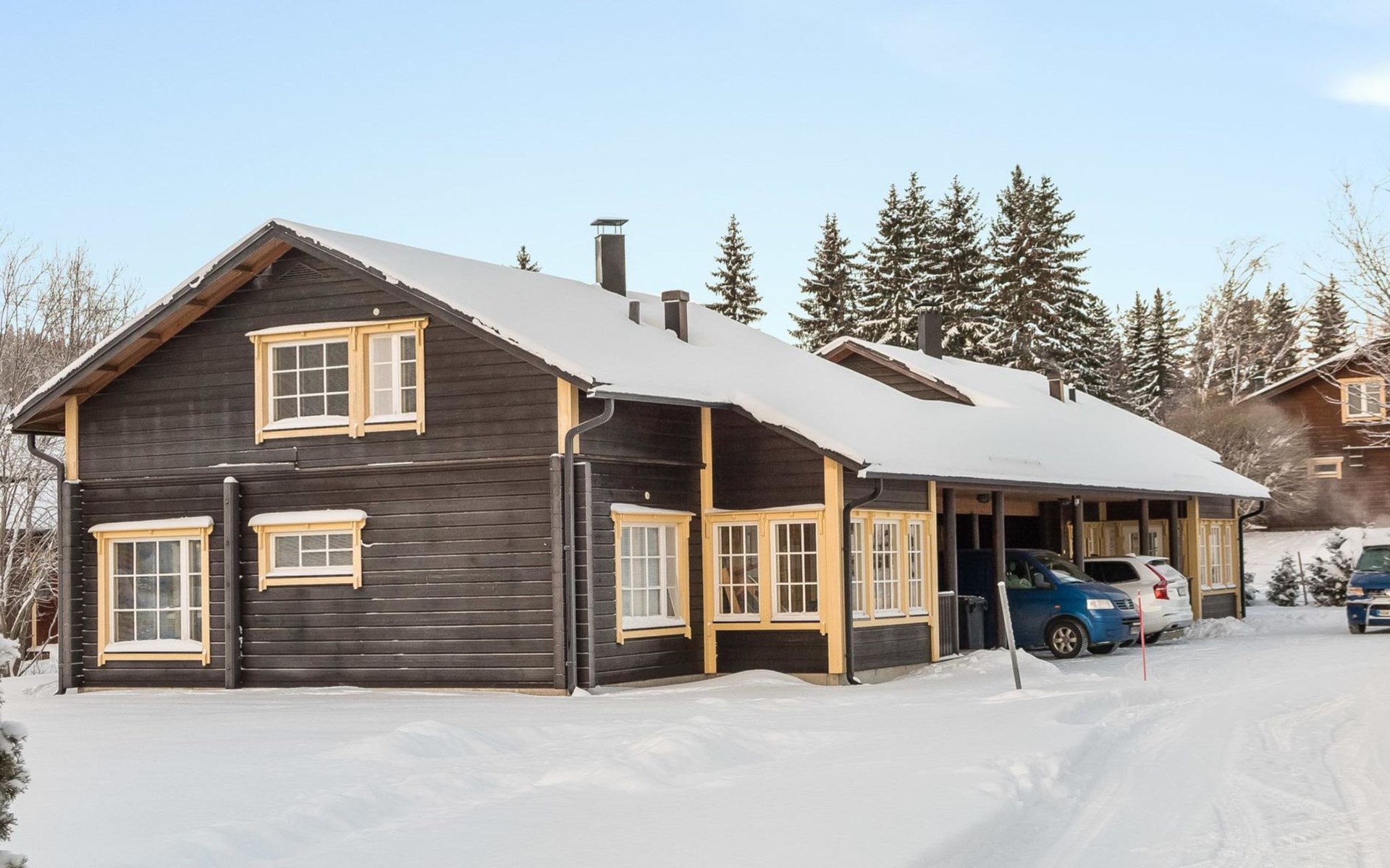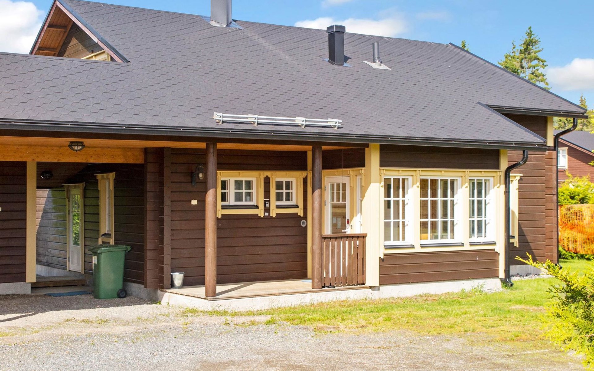 All services are close by; restaurant Ukko 400 m, Sokos Hotel Tahkovuori / restaurant Piazza / shop 800 m, lift 900 m, cross-country ski trail 200 m, spa Tahko Spa 900 m, golf courses 800 m (Old Course) and 6 km (New Course). Sports park near the spa, distance 1 km. 65 km to Kuopio, 13 km to NilsiƤ. Pets are allowed for an additional fee.