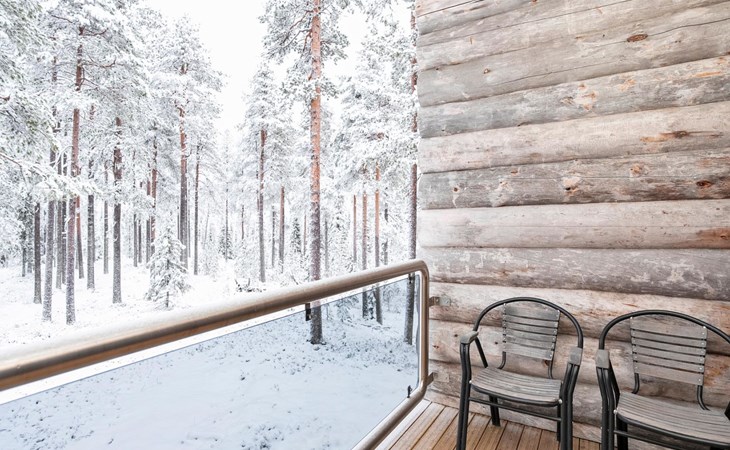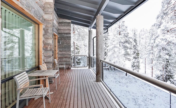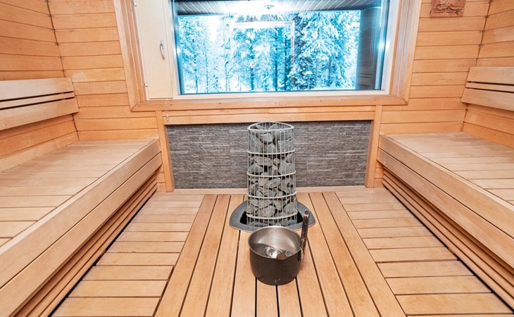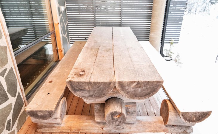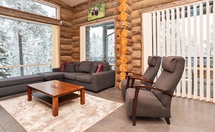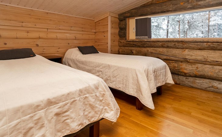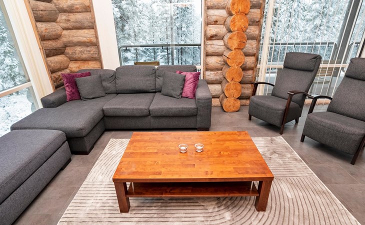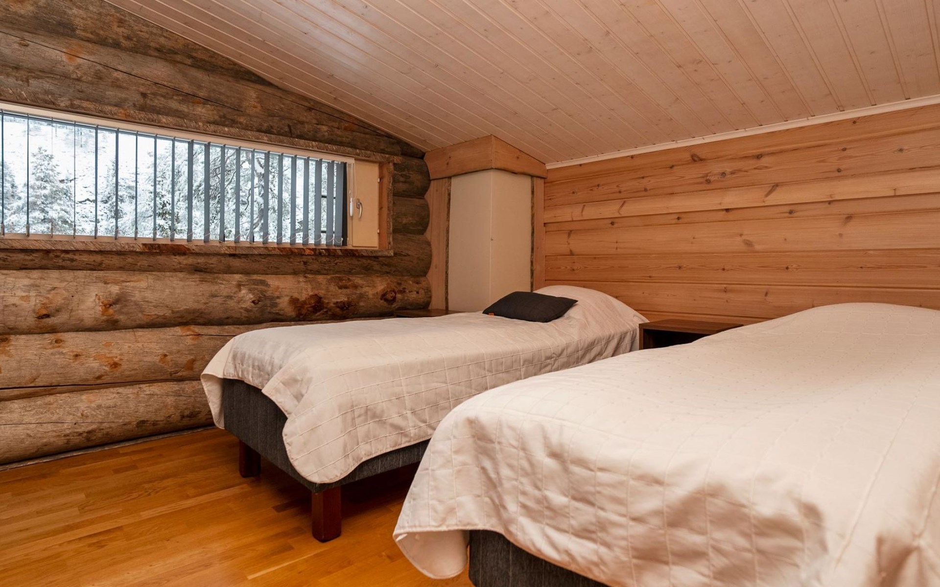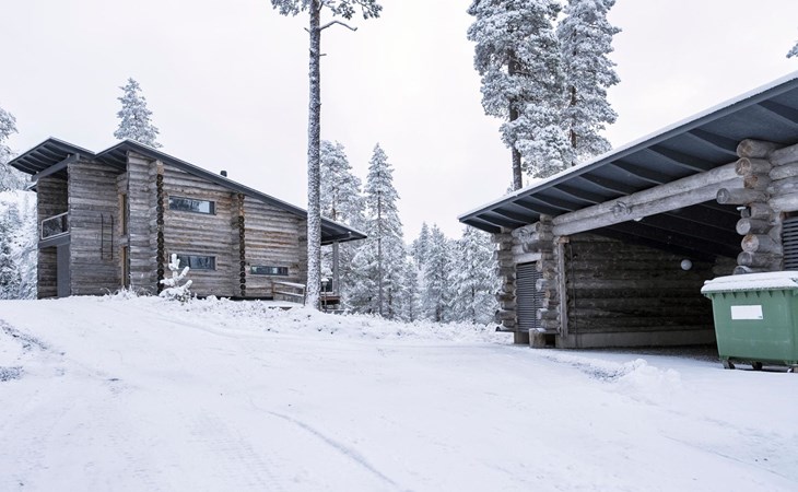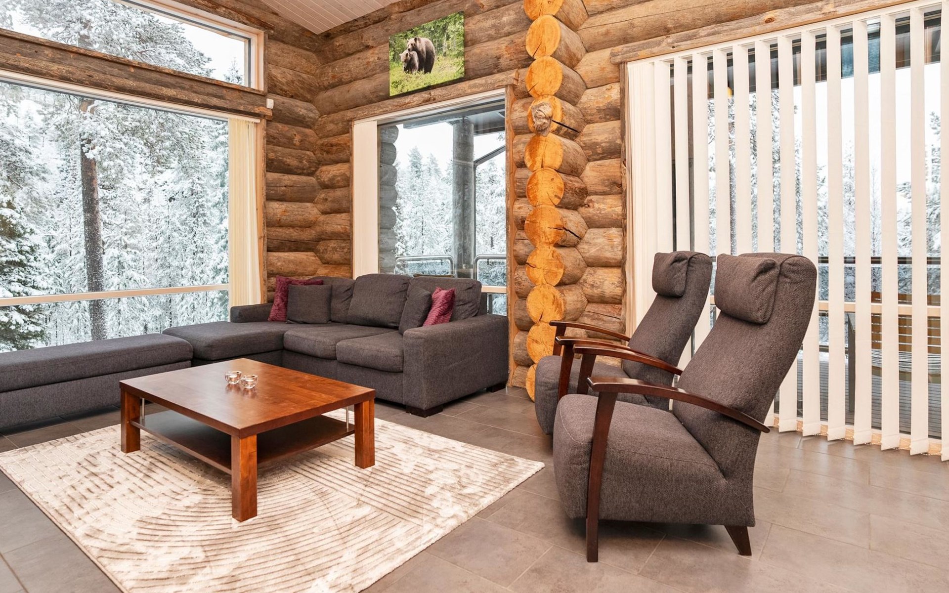 If customer has a pet, we will charge a pet fee/pet which will be added to reservation. Note! Pets aren´t allowed to stay in upstairs. Spacious and modern log cottage in a peaceful area in the north side of Ruka. Suitable especially for families and firms. Ski trail is near. Entrances on middle floor and downstairs.