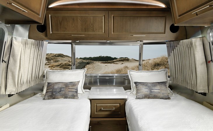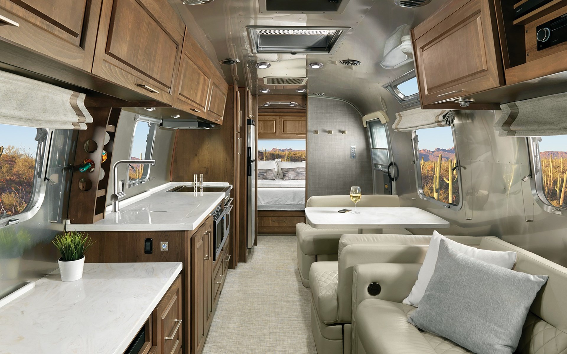 Inside, the Airstream is tastefully and practically furnished. You have one bedroom with two comfortable beds, a cozy living area, and a kitchen where you can prepare your own meals. In addition, there is one bathroom with a shower, toilet, and washbasin. The double bell tent on the platform is an atmospheric addition to the accommodation and is furnished as an extra sleeping area. Together, the Airstream with bell tent offers all the comfort needed for a relaxing stay for four people.