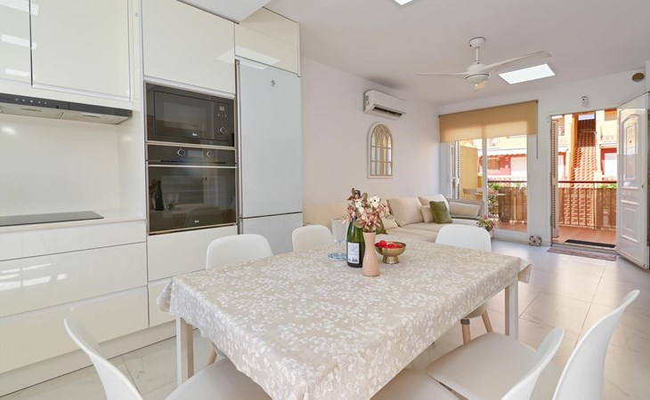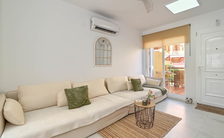 The house has 2 bedrooms, 2 bathrooms and 1 guest toilet, spread over 3 levels. The accommodation offers privacy, a communal garden with lawn and trees, and beautiful views of the sea. Its comfort and the proximity to the beach, shopping areas, sports activities, and places to go out make this a fine house to spend your holidays in Spain with family or friends.