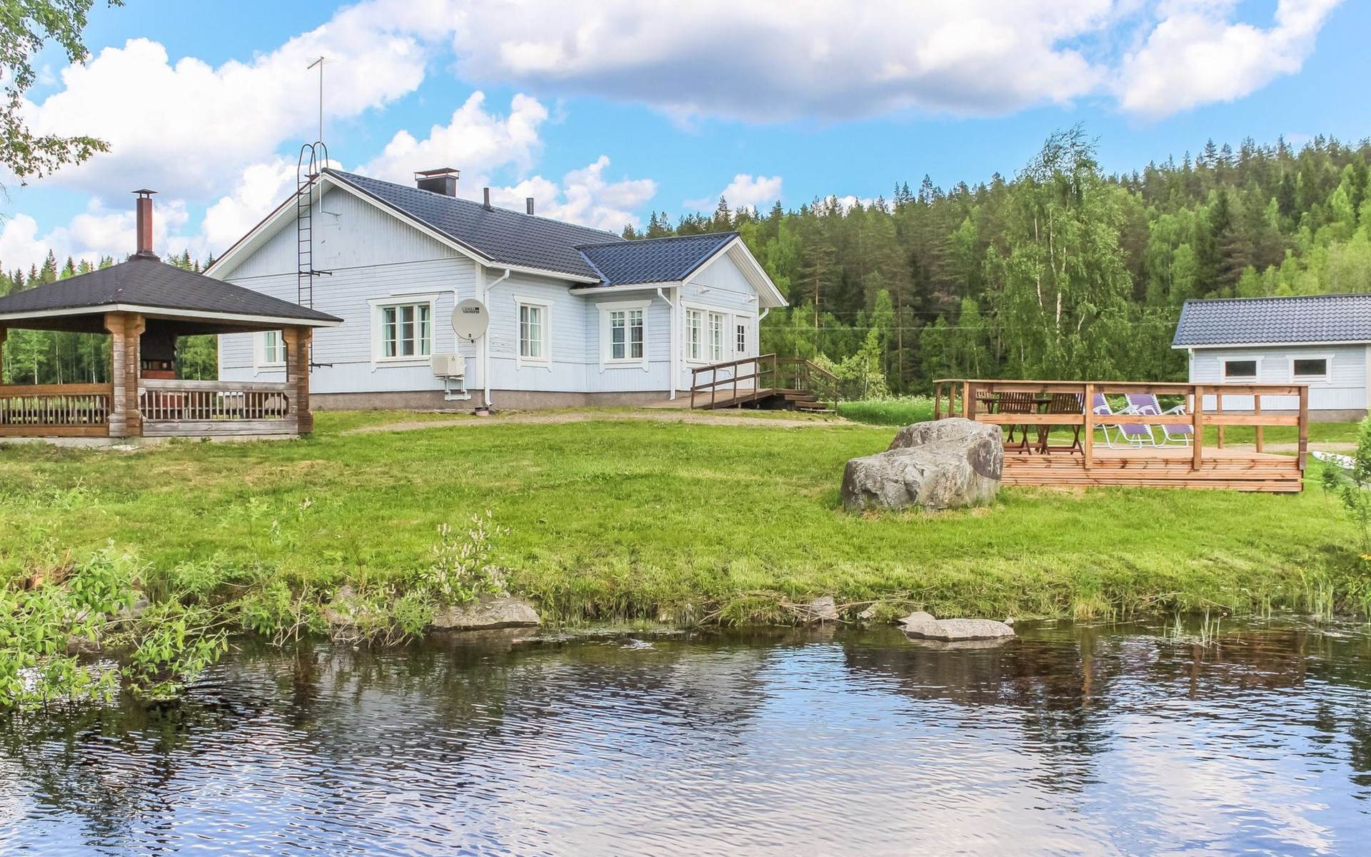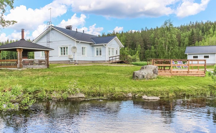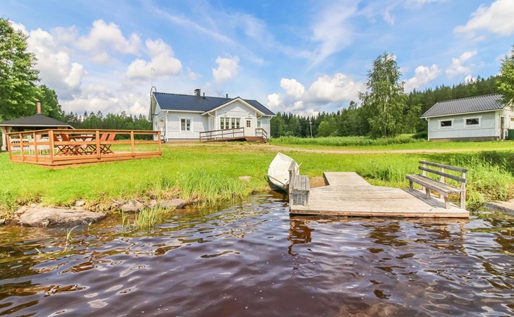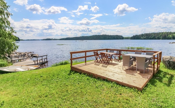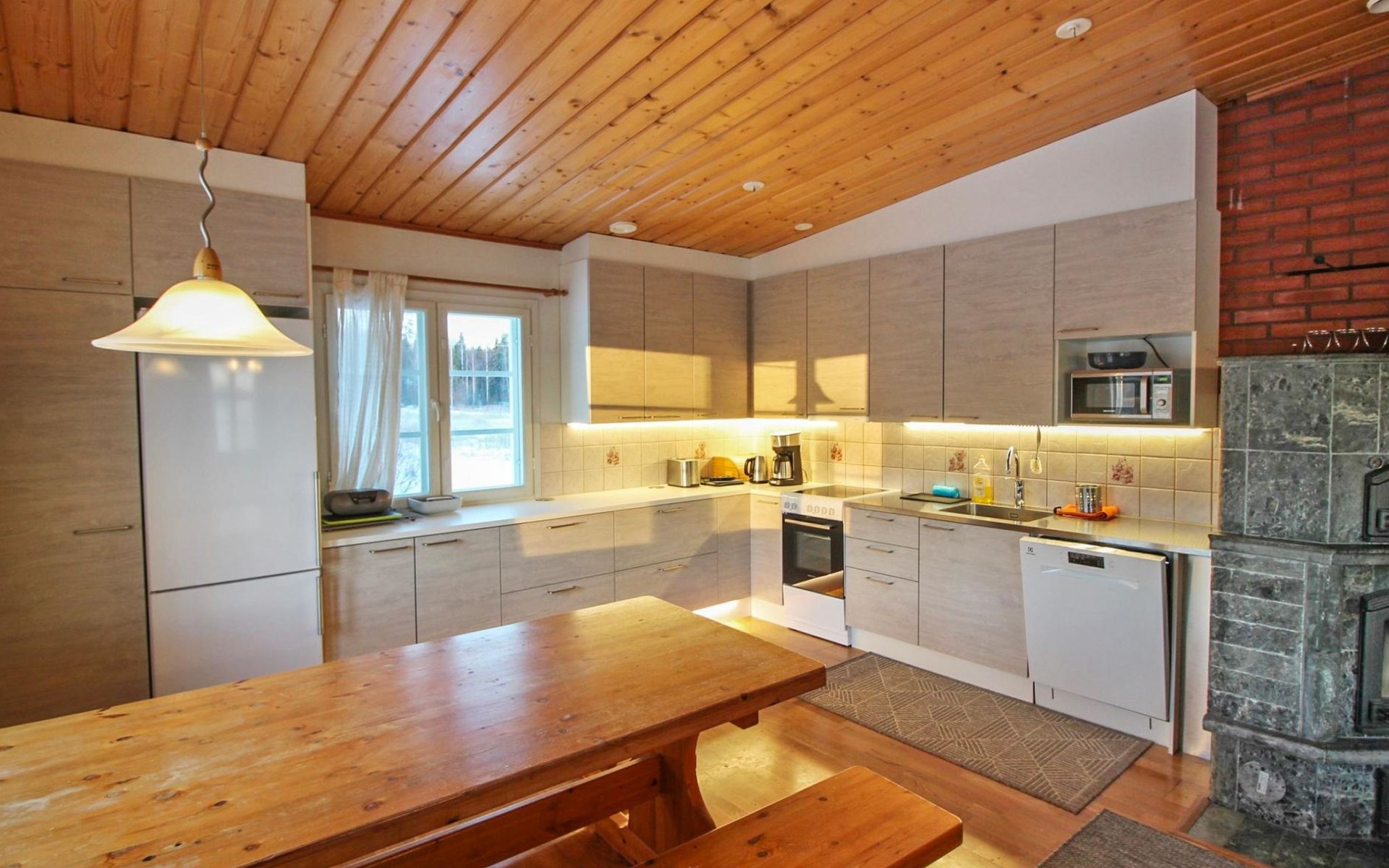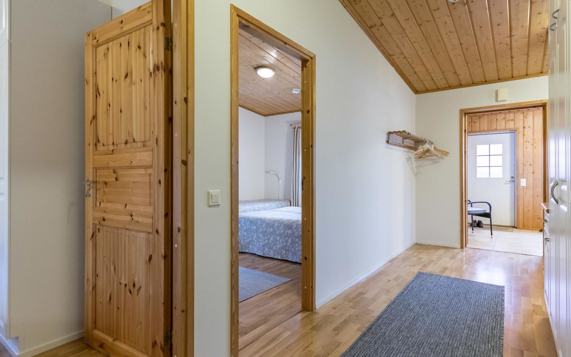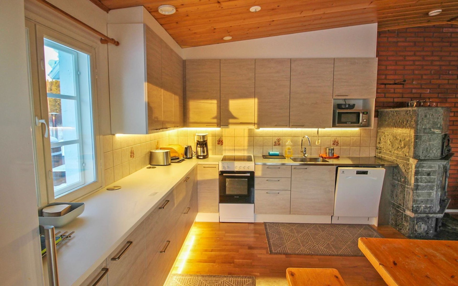 Well-equipped and spacious wooden cabin with boarded outer walls (2004), spacious living room (sofa bed 140x200 cm, bed for two) and living room/kitchen with well-equipped kitchen facilities. Two bedrooms, bedroom 1: three beds, bedroom 2: three beds, separate WC, washroom with two showers, sauna (wood-burning sauna stove).