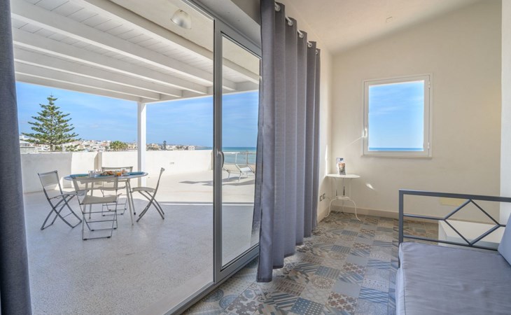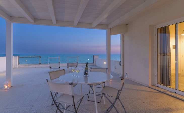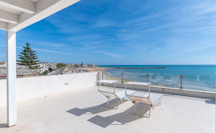 Very new apartment in fornt of the sea, with terrace and beautiful view over the beach of Donnalucata. Only 10 mt form the sea, it is ideal for a romantic holiday. Recommended for ... Those people who want to stay a few mt from the sandy beaches of Donnalucata, not far away from the centre. Ideal for a romantic holiday, it allows you to enjoy a relaxing seaside holiday, in a comfortable and refined ambience.