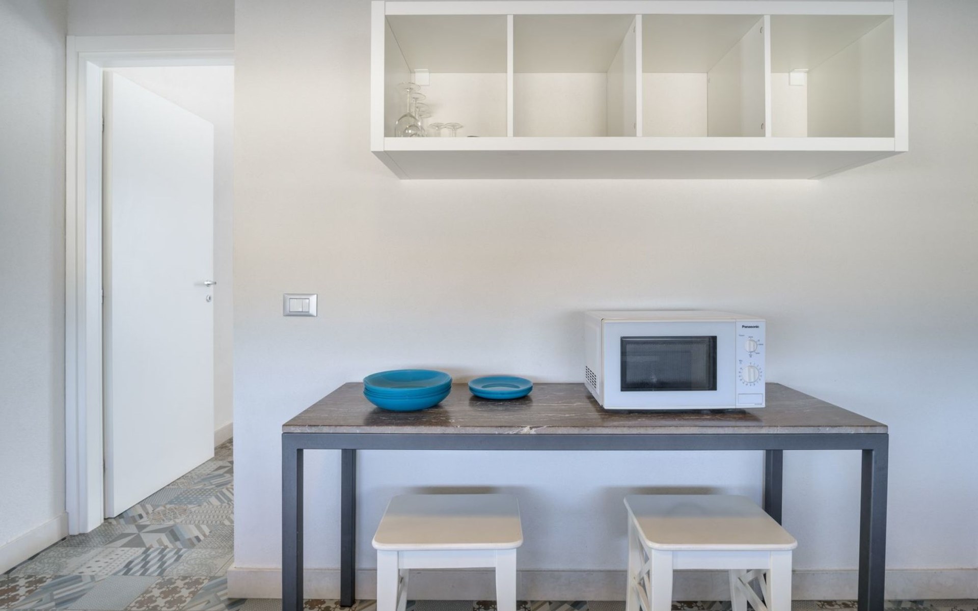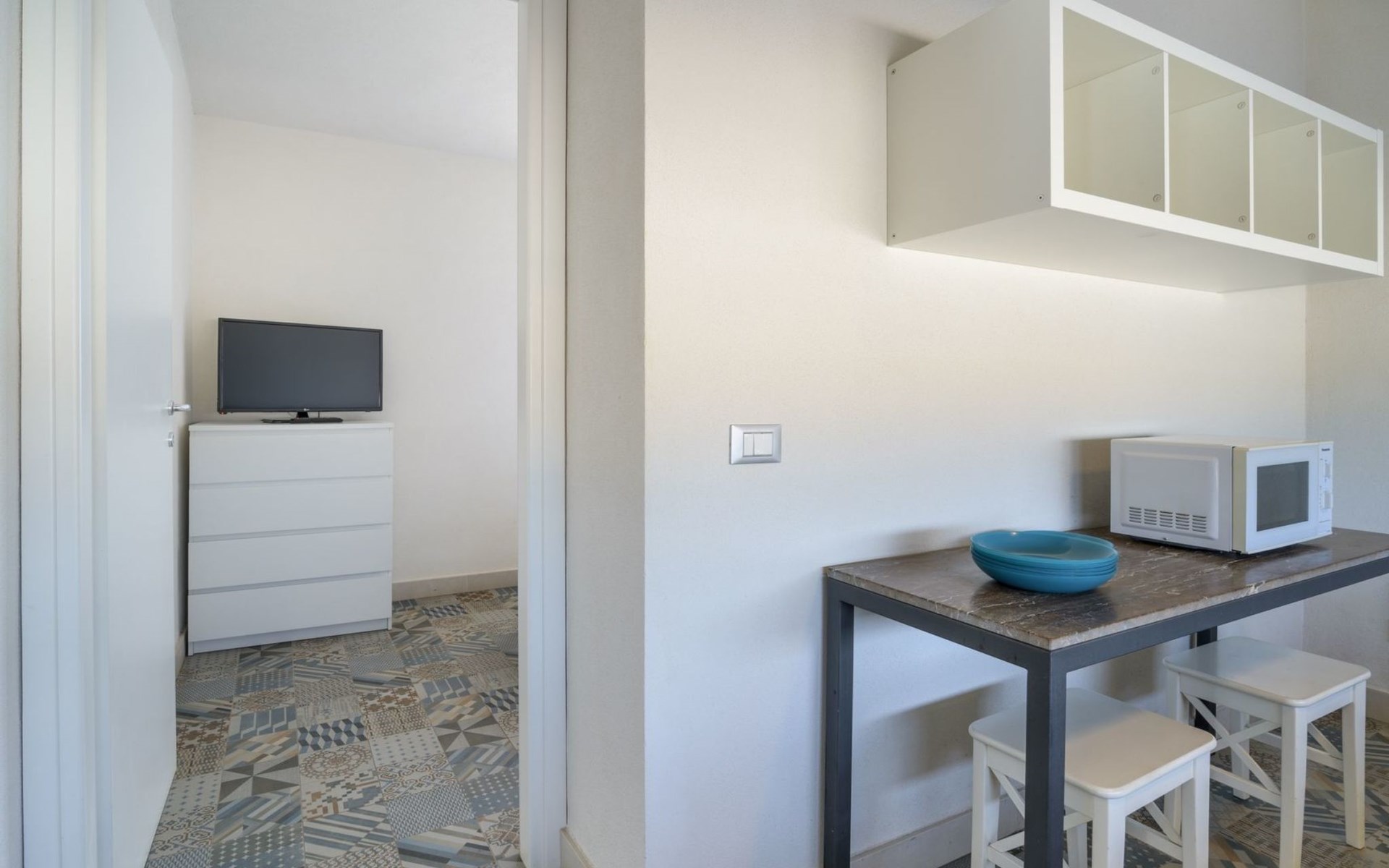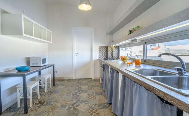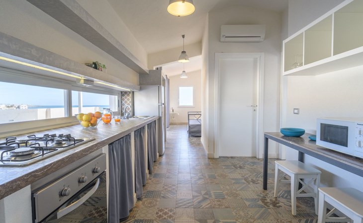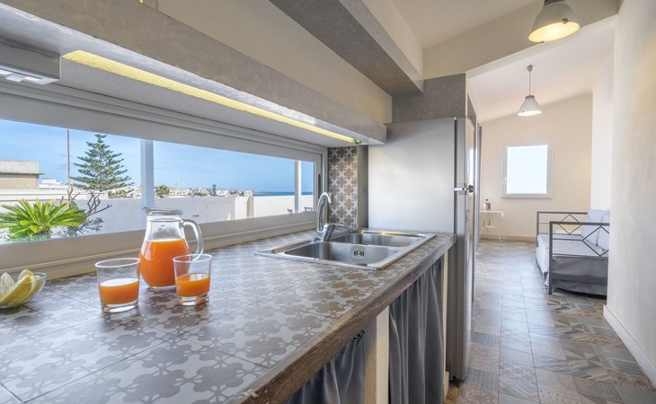 This 2nd floor accommodation, without lift, offers a stunning view over coast of Donnalucata and the facing beach. Recently renewed (2014), it is furnished in minimal style and enjoys a wide furnished sheltered terrace with scenic view. The inside is a well-lit open space, with sofa bed, a kitchen corner, a double bedroom and a bathroom. The kitchen is equipped with fridge, freezer and electrical oven. A double bedroom with a ceiling fan. A bathroom with shower. A laundry room with washing machine. TV and air-conditioning system in the living area, in a strategic position to serve all ambiences.
