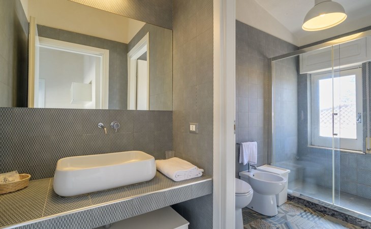 It is furnished in minimal style and enjoys a wide furnished sheltered terrace with scenic view.