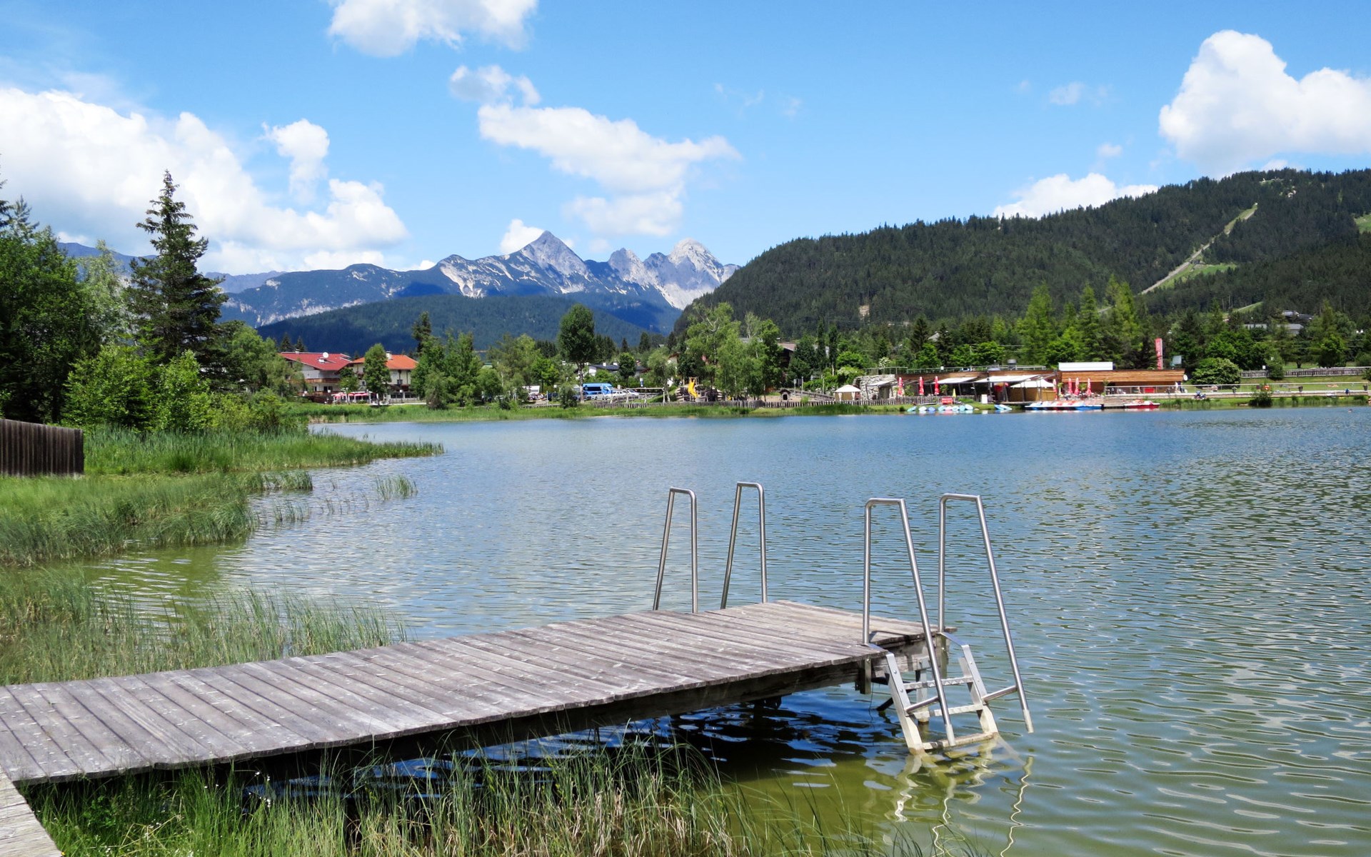 Seefeld: Located in the immediate vicinity of the mountain train "Rosshütte", cosy apartment block "Am Birkenhain". In the resort, 500 m from the centre, in a central, quiet, sunny position, 800 m from the lake, 400 m from the skiing area. For shared use: lawn for sunbathing. Garden furniture. In the house: reception, WiFi, table tennis, trampoline, lift, storage room for bicycles, storage room for skis, central heating system. Bread roll service and beverage service. Motor access to the house. Parking at the house. Shop, supermarket 500 m, restaurant 200 m, pedestrian zone 500 m, 5 minute walk to the centre, bus stop 100 m, railway station 500 m, indoor swimming pool 800 m, bathing lake "Wildsee" 800 m. Golf course (9 hole) 500 m, indoor tennis centre 1 km, sports centre 1 km, skisport facilities 400 m, ski bus stop 50 m, cross country ski track 500 m. Well-known ski regions can easily be reached: Rosshütte 400 m, Gschwandtkopf 1.5 km. Please note: ski bus (free of charge). Use of the washing machine on request with the person in charge.