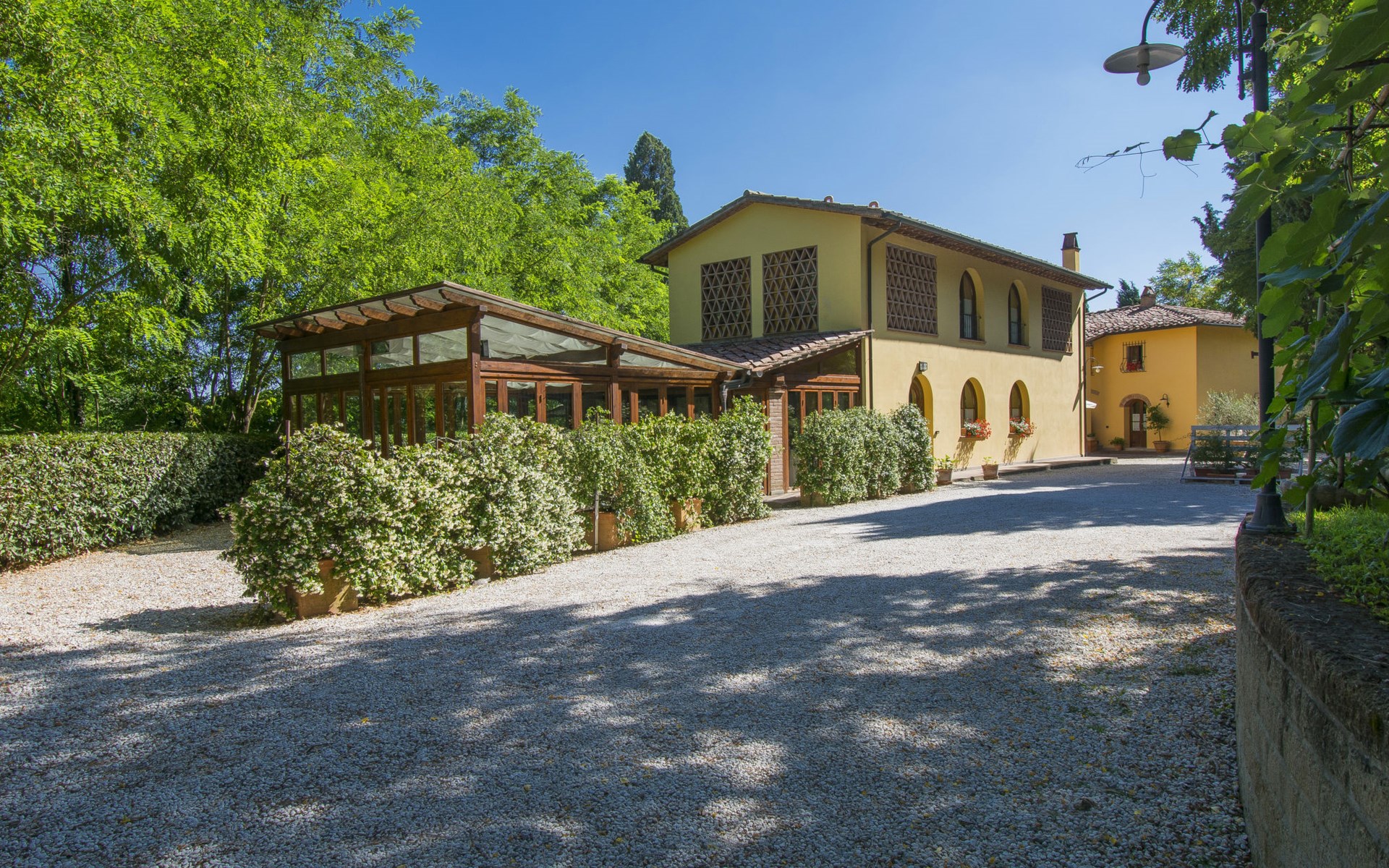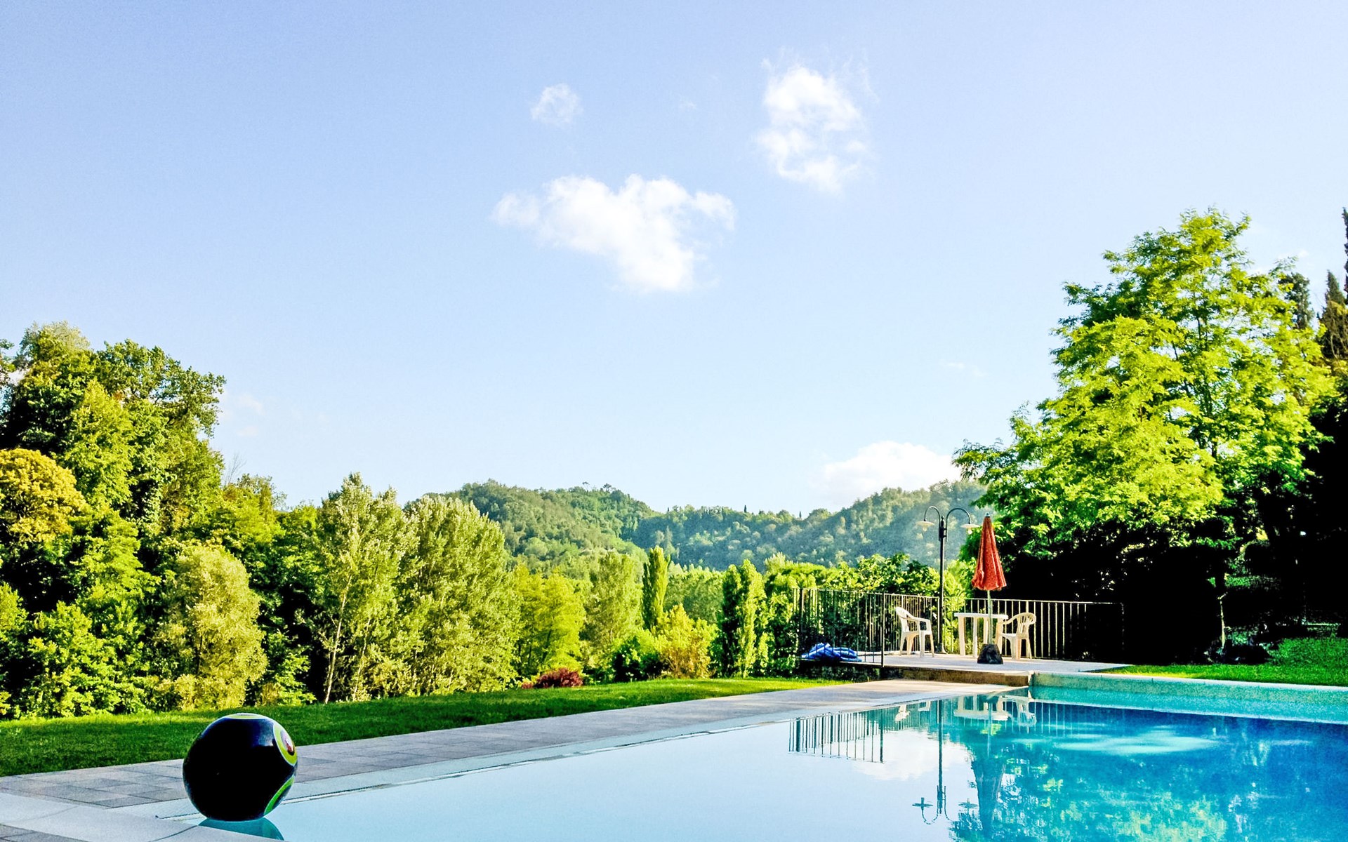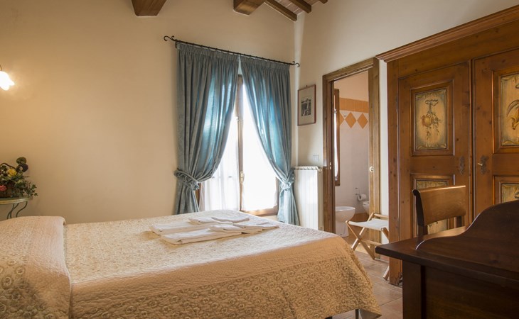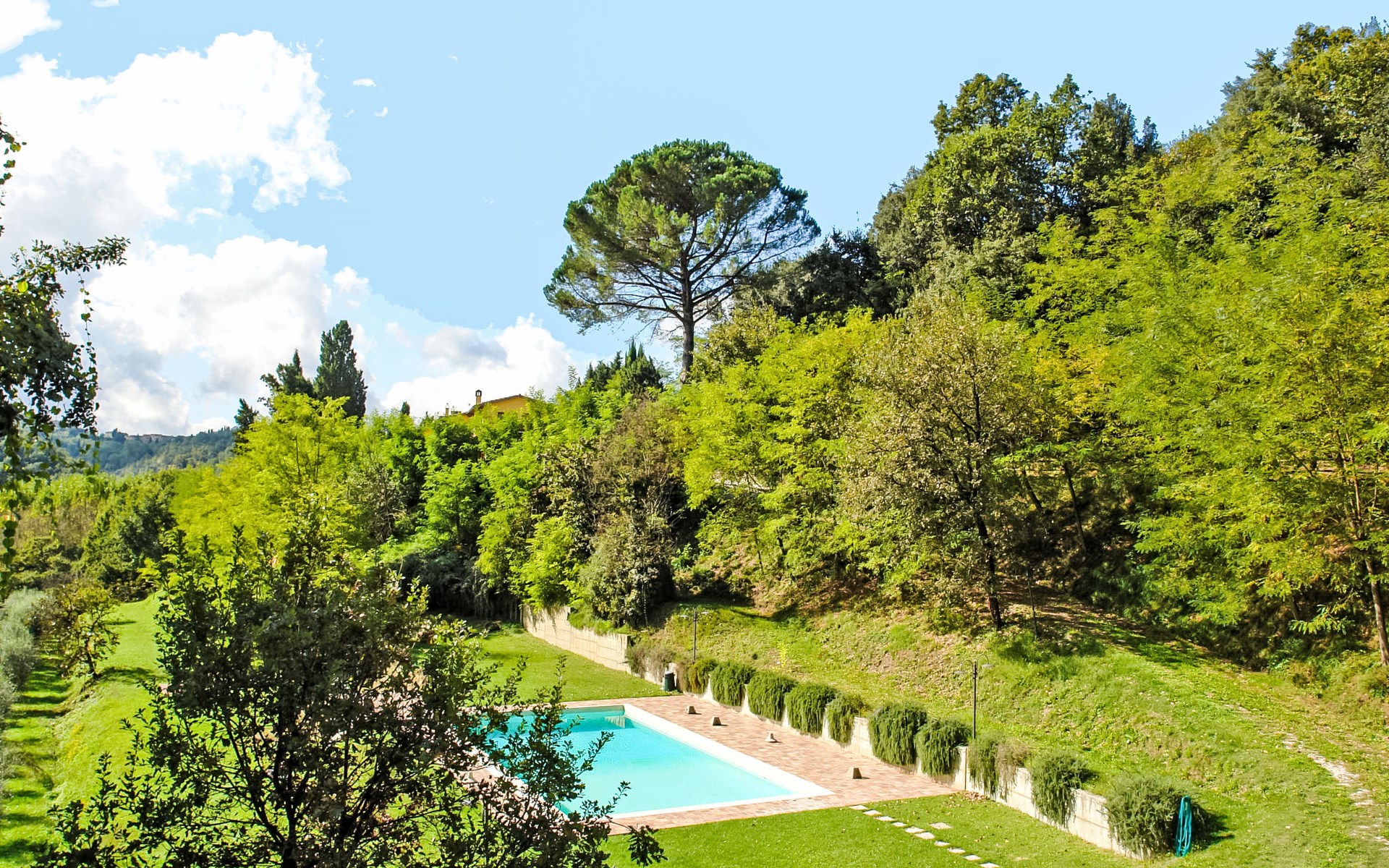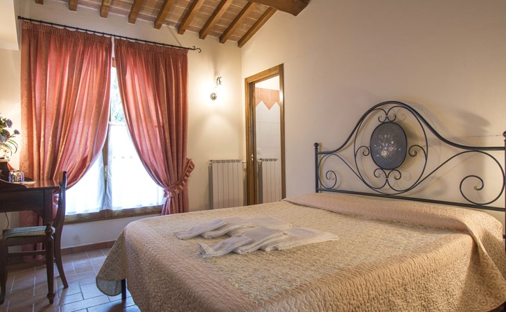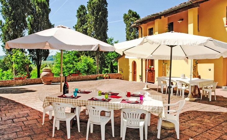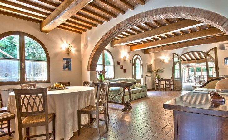 Very beautiful, comfortable country house "La Gora", 2 storeys, built in 1825, renovated, surrounded by trees, meadows and fields. 4 km from the centre of Montopoli Val d´Arno, in a secluded, quiet, elevated position, in the countryside. For shared use: property. Private: beautiful garden to relax, swimming pool (14 x 7 m, depth 150 - 250 cm, seasonal availability: 01.May. - 02.Oct.). Outdoor shower, terrace, garden furniture, barbecue. In the house: internet access, massage (extra). Air conditioning, washing machine, heating to be paid on the spot, heating available only from 01.Nov. - 15.Apr. (extra). Linen change (suppl. charge extra). Towel change (suppl. charge extra). Room cleaning on request (extra). Cook on request. On request (extra). Motor access (1 km via unmade road). Parking on the premises. Shop 2 km, supermarket 4 km, restaurant 4 km, bus stop 5 km, railway station "Montopoli" 4 km, sandy beach 40 km, thermal baths 25 m. Golf course 20 km. Nearby attractions: Pisa 30 km, Firenze 50 km, Lucca 40 km. Please note: the owner lives on the same property.