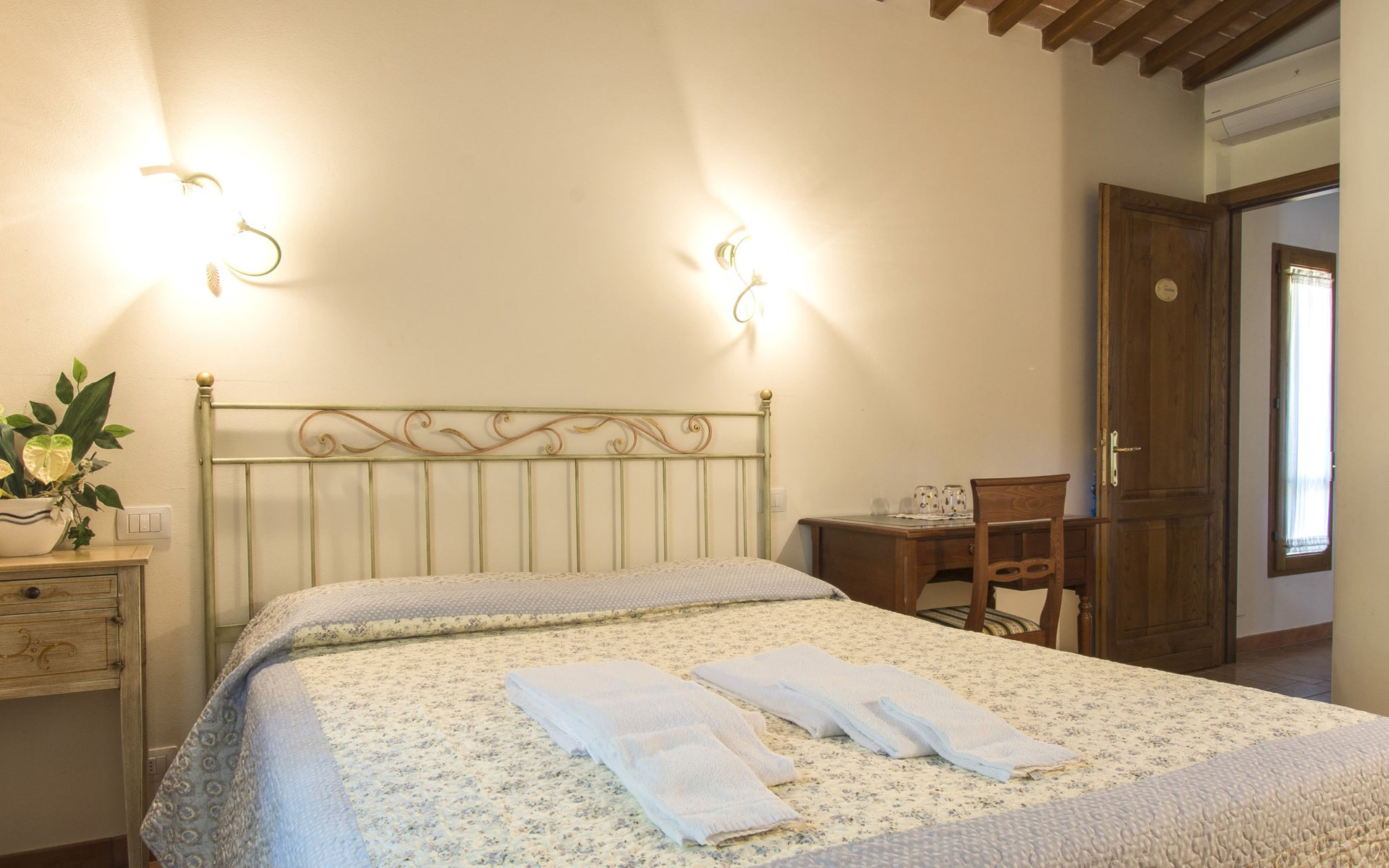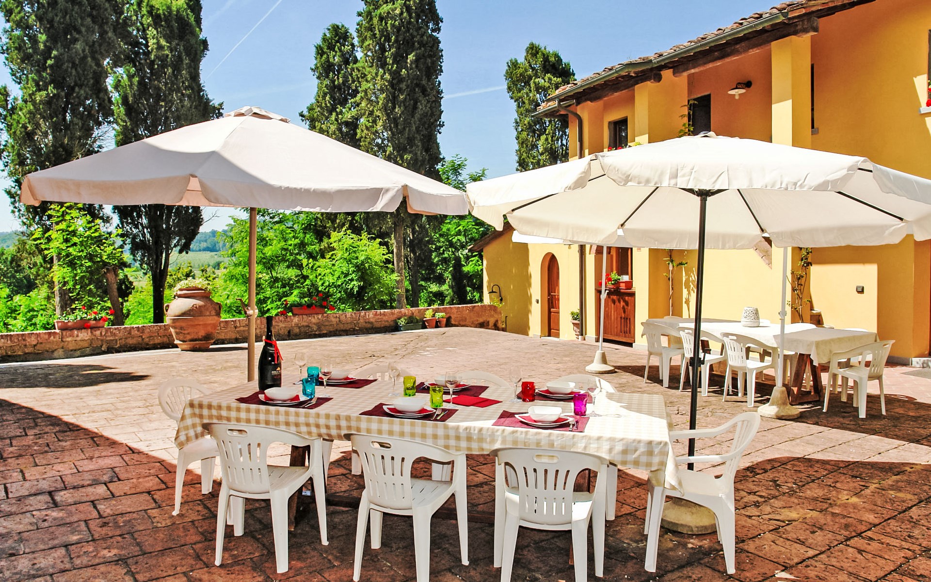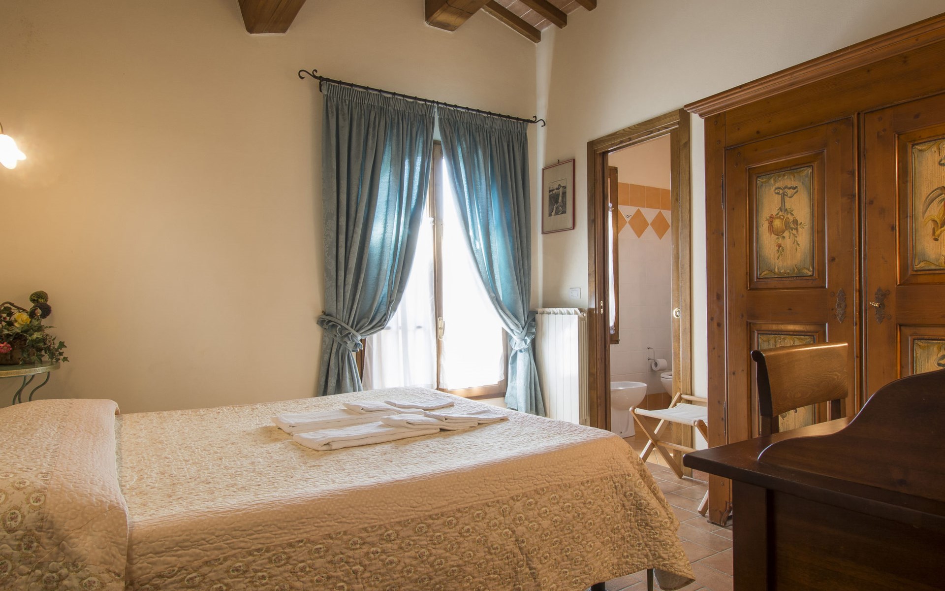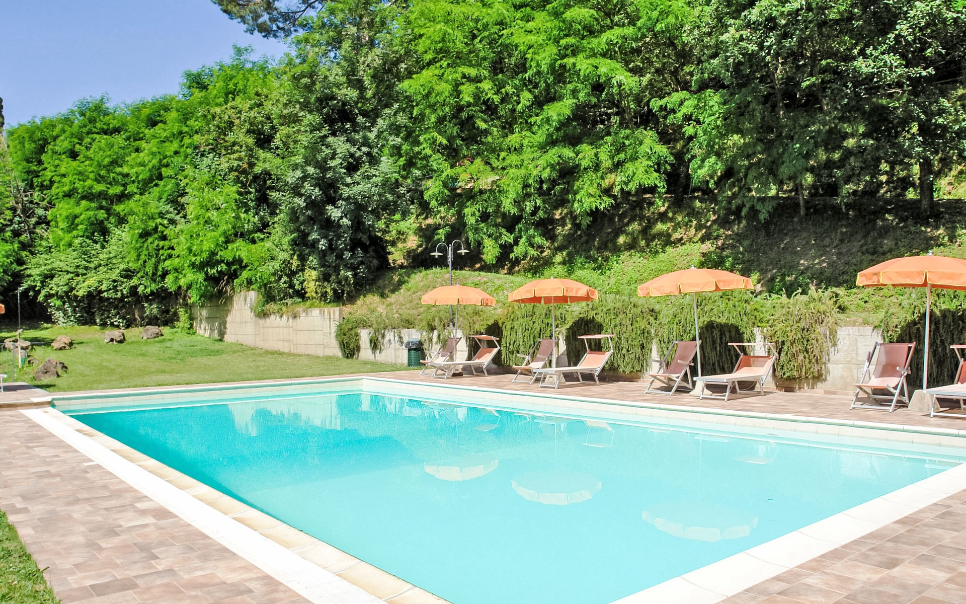 Very beautiful, comfortable country house "La Gora", 2 storeys, built in 1825, renovated, surrounded by trees, meadows and fields. 4 km from the centre of Montopoli Val d´Arno, in a secluded, quiet, elevated position, in the countryside. For shared use: property. Private: beautiful garden to relax, swimming pool (14 x 7 m, depth 150 - 250 cm, seasonal availability: 01.May. - 02.Oct.). Outdoor shower, terrace, garden furniture, barbecue. In the house: internet access, massage (extra). Air conditioning, washing machine, heating to be paid on the spot, heating available only from 01.Nov. - 15.Apr. (extra). Linen change (suppl. charge extra). Towel change (suppl. charge extra). Room cleaning on request (extra). Cook on request. On request (extra). Motor access (1 km via unmade road). Parking on the premises. Shop 2 km, supermarket 4 km, restaurant 4 km, bus stop 5 km, railway station "Montopoli" 4 km, sandy beach 40 km, thermal baths 25 m. Golf course 20 km. Nearby attractions: Pisa 30 km, Firenze 50 km, Lucca 40 km. Please note: the owner lives on the same property.