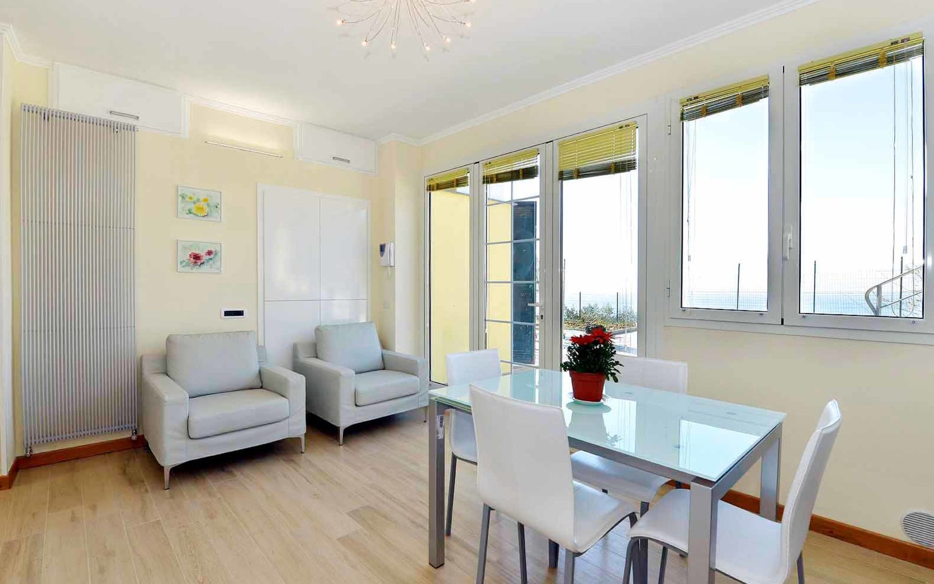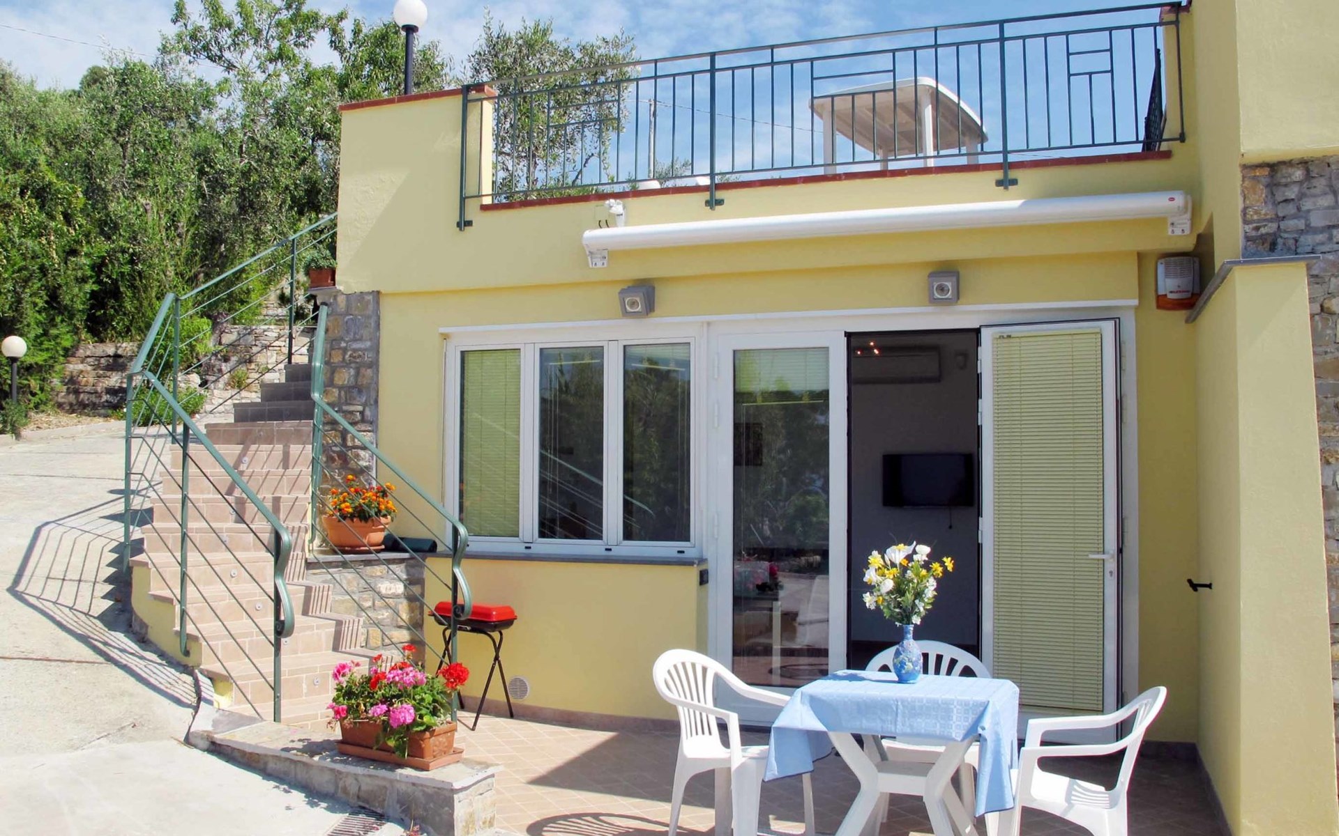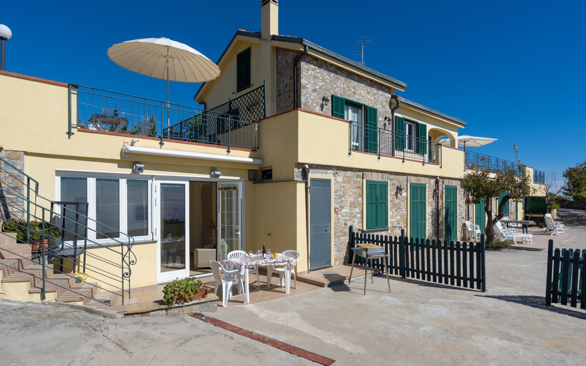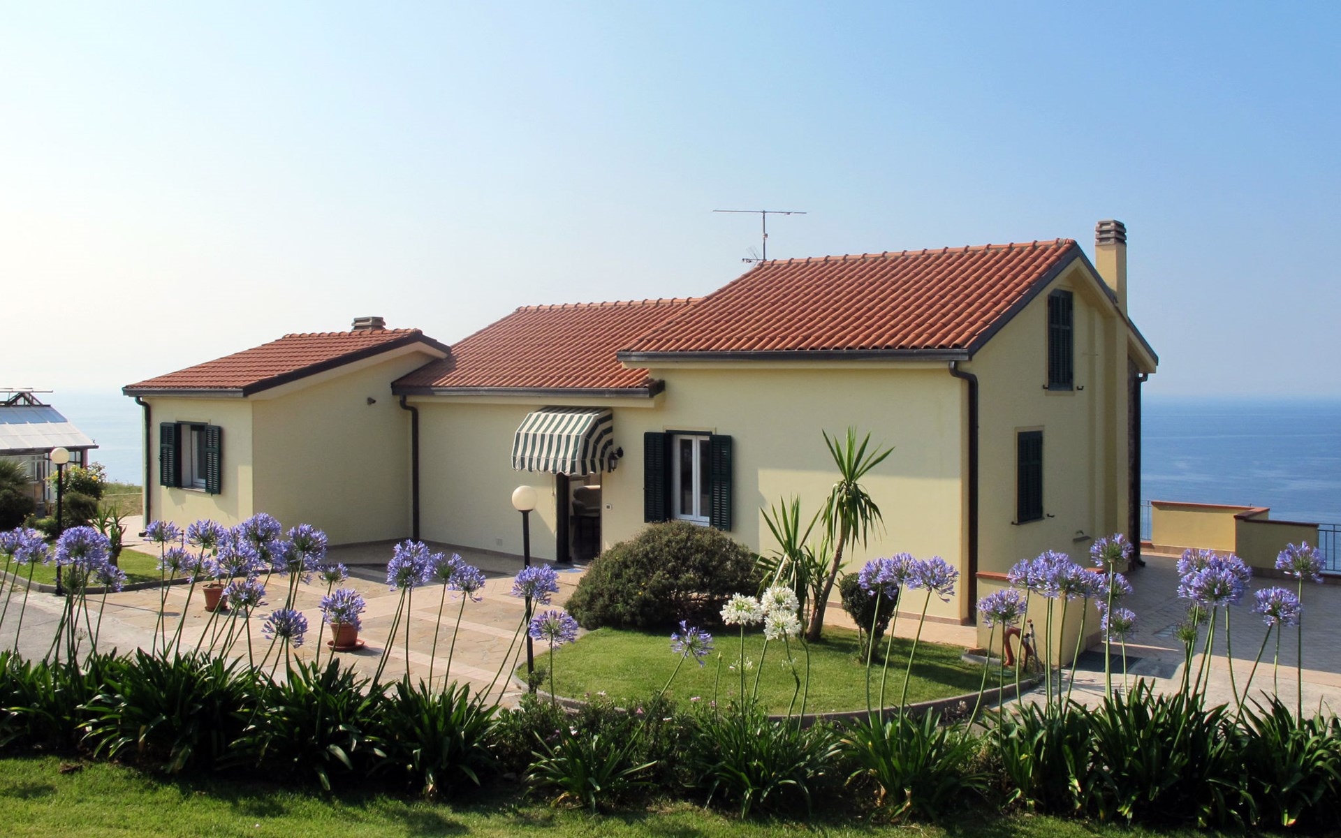 Very beautiful, comfortable house "Primavera". 3 apartments in the property. Above Poggi 1 km from the centre of Poggi, 2.5 km from the centre of Imperia, 25 km from the centre of San Remo, in a secluded, sunny, elevated position, 900 m from the sea, in a cul-de-sac. For shared use: beautiful, well-kept garden 800 m2 (fenced) with lawn and plants. 150 m long narrow motor access. Parking on the premises. Shop 1 km, supermarket 1 km, bus stop 150 m, railway station "Imperia" 7 km, sandy beach "San Lorenzo al Mare" 4 km pebble beach "Baia Salata" 1 km, indoor swimming pool 5.5 km. Residence with electric gates.