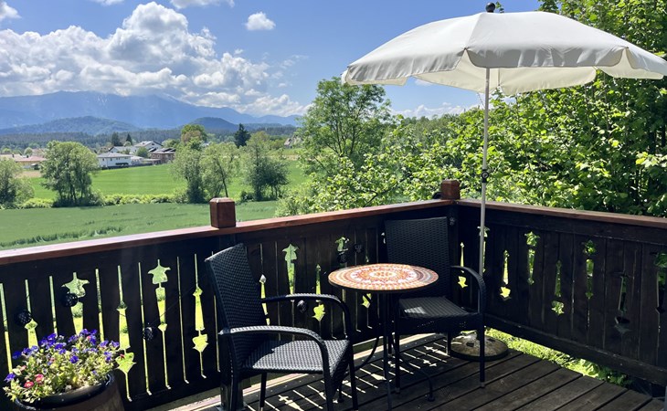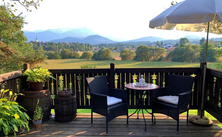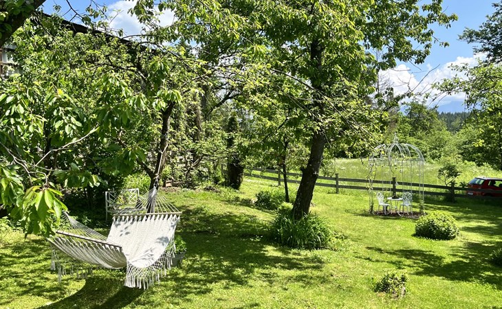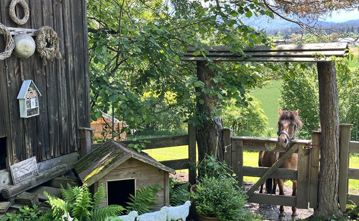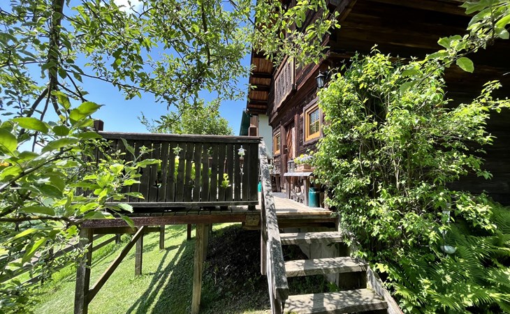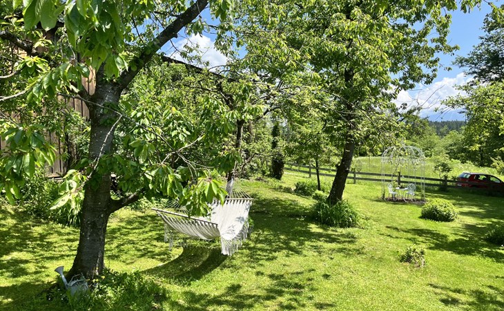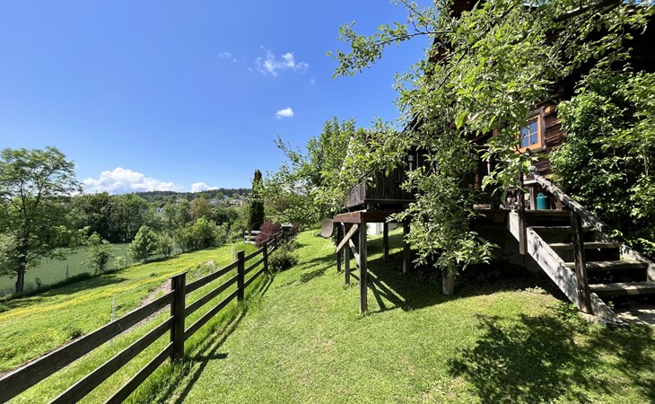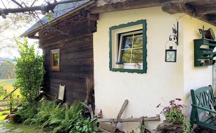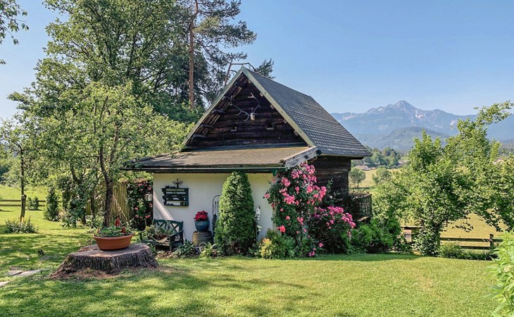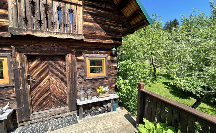 Small, rustic timber house "Reserl", from the 19th century, surrounded by meadows and fields. Outside the resort, in a quiet, sunny position, 5 km from the lake, in a cul-de-sac. For shared use: orchard, lawn for sunbathing. Private: terrace (10 m2), garden furniture, parking at the house. Grocery 5 km, supermarket 5 km, restaurant 400 m, bus stop 500 m, railway station, outdoor swimming pool 5 km, indoor swimming pool 5 km. Golf course (18 hole) 8 km, tennis 5 km, riding stable 200 m, skisport facilities 12 km. Nearby attractions: Minimundus Klagefurt 27 km, Aussichtsturm Pyramidenkogel 20 km, Affenberg Burg Landskron 18 km, Casino Velden 5 km. Well-known lakes can easily be reached: Wörthersee 5 km. Please note: the owner lives on the same property. Animals in the neighbourhood. Railway line 350 m from the property. The former granary stands in an orchard. Access is via 4 steps and the terrace. A horse and 3 Carinthian spectacled sheep are kept.