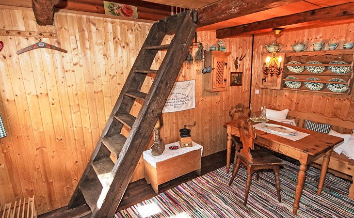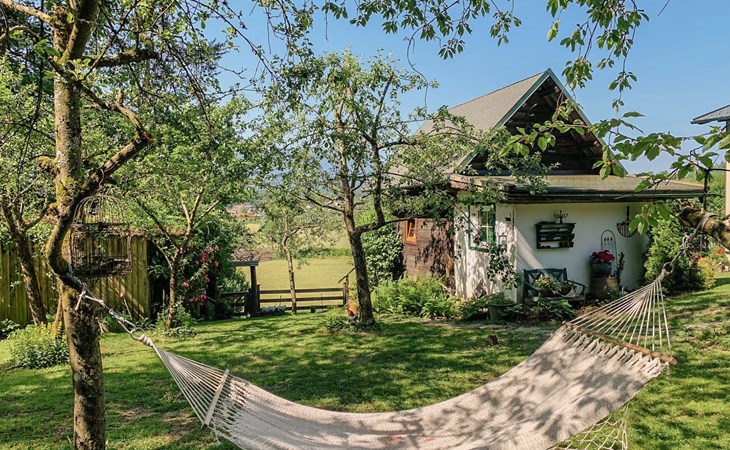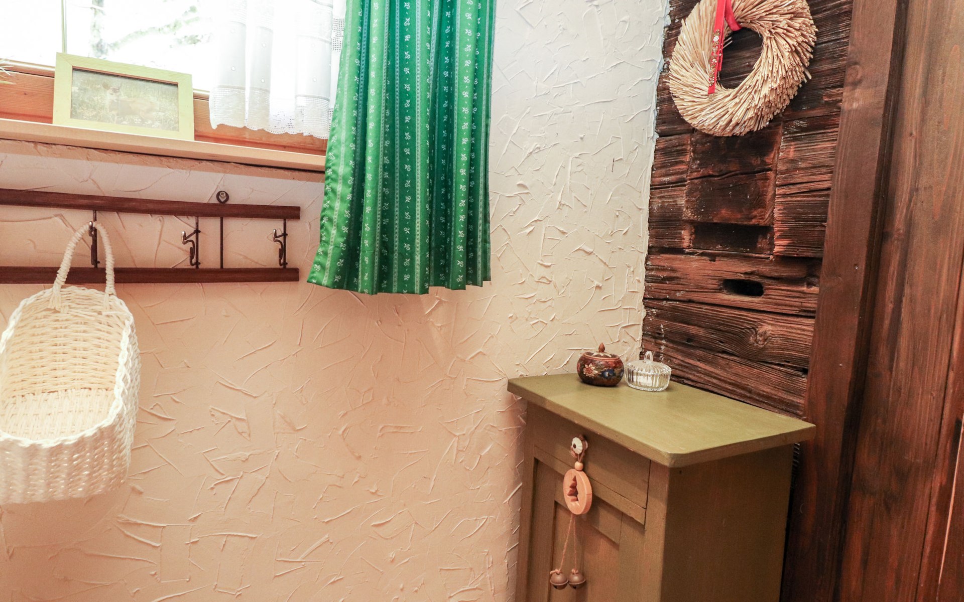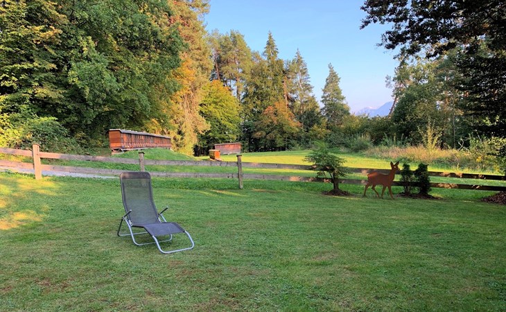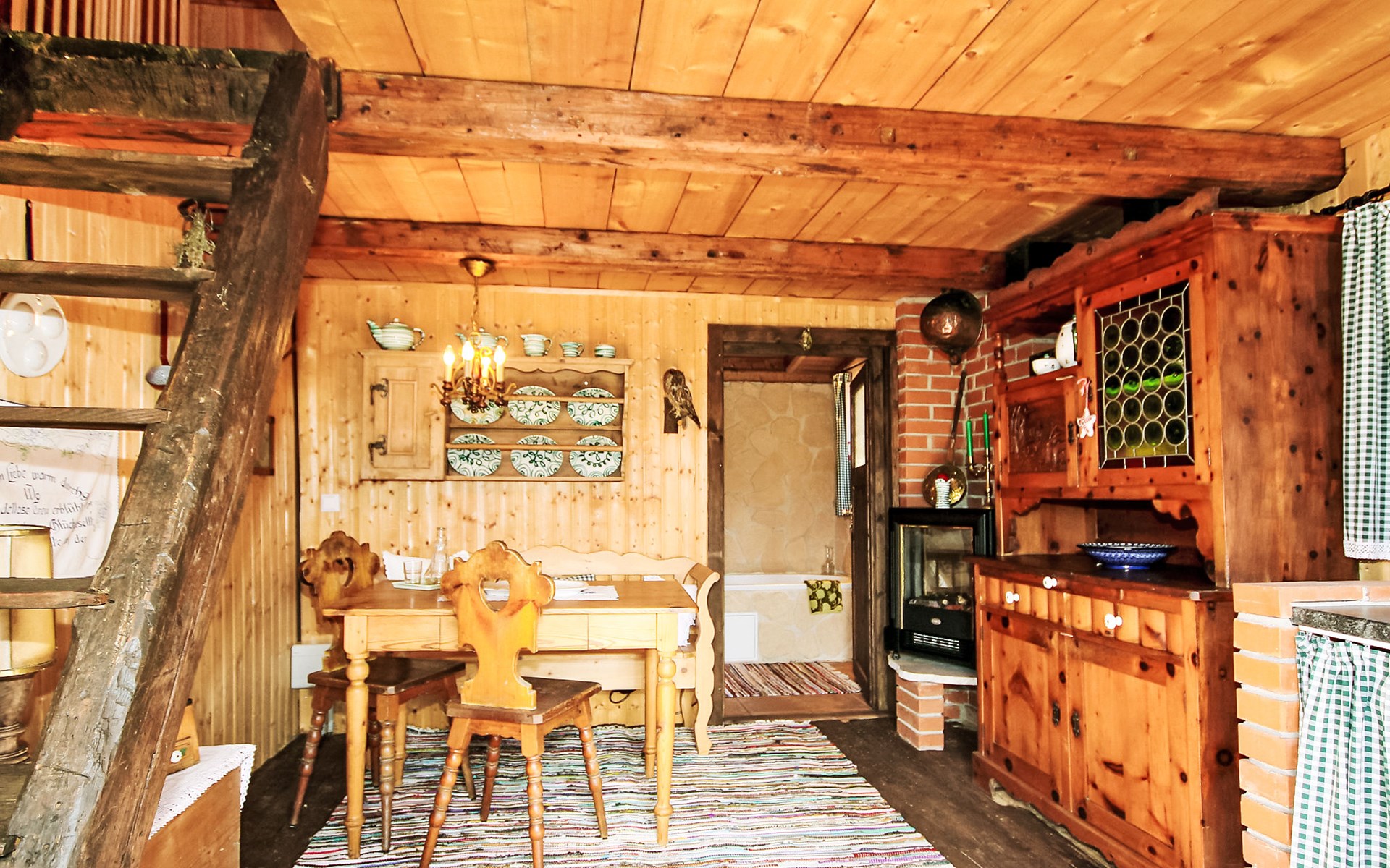 Small, rustic timber house "Reserl", from the 19th century, surrounded by meadows and fields. Outside the resort, in a quiet, sunny position, 5 km from the lake, in a cul-de-sac. For shared use: orchard, lawn for sunbathing. Private: terrace (10 m2), garden furniture, parking at the house. Grocery 5 km, supermarket 5 km, restaurant 400 m, bus stop 500 m, railway station, outdoor swimming pool 5 km, indoor swimming pool 5 km. Golf course (18 hole) 8 km, tennis 5 km, riding stable 200 m, skisport facilities 12 km. Nearby attractions: Minimundus Klagefurt 27 km, Aussichtsturm Pyramidenkogel 20 km, Affenberg Burg Landskron 18 km, Casino Velden 5 km. Well-known lakes can easily be reached: Wörthersee 5 km. Please note: the owner lives on the same property. Animals in the neighbourhood. Railway line 350 m from the property. The former granary stands in an orchard. Access is via 4 steps and the terrace. A horse and 3 Carinthian spectacled sheep are kept.
