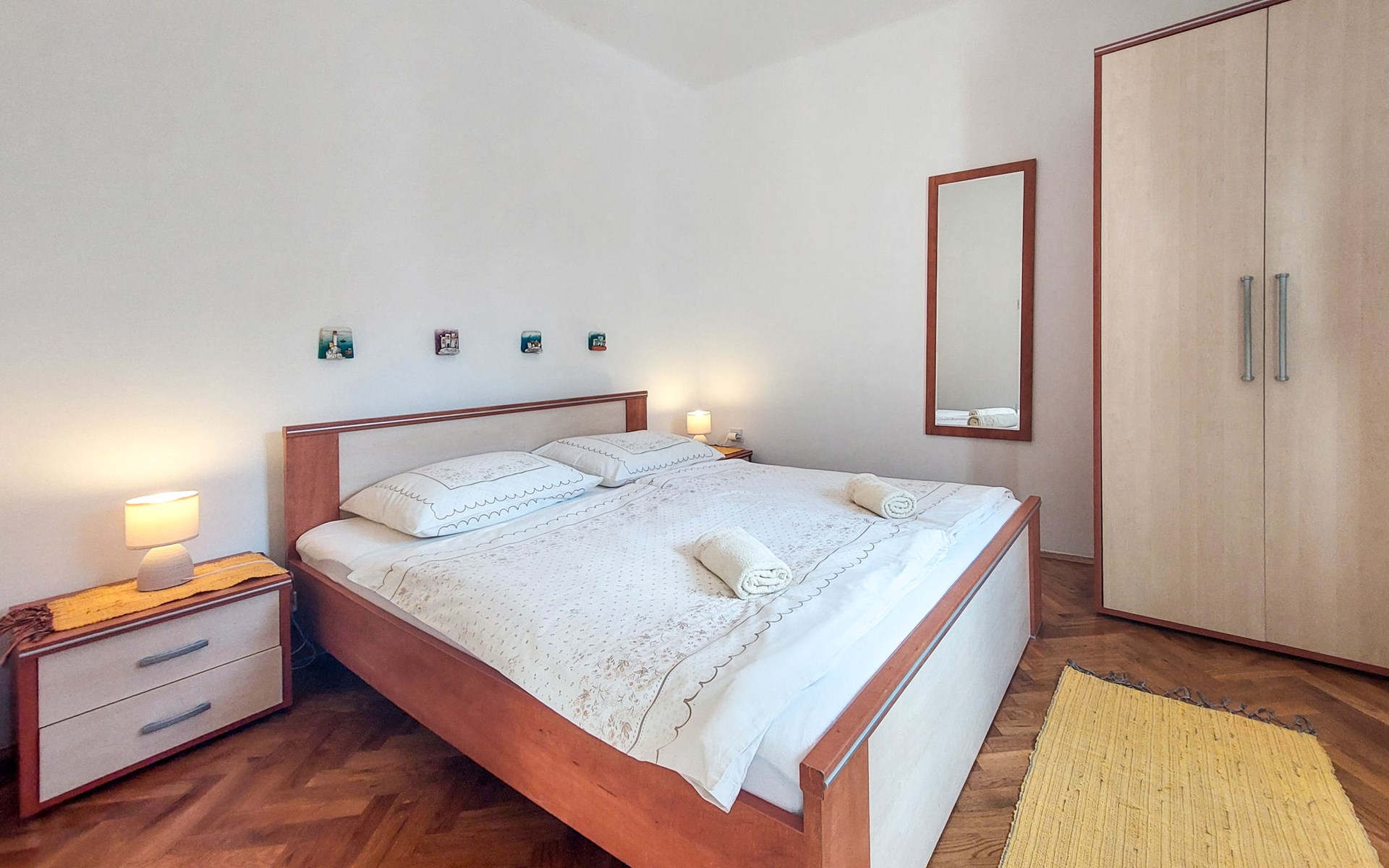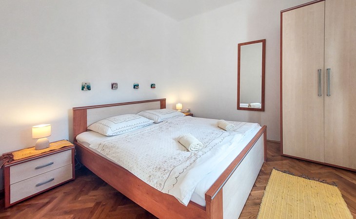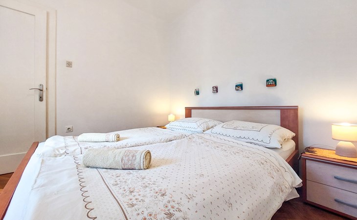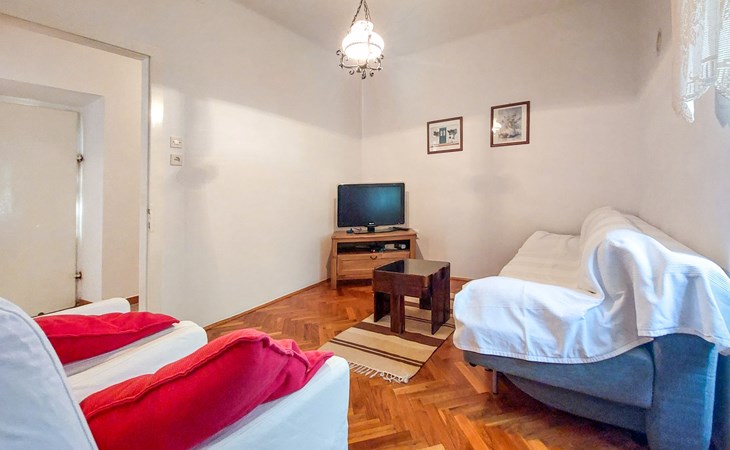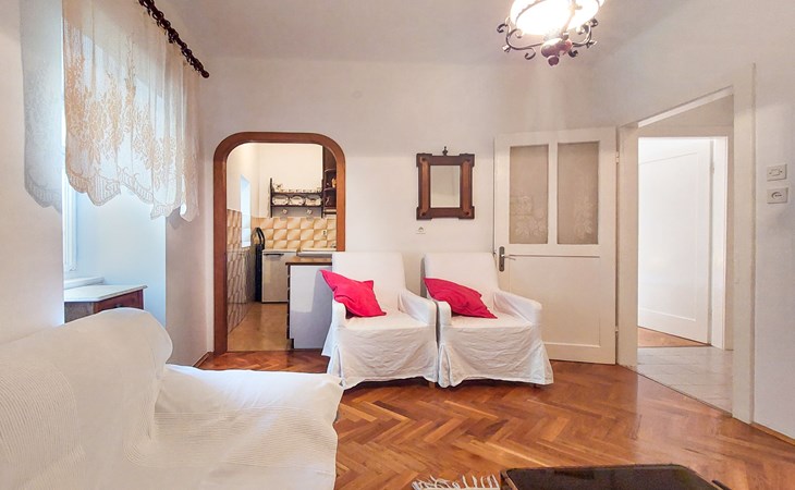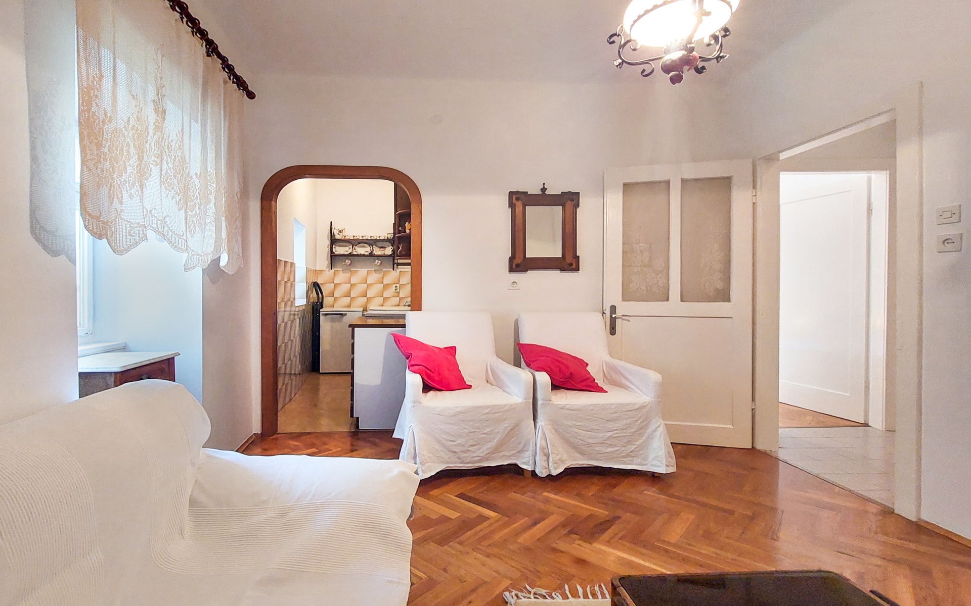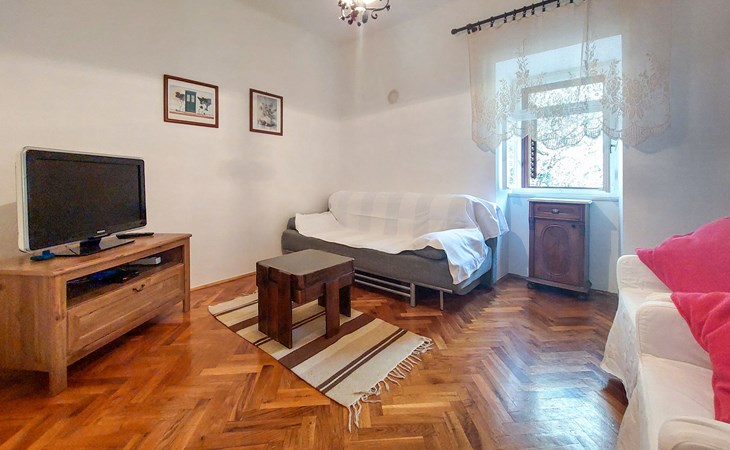 Single-family house "Ljudevit", 2 storeys. 13.5 km from the centre of Malinska, 450 m from the centre of Polje, 13 km from the centre of Vrbnik, 2.5 km from the sea, 2.5 km from the beach. Private: property 1'500 m2 with trees, meadow. Outdoor shower, barbecue, children's playground (swing). In the house: internet access, washing machine. Parking (for 3 cars) on the premises. Shop 450 m, bus stop 1.8 km, sandy beach 2.5 km. Please note: airfield 17 km from the property.