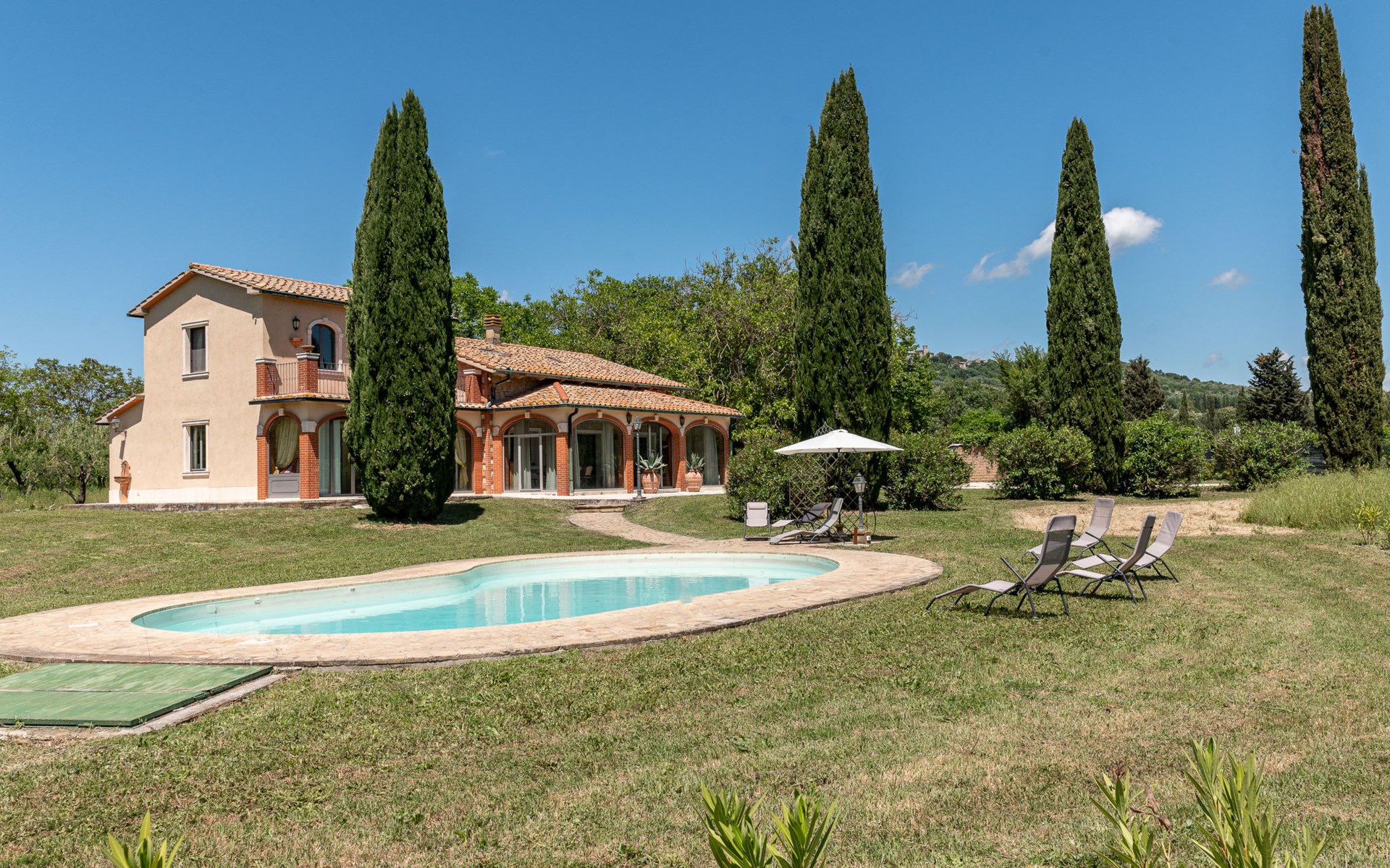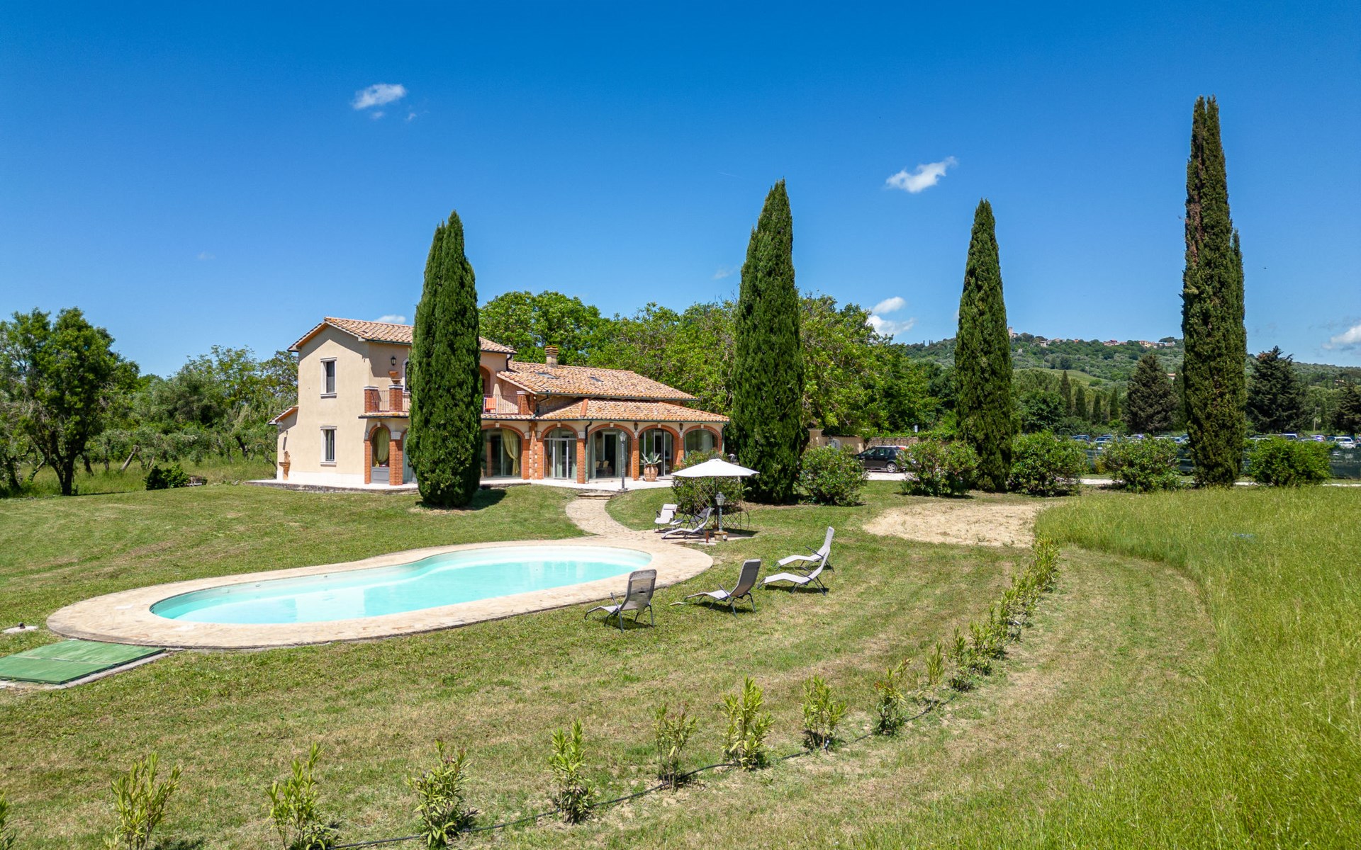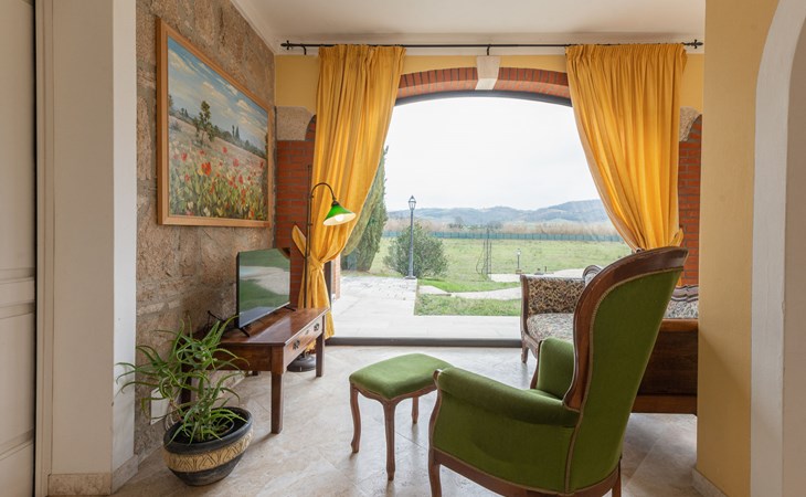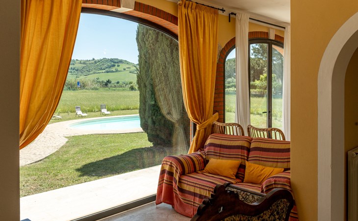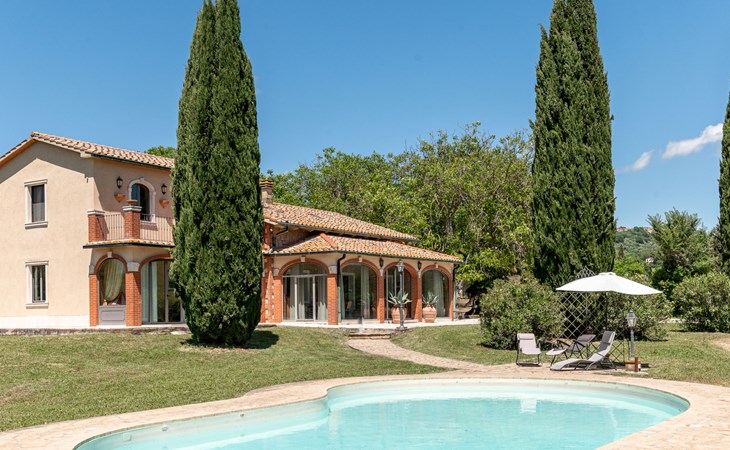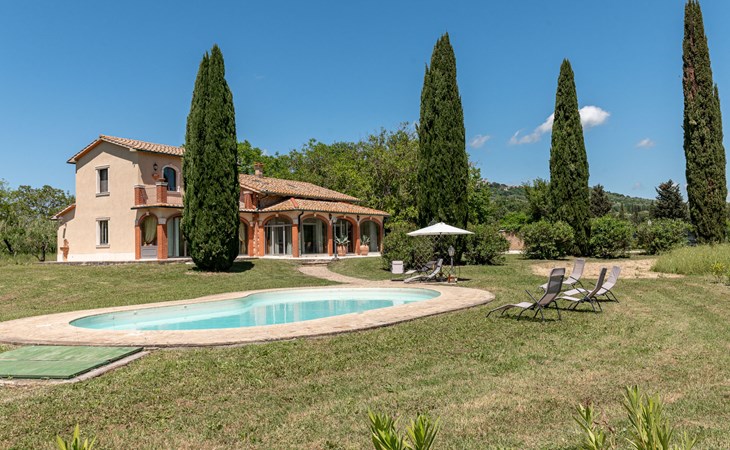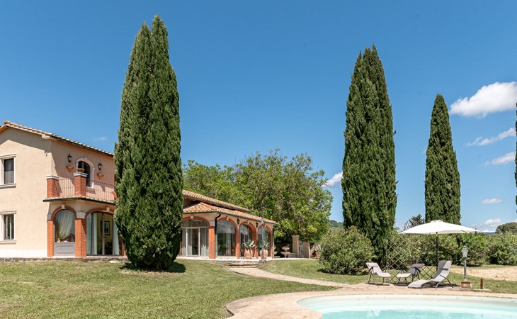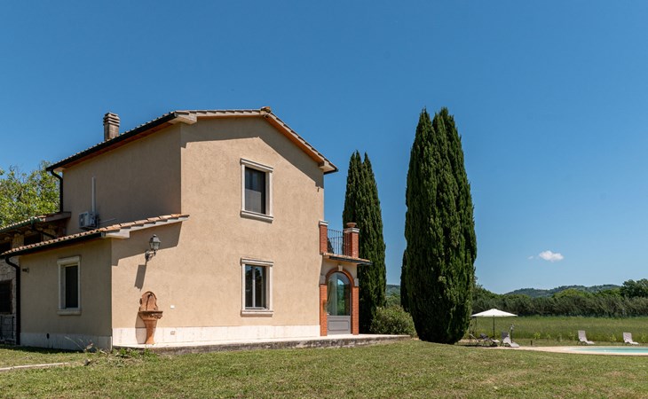 Located in a strategic position to fully enjoy the Terme di Saturnia, the most important spa in the Maremma and to visit the picturesque villages of southern Tuscany and the Agrentario sea. Beautiful, cosy villa "Le Cascate", 2 storeys, surrounded by meadows and fields. 2 km from the centre of Saturnia, 12 km from the centre of Manciano, in a secluded, sunny position, 45 km from the sea, 45 km from the beach, in the countryside. Private: property 15'000 m2 (fenced) with lawn and wildlife garden, swimming pool (12 x 5 m, depth 140 - 190 cm, seasonal availability: 15.May. - 30.Sep.). Terrace, garden furniture, barbecue. In the house: washing machine, heating available only from 15.Oct. - 15.Apr.. Parking at the house. Grocery 2 km, supermarket 12 km, restaurant 1 km, bicycle rental 750 m, sandy beach "Argentario" 50 km, thermal baths "Cascate naturali del Gorello" 200 m. Golf course (18 hole) 1.3 km, tennis 1.3 km, walking paths from the house 500 m. Nearby attractions: Montemerano 7 km, Pitigliano/Sovana 23 km, Scansano 28 km, Grosseto 54 km, Bolsena 50 km. Please note: car recommended.
