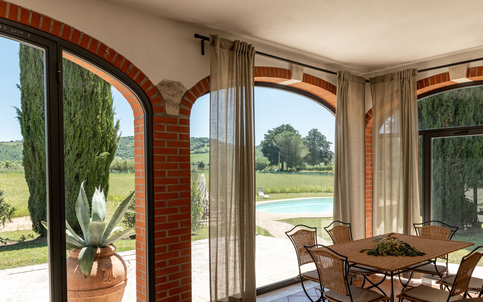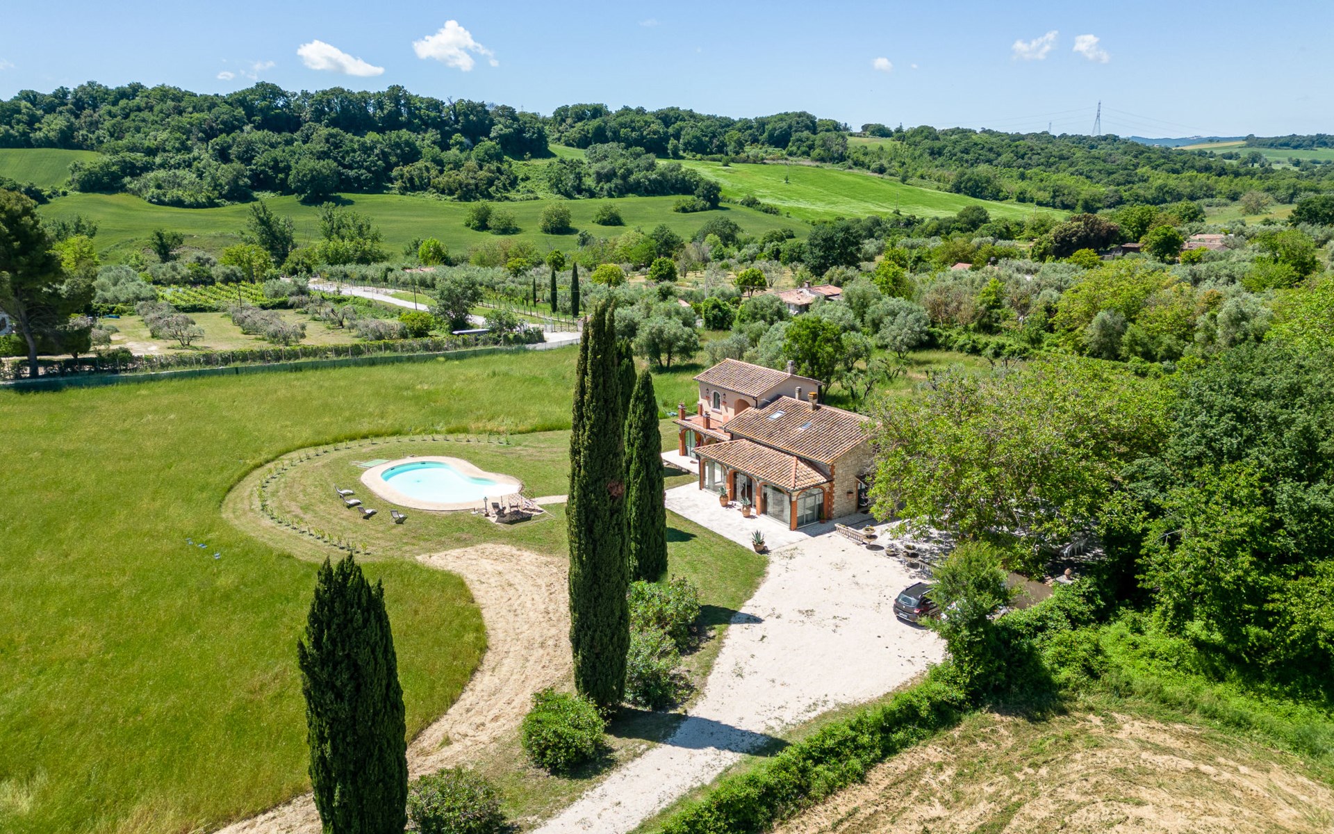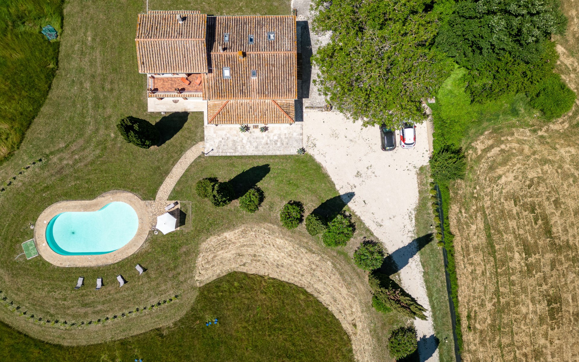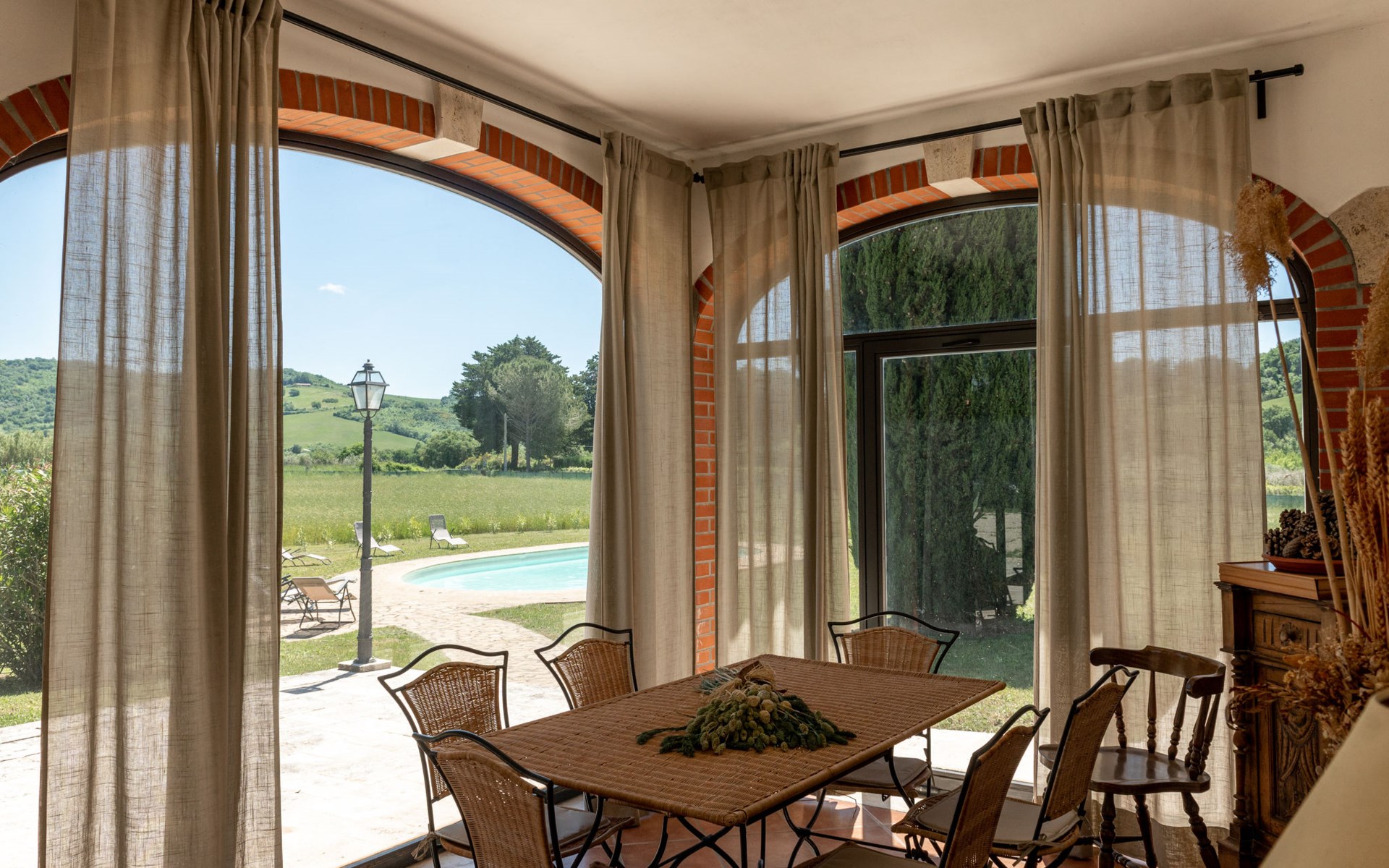 Located in a strategic position to fully enjoy the Terme di Saturnia, the most important spa in the Maremma and to visit the picturesque villages of southern Tuscany and the Agrentario sea. Beautiful, cosy villa "Le Cascate", 2 storeys, surrounded by meadows and fields. 2 km from the centre of Saturnia, 12 km from the centre of Manciano, in a secluded, sunny position, 45 km from the sea, 45 km from the beach, in the countryside. Private: property 15'000 m2 (fenced) with lawn and wildlife garden, swimming pool (12 x 5 m, depth 140 - 190 cm, seasonal availability: 15.May. - 30.Sep.). Terrace, garden furniture, barbecue. In the house: washing machine, heating available only from 15.Oct. - 15.Apr.. Parking at the house. Grocery 2 km, supermarket 12 km, restaurant 1 km, bicycle rental 750 m, sandy beach "Argentario" 50 km, thermal baths "Cascate naturali del Gorello" 200 m. Golf course (18 hole) 1.3 km, tennis 1.3 km, walking paths from the house 500 m. Nearby attractions: Montemerano 7 km, Pitigliano/Sovana 23 km, Scansano 28 km, Grosseto 54 km, Bolsena 50 km. Please note: car recommended.