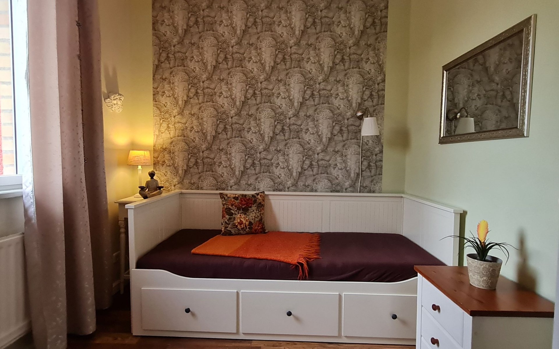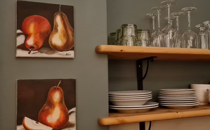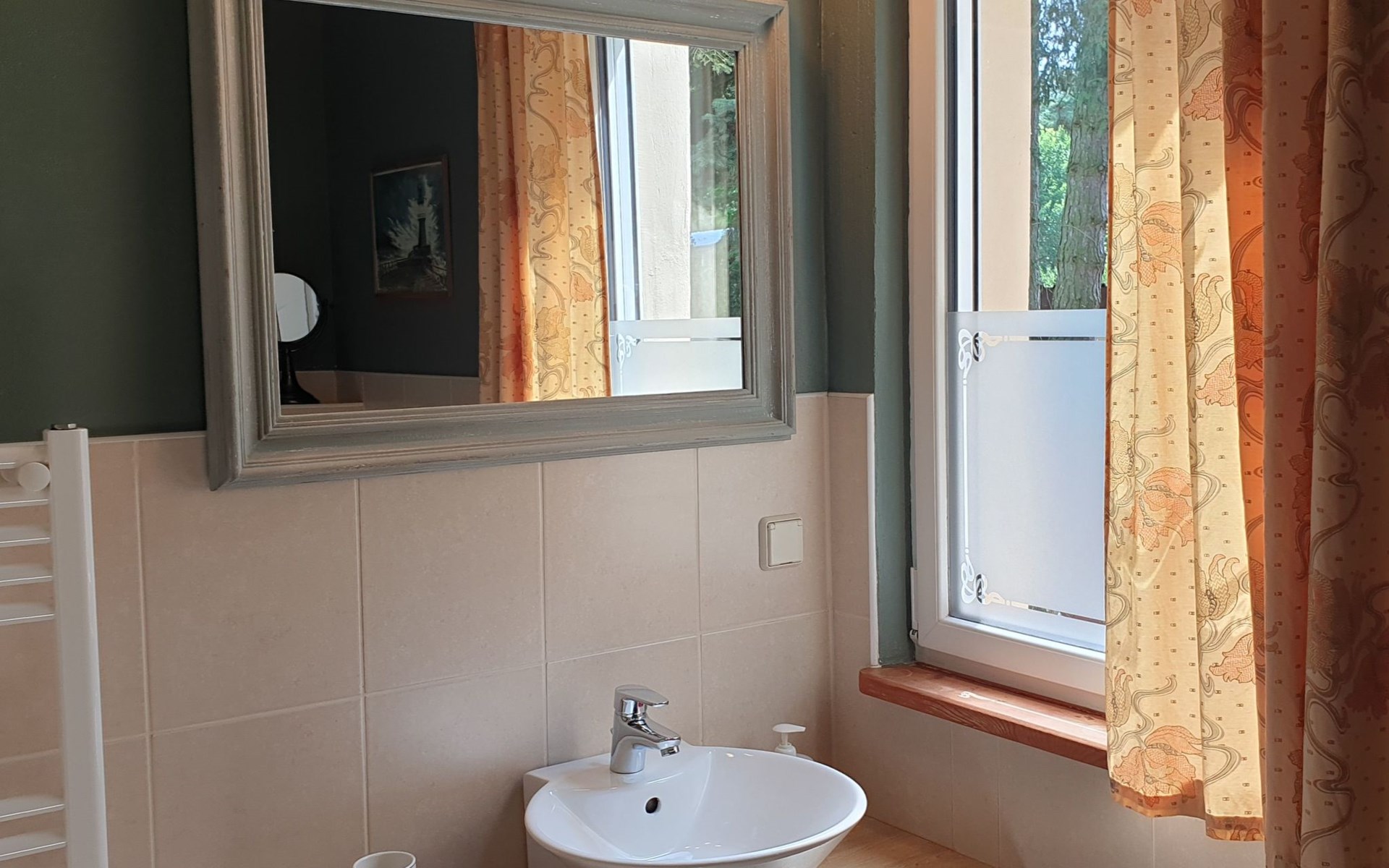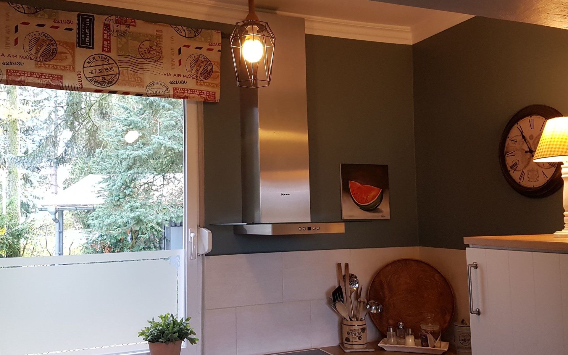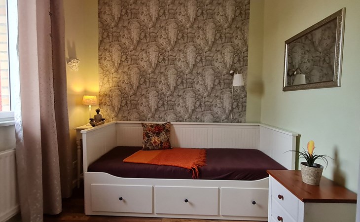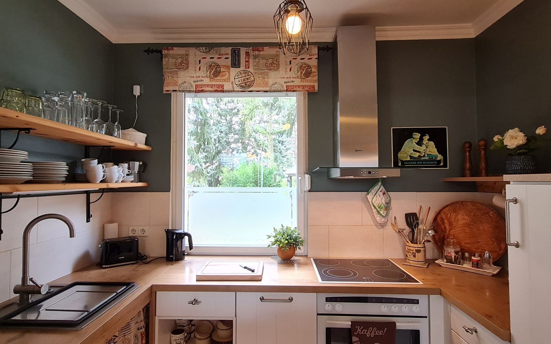 The house is furnished in a modern country house style, the colours are harmoniously coordinated and thus create a pleasant feeling of living that allows you to quickly and easily relax and unwind. The living room with its 16 m² offers enough space to make yourself comfortable. On cooler days, a wood-burning stove provides cosiness. The house can also be heated electrically. The bedrooms have a double bed 160x200cm and a single bed 80x200cm, which can be extended into a double bed. Both rooms are equipped with ceiling fans. The kitchen is well equipped - dishwasher, oven with ceramic hob, extractor fan, microwave, fridge with freezer compartment, coffee machine, espresso maker, tea towels and washing-up liquid are provided