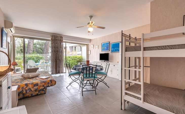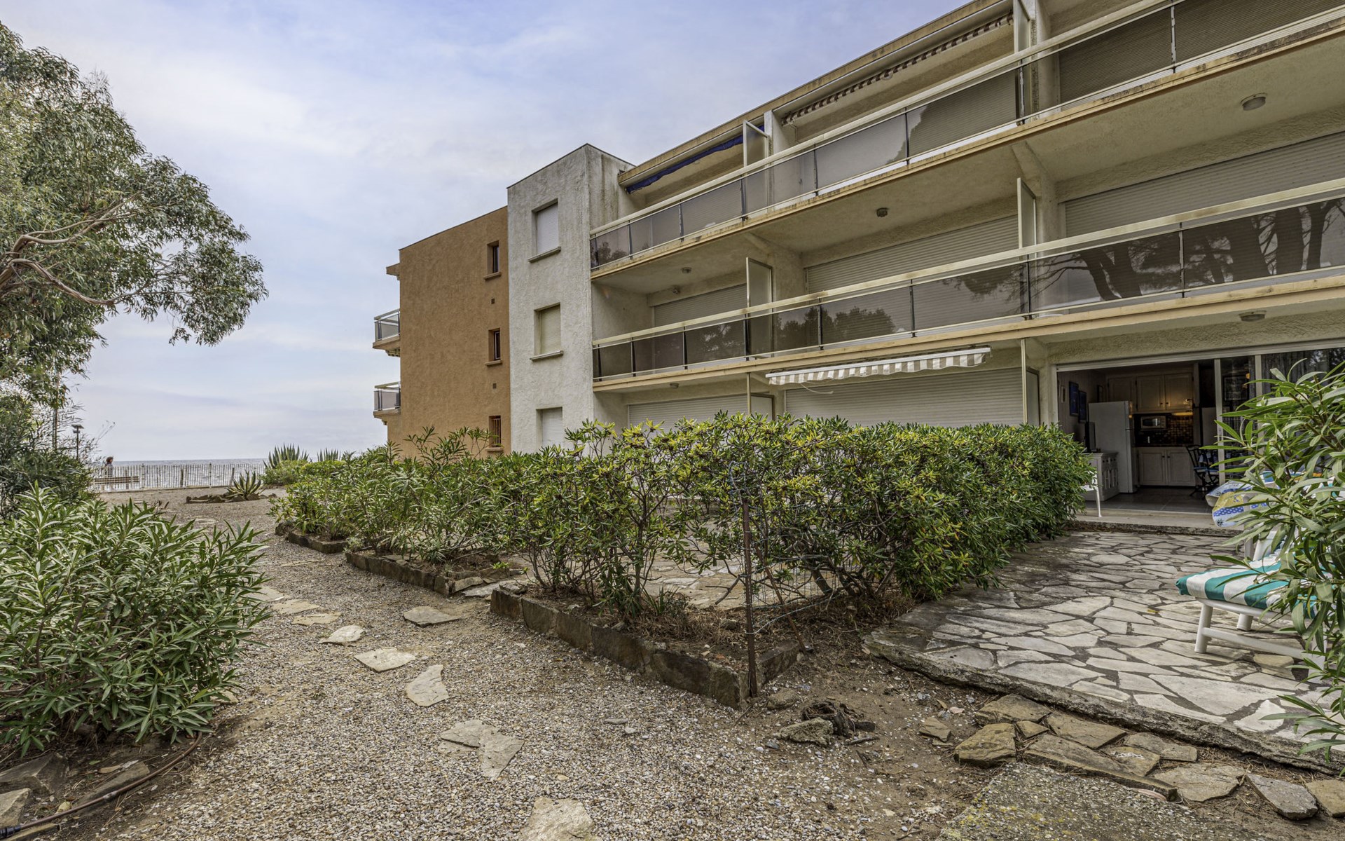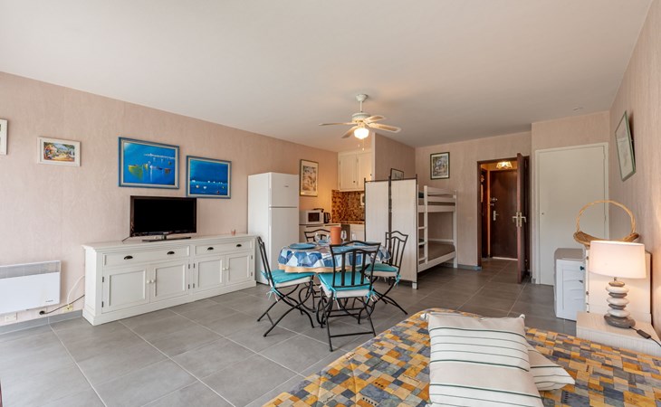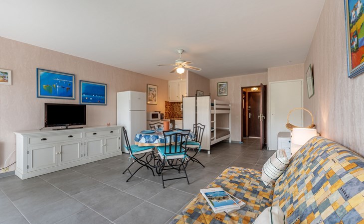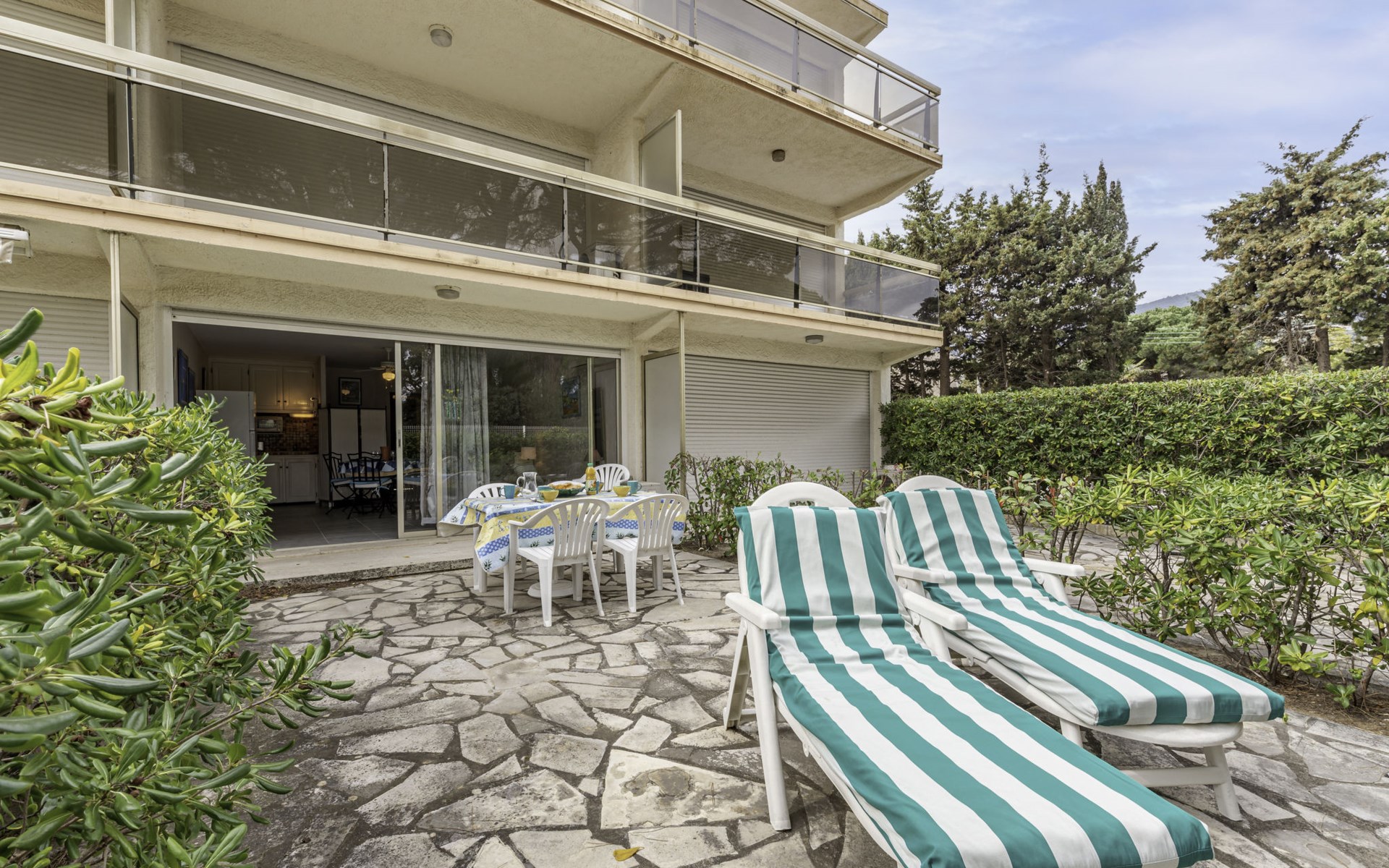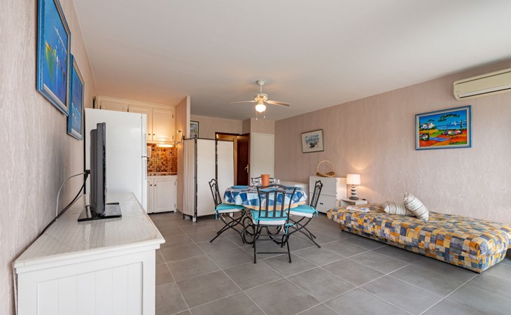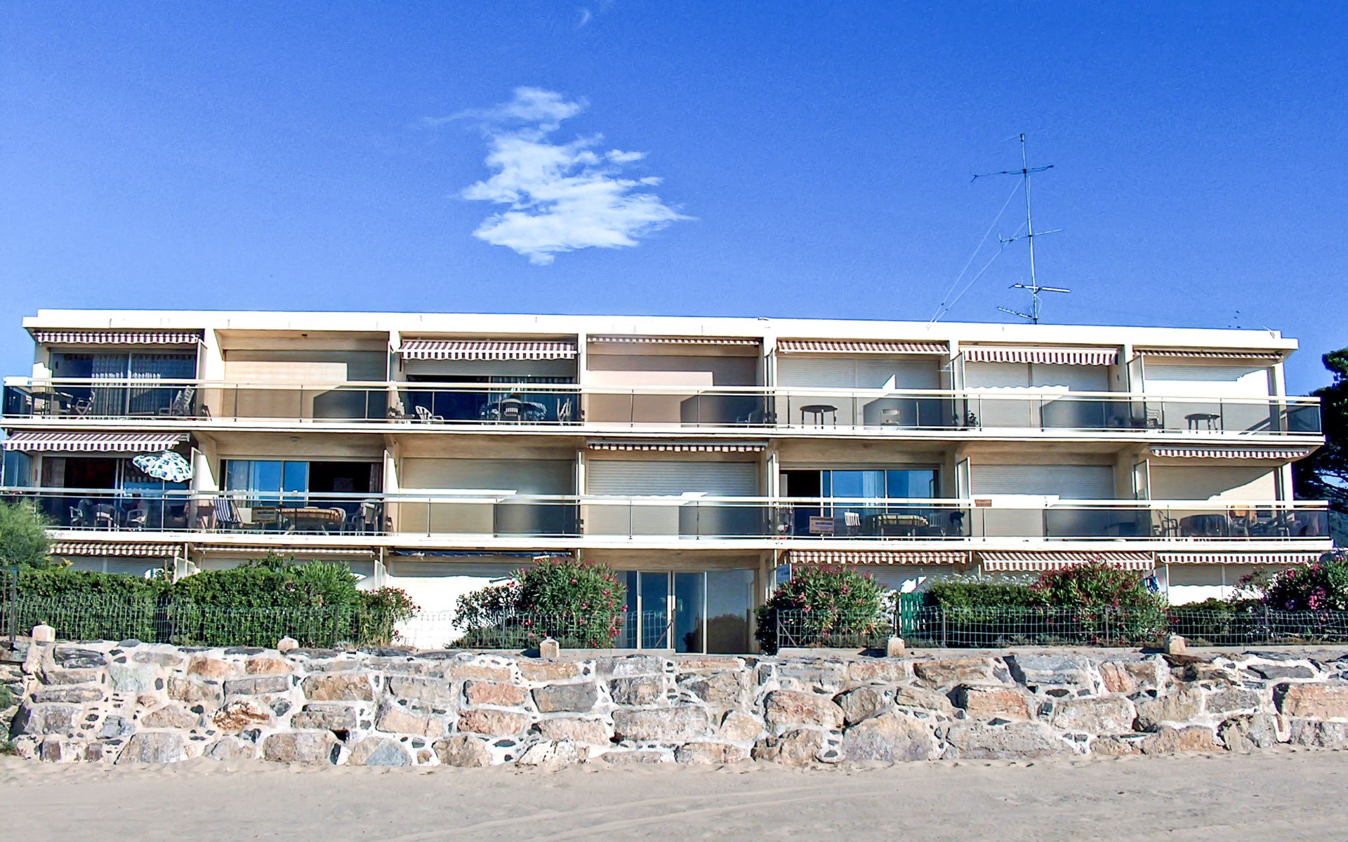 Residence "De la Plage". In the resort 800 m from the centre of Cavalaire sur Mer, on a slope, 10 m from the sea, 10 m from the beach, direct access to the beach, south facing position. Public parking 50 m on the road. Shop 300 m, grocery 100 m, supermarket 500 m, shopping centre 10 km, restaurant, bar, bakery 100 m, bus stop "place du parc" 450 m, park "Aqualand" 24 km, diving center 800 m. Sports harbour 800 m, sailing school, minigolf 12 km, cycle lane 10 m. Nearby attractions: Azur Park, Paint-ball 12 km, Bowling à Port-Grimaud 13 km, St-Tropez 17 km, Ste-Maxime 24 km. Hiking paths: Sentier du Fenouillet 3 km, Sentier du littoral 7 km, Toulon 60 km. Please note: the keys‘ handover takes place by the agency Interhome in Cavalaire. Main road close by.