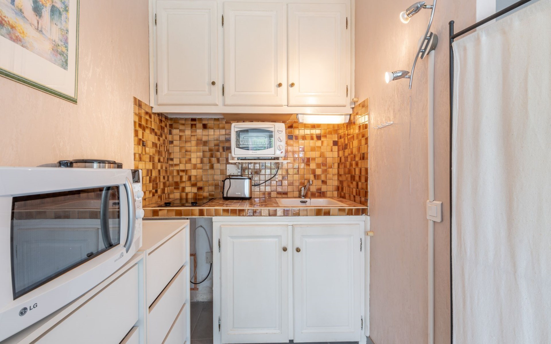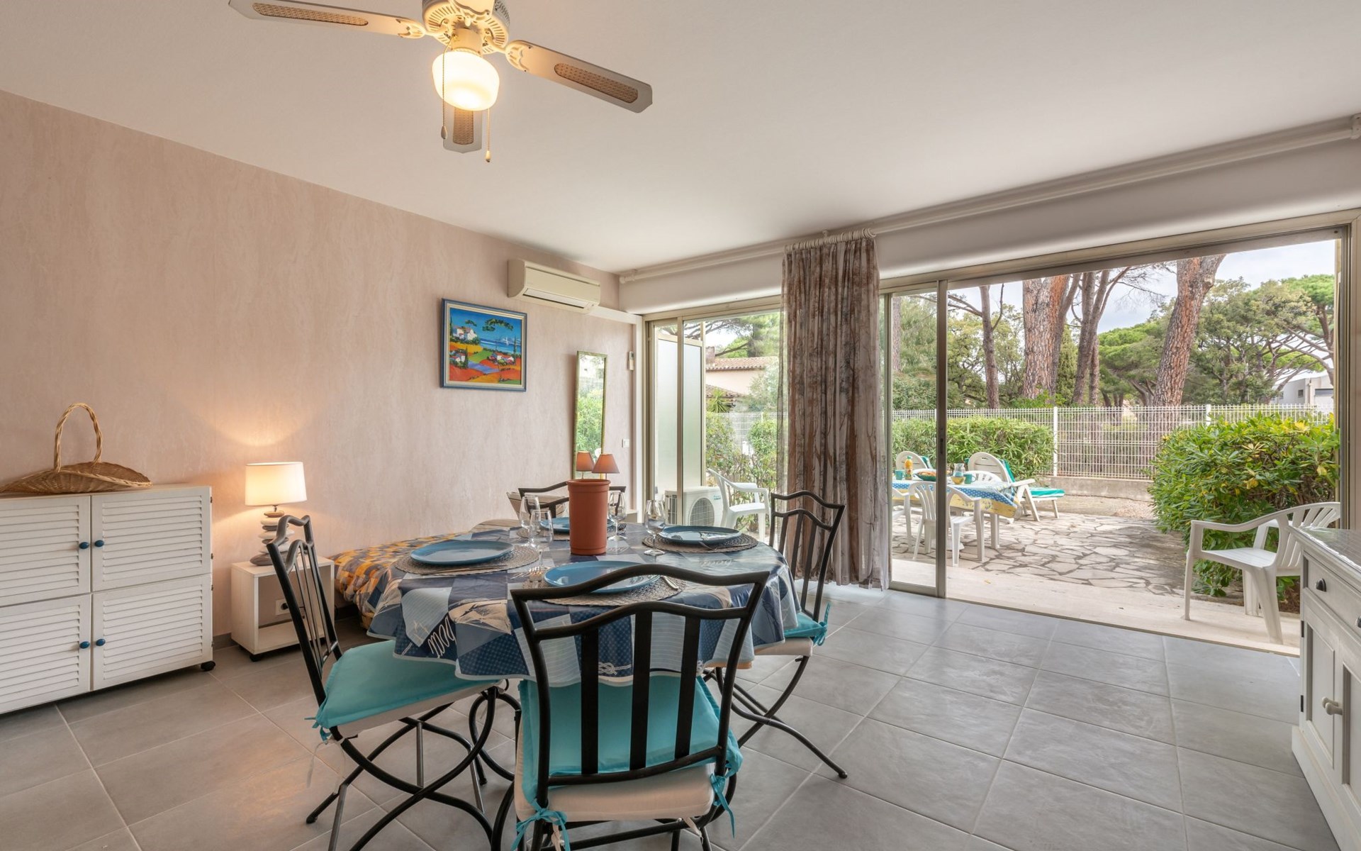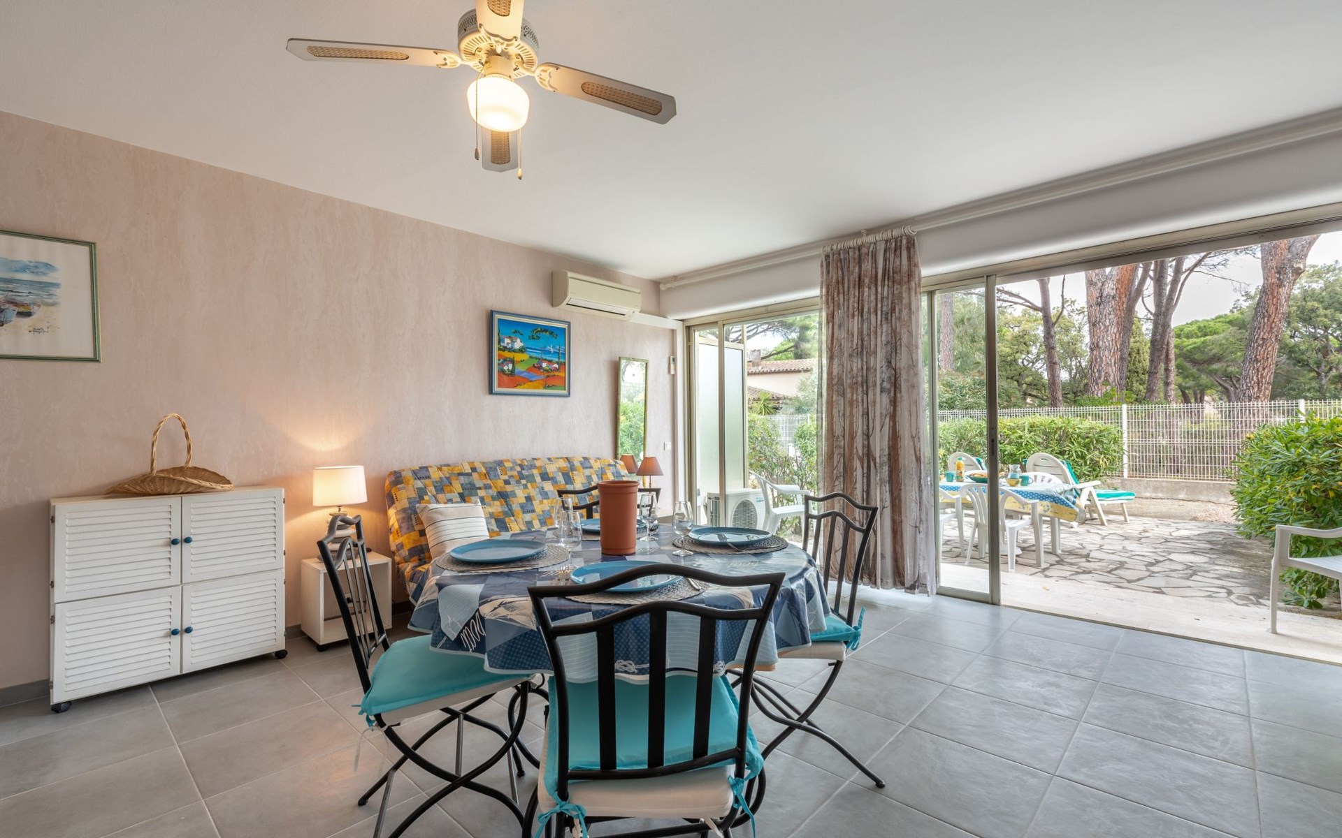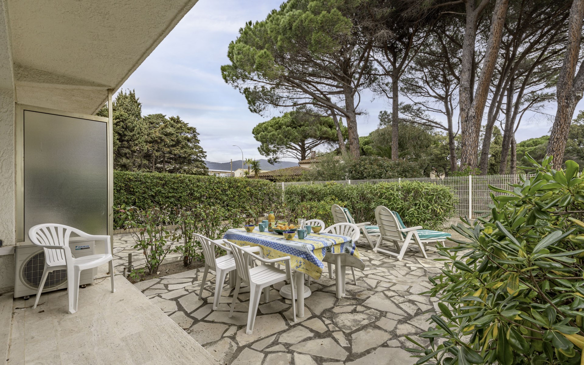 Residence "De la Plage". In the resort 800 m from the centre of Cavalaire sur Mer, on a slope, 10 m from the sea, 10 m from the beach, direct access to the beach, south facing position. Public parking 50 m on the road. Shop 300 m, grocery 100 m, supermarket 500 m, shopping centre 10 km, restaurant, bar, bakery 100 m, bus stop "place du parc" 450 m, park "Aqualand" 24 km, diving center 800 m. Sports harbour 800 m, sailing school, minigolf 12 km, cycle lane 10 m. Nearby attractions: Azur Park, Paint-ball 12 km, Bowling à Port-Grimaud 13 km, St-Tropez 17 km, Ste-Maxime 24 km. Hiking paths: Sentier du Fenouillet 3 km, Sentier du littoral 7 km, Toulon 60 km. Please note: the keys‘ handover takes place by the agency Interhome in Cavalaire. Main road close by.