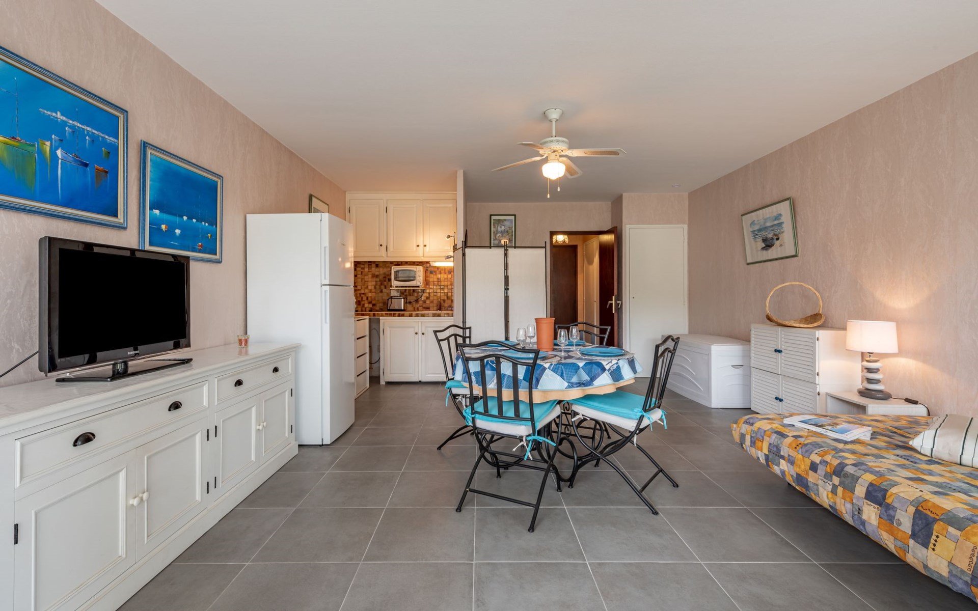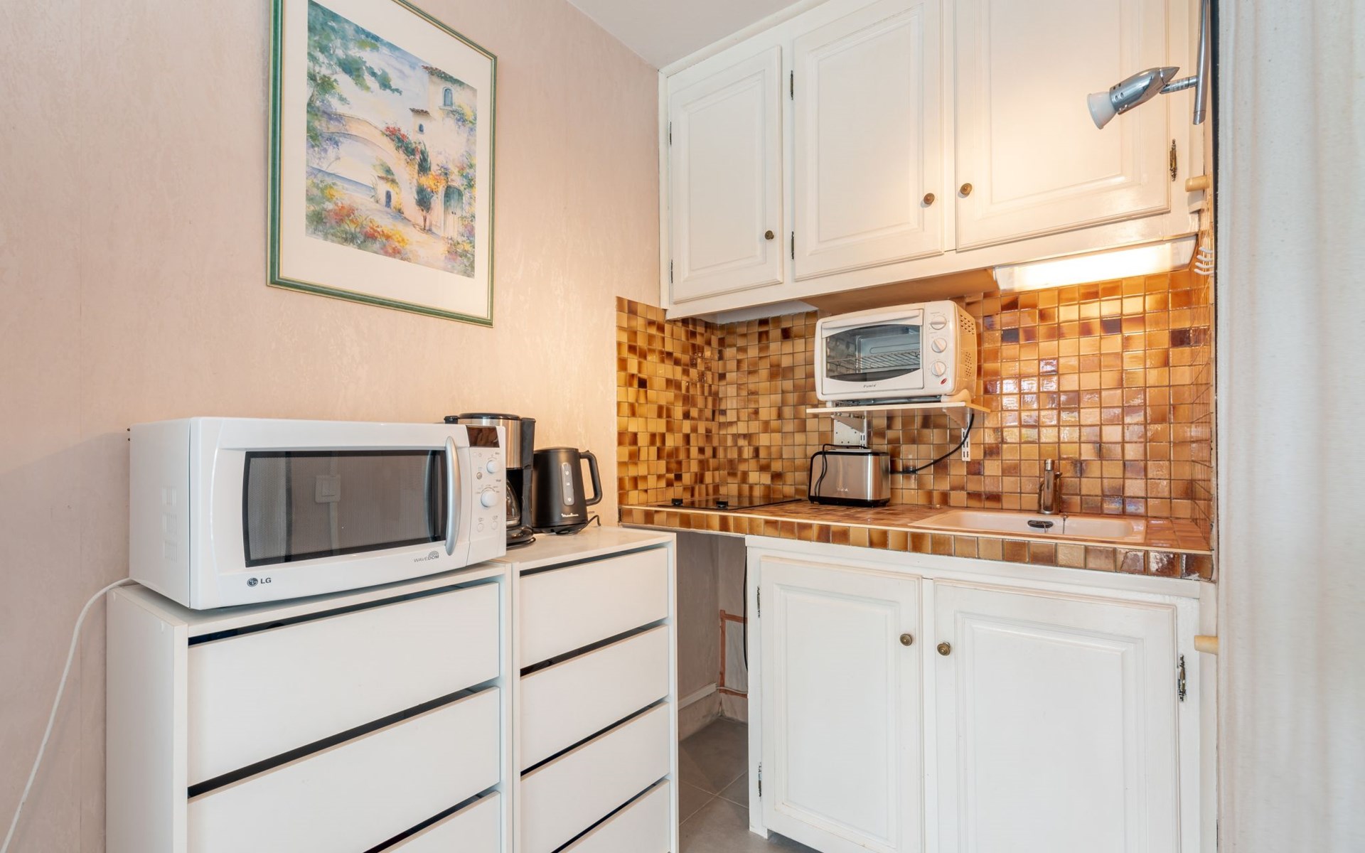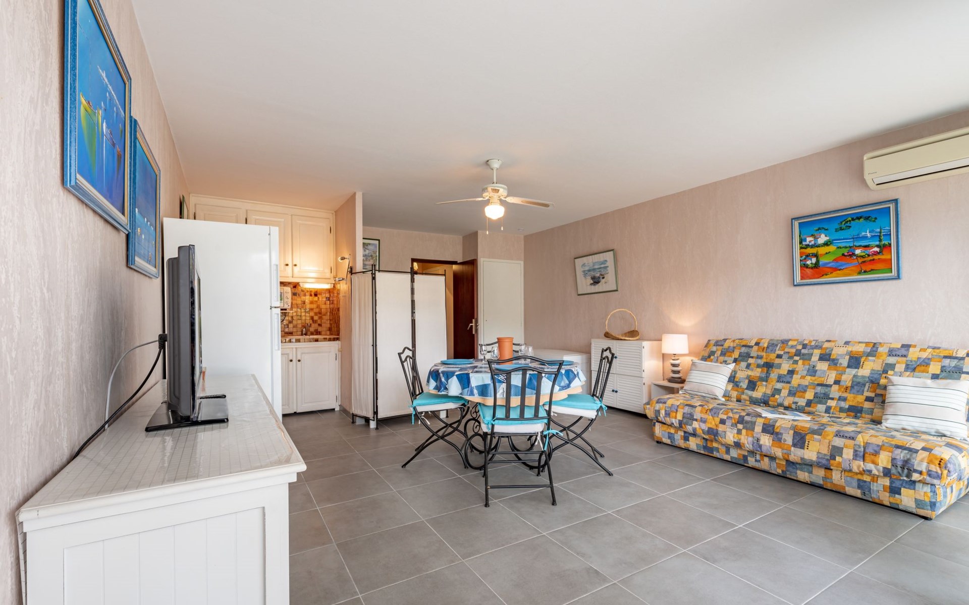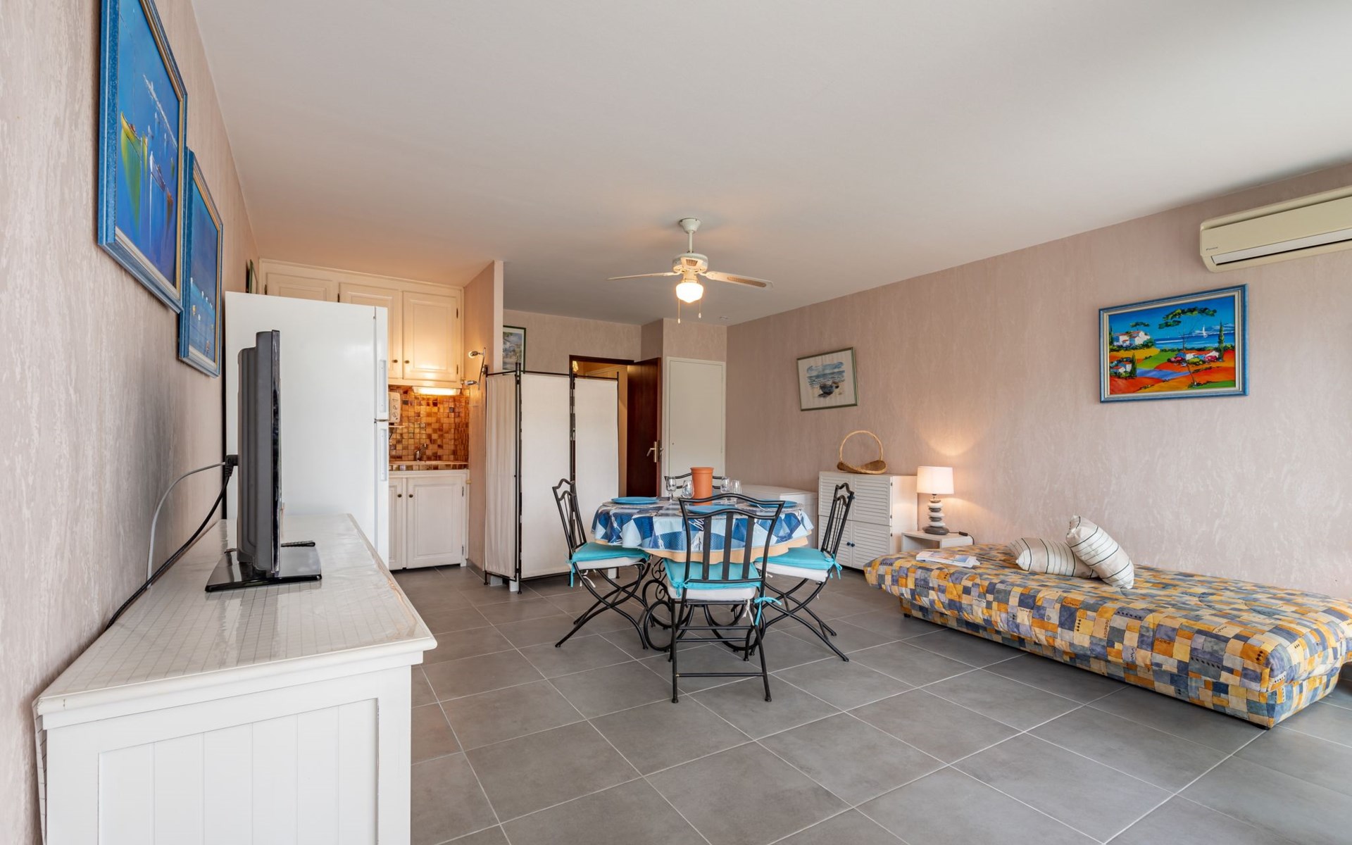 Residence "De la Plage". In the resort 800 m from the centre of Cavalaire sur Mer, on a slope, 10 m from the sea, 10 m from the beach, direct access to the beach, south facing position. Public parking 50 m on the road. Shop 300 m, grocery 100 m, supermarket 500 m, shopping centre 10 km, restaurant, bar, bakery 100 m, bus stop "place du parc" 450 m, park "Aqualand" 24 km, diving center 800 m. Sports harbour 800 m, sailing school, minigolf 12 km, cycle lane 10 m. Nearby attractions: Azur Park, Paint-ball 12 km, Bowling à Port-Grimaud 13 km, St-Tropez 17 km, Ste-Maxime 24 km. Hiking paths: Sentier du Fenouillet 3 km, Sentier du littoral 7 km, Toulon 60 km. Please note: the keys‘ handover takes place by the agency Interhome in Cavalaire. Main road close by.