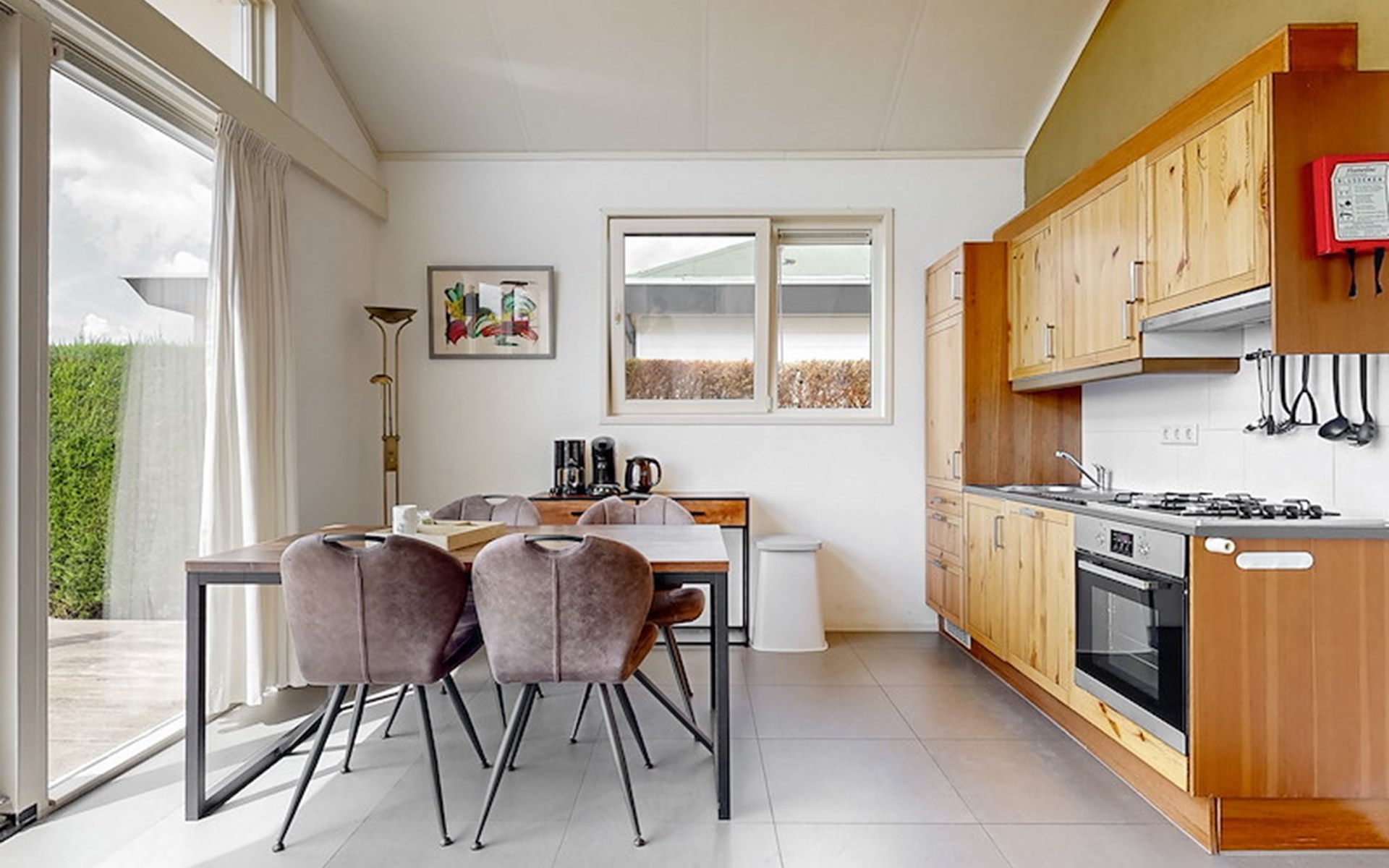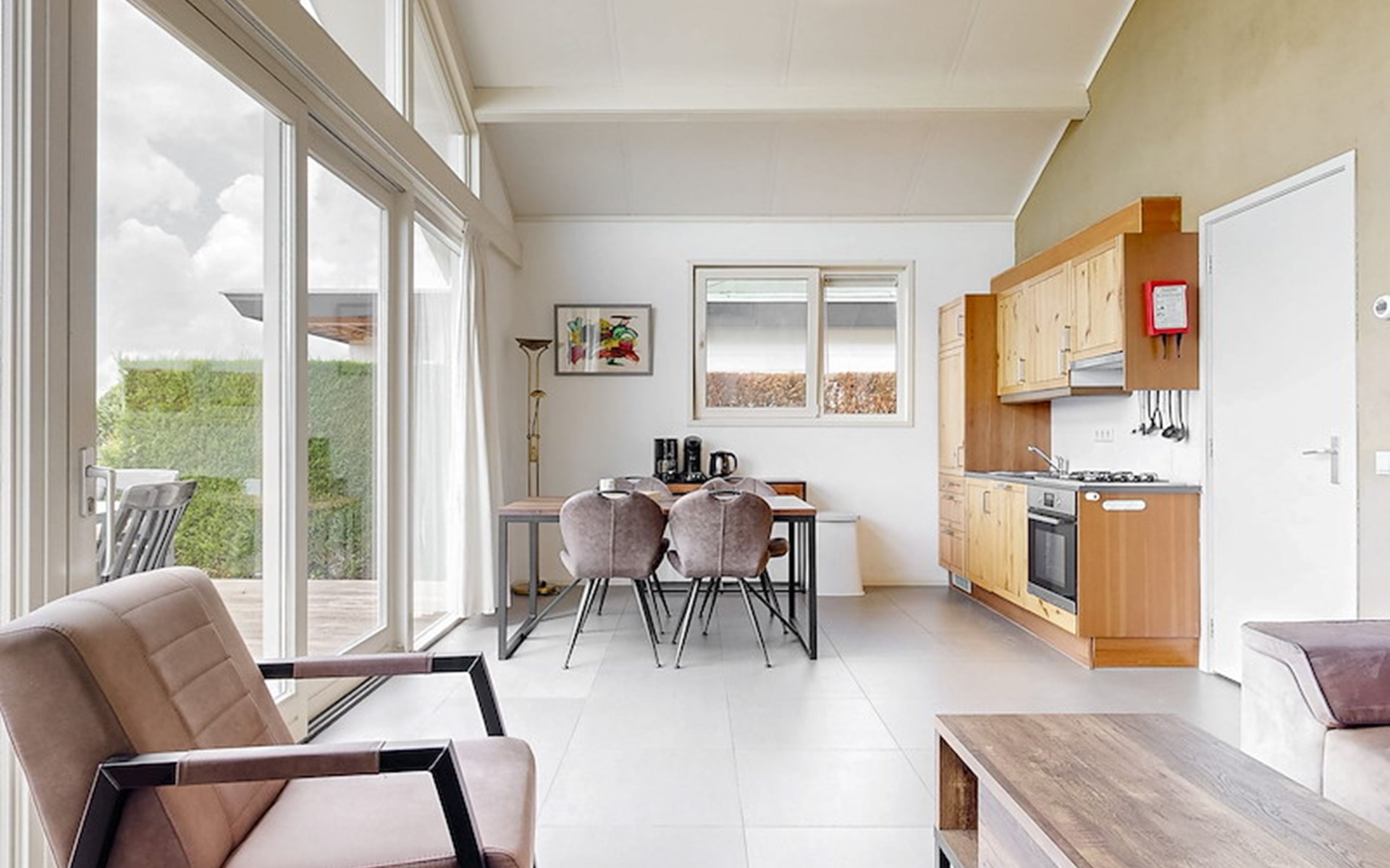 The Wilgenroos features a cosy living room with Smart TV and an open-plan kitchen, fully equipped with a fridge with freezer compartment, an oven, a microwave and a dishwasher. The chalet also includes a bathroom with shower and toilet, two bedrooms each with two single beds placed together, and a storage room with washing machine. In addition, there is a furnished terrace where you can comfortably sit outside.