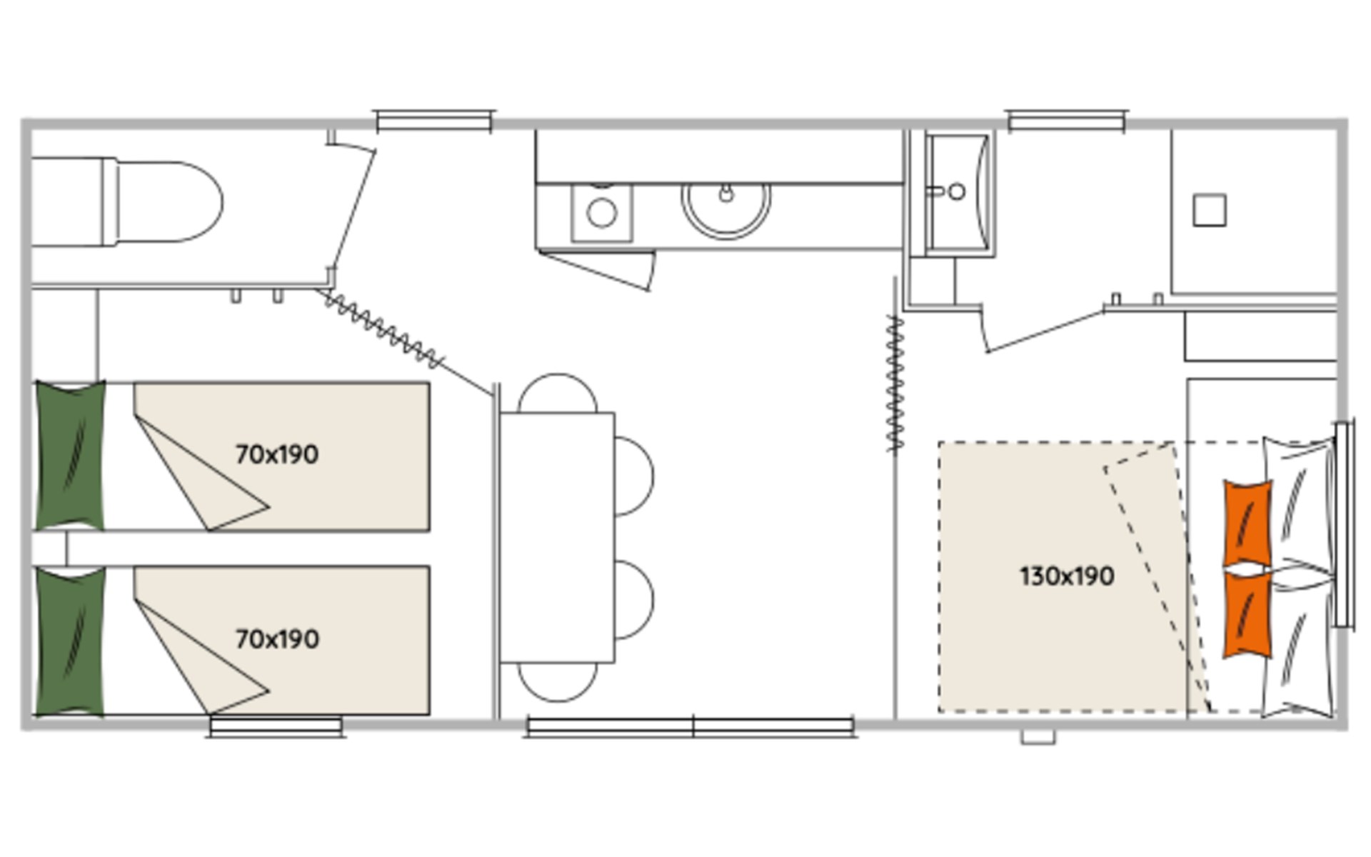 Accommodation with 1 bedroom + sofa bed.