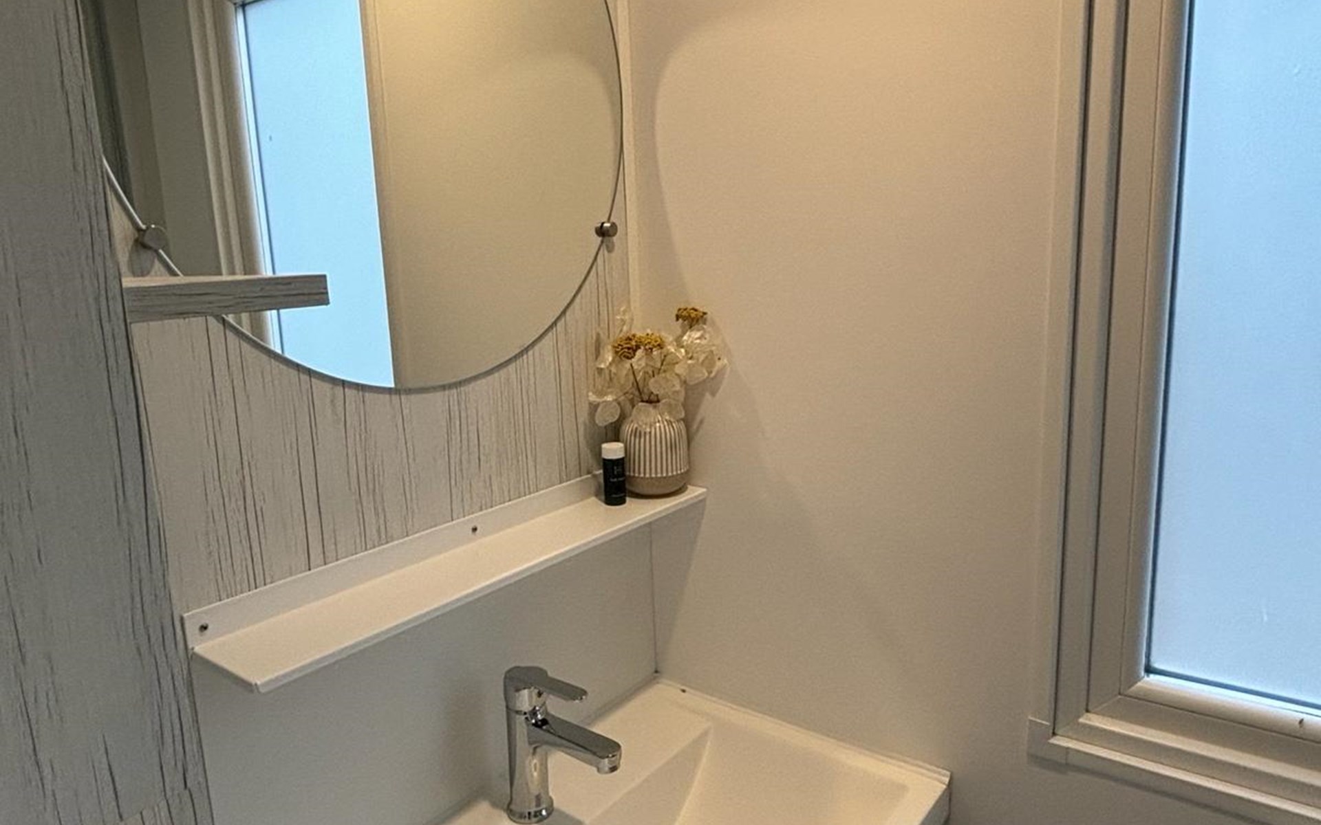 Kitchen, bathroom.
