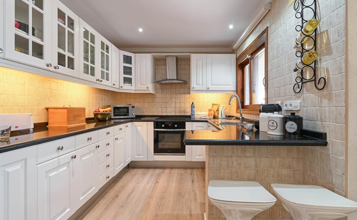 The villa has 4 bedrooms and 3 bathrooms, spread over 2 levels. The accommodation offers privacy, a garden with trees, and a beautiful heated pool. Its comfort and the proximity to the beach, shopping areas, sports activities, and places to go out make this a fine villa to spend your holidays in Spain with family or friends.