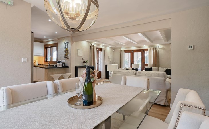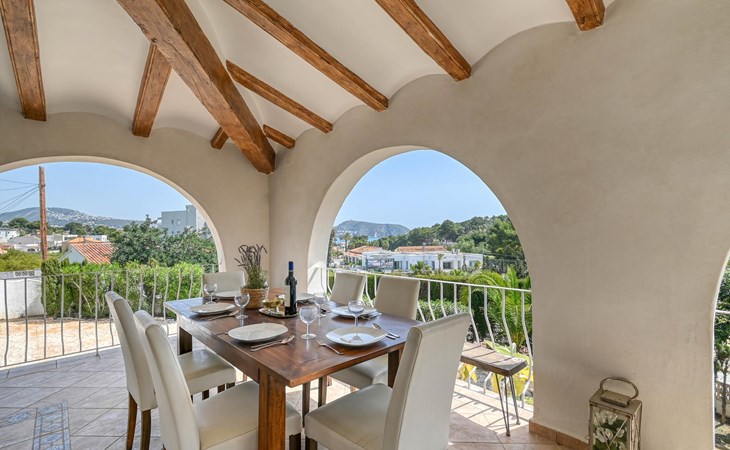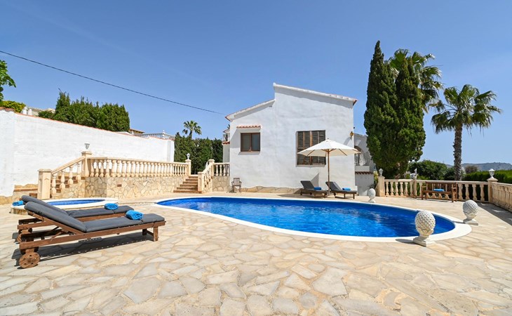 Wonderful and classic villa with heated pool in Moraira, Costa Blanca, Spain for 8 people. The house is situated in a residential beach area, close to restaurants, bars, and supermarkets, 500 m from Cala Andrago beach and 0.5 km from the Mediterranean Sea.