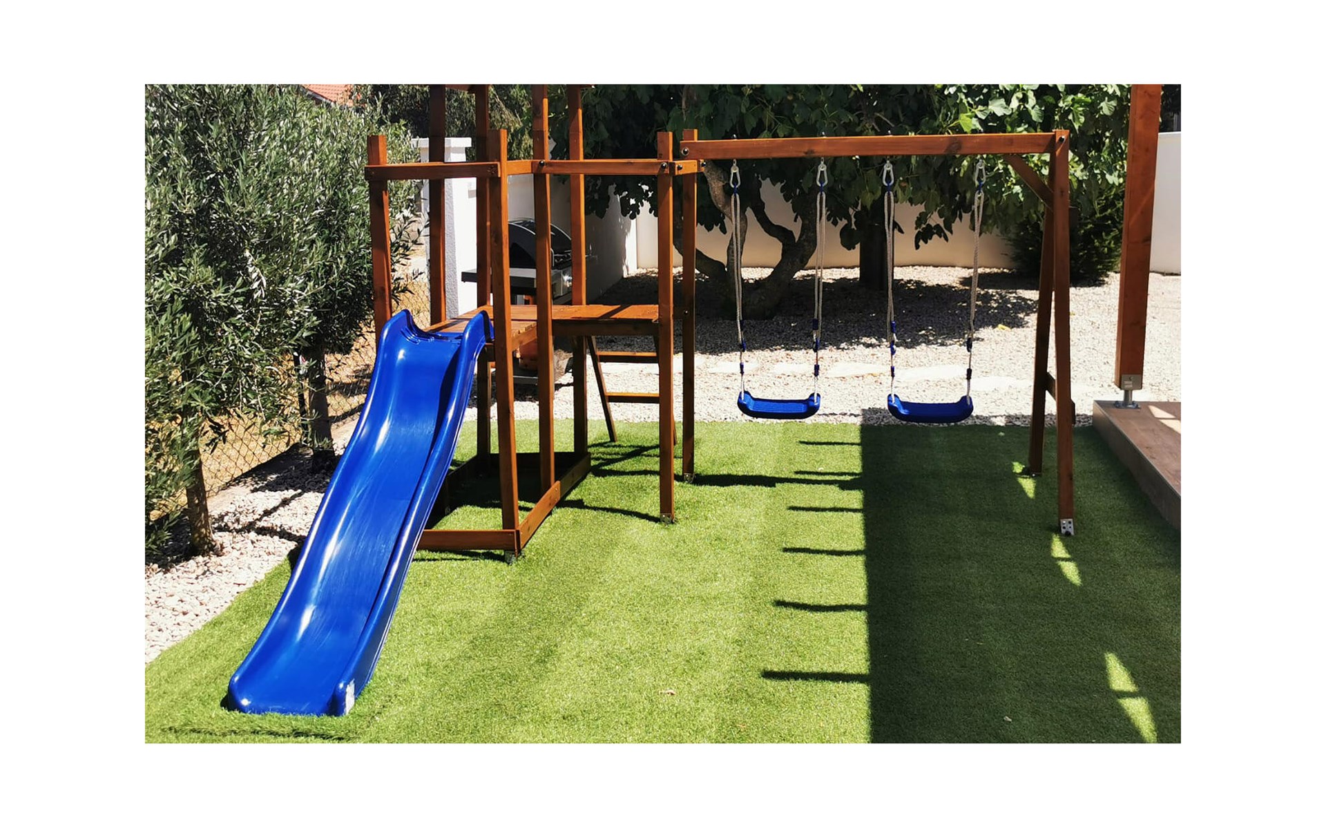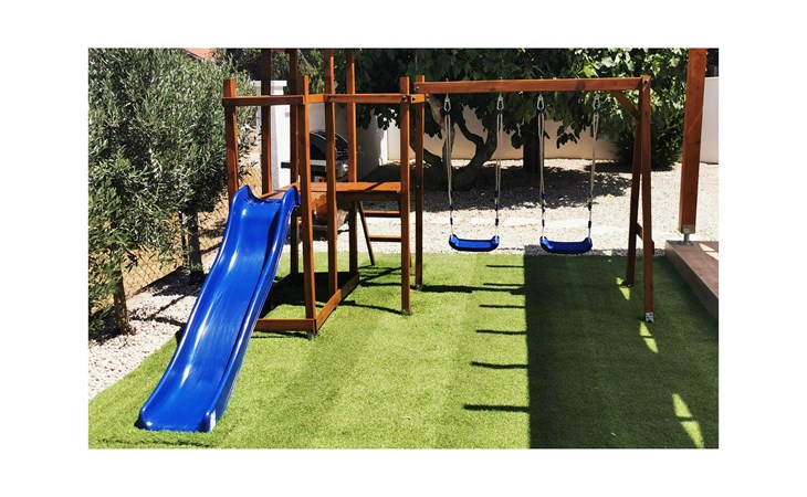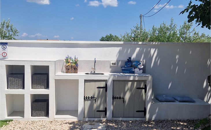 This stone house mixes between quaint and modern furnishings, moreover, it offers you complete comfort for a pleasant stay in this small village, where you can quietly escape from the noise and bustle of the city. Make yourself at home in this spacious domicile, where the homely and comfortable furniture combined with stylish decorations create a carefree atmosphere to feel good. Here you can make yourself comfortable with your companion for a vacation and enjoy your time in Croatia. Enjoy your meals here or barbecue in the courtyard under the roof or in the bright sunshine, this terrace also invites you to devour readings or sip coffee. Dip your toes in the pool, take a nap in one of the sun loungers or watch your little ones play, who have among other things a swing and slide at their disposal on the fenced property.