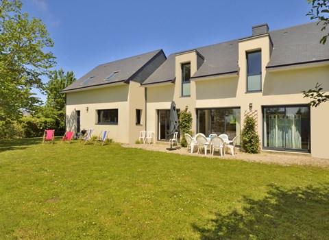 Enjoy an unforgettable break with the family in this large holiday home surrounded by greenery with a pool.