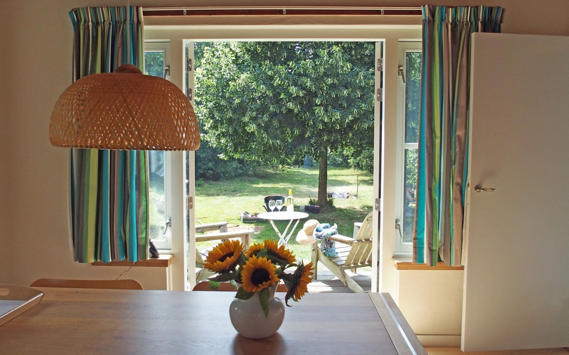 Through the front door you enter the Rommelpot holiday home in the hall that gives access to the living room. Here is a sitting area around the wood stove and a dining area. The patio doors give access to a terrace and a huge garden. There is a separate kitchen (2016) with all modern comfort. On the ground floor you will also find the simple bathroom with bath, shower and sink. Ensuite there is a double bedroom. On the first floor, which can be reached via a steep, narrow staircase (with a stair gate at the top), there are two bedrooms. There is only one toilet in the house (ground floor).