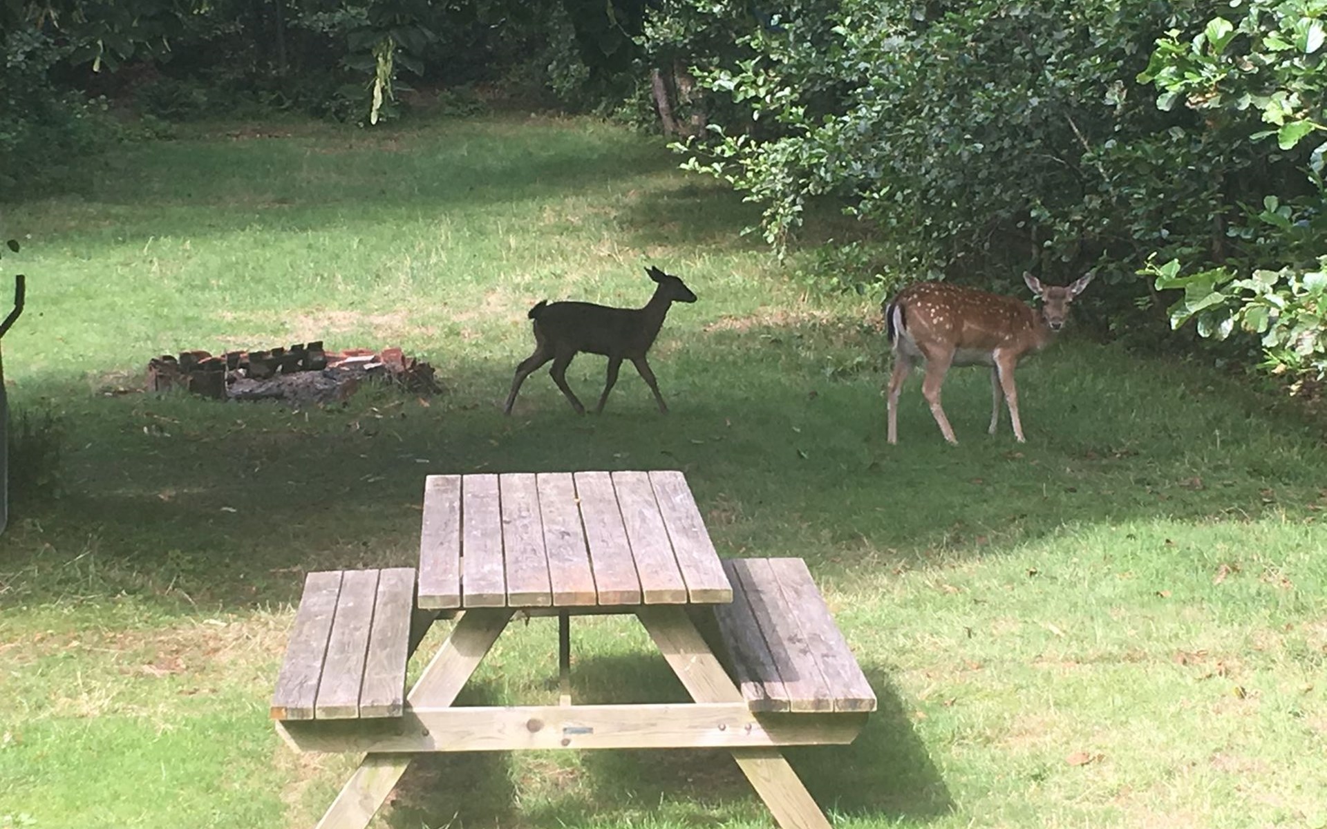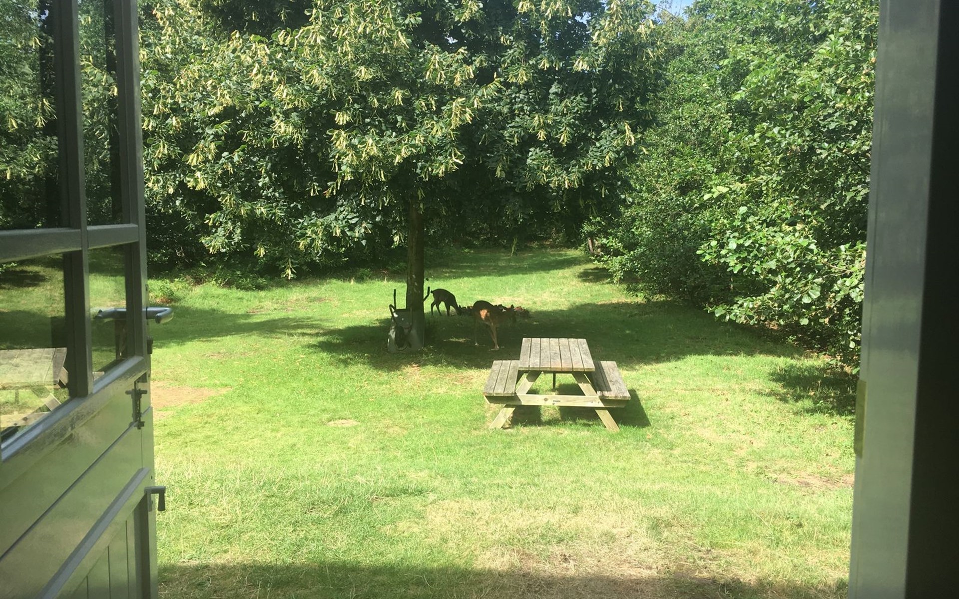 De heerlijke kamers boven en het konijn en de reeën in de tuin maken het tot een idylle