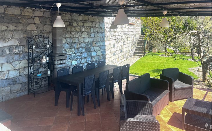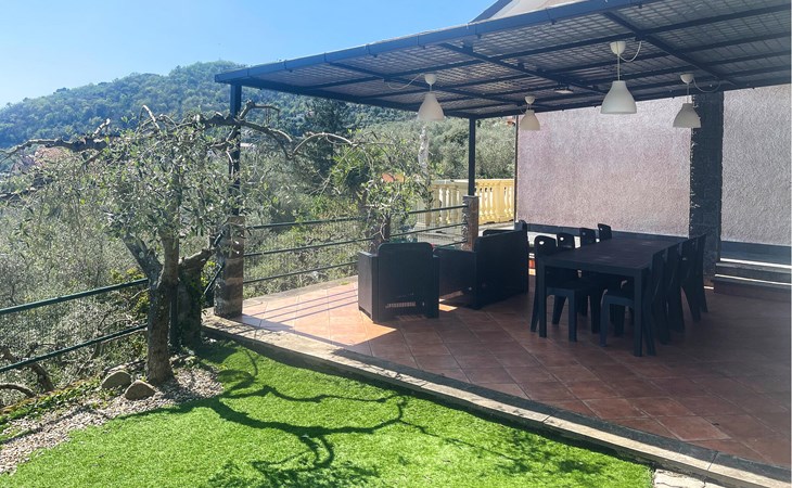 The many different terraces and levels in the garden give you countless places to stay and have your dinners together. The brick barbecue is another option to prepare a BBQ. You can catch a view of the green surroundings and the sea in the horizon from the outdoor area. The pool promises swimming fun for the big and small in the family.
