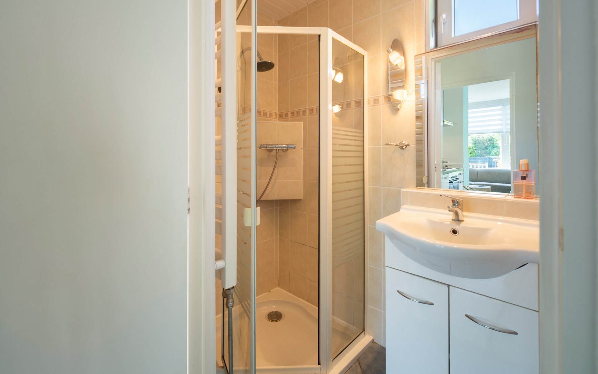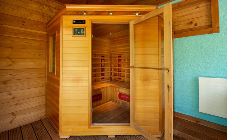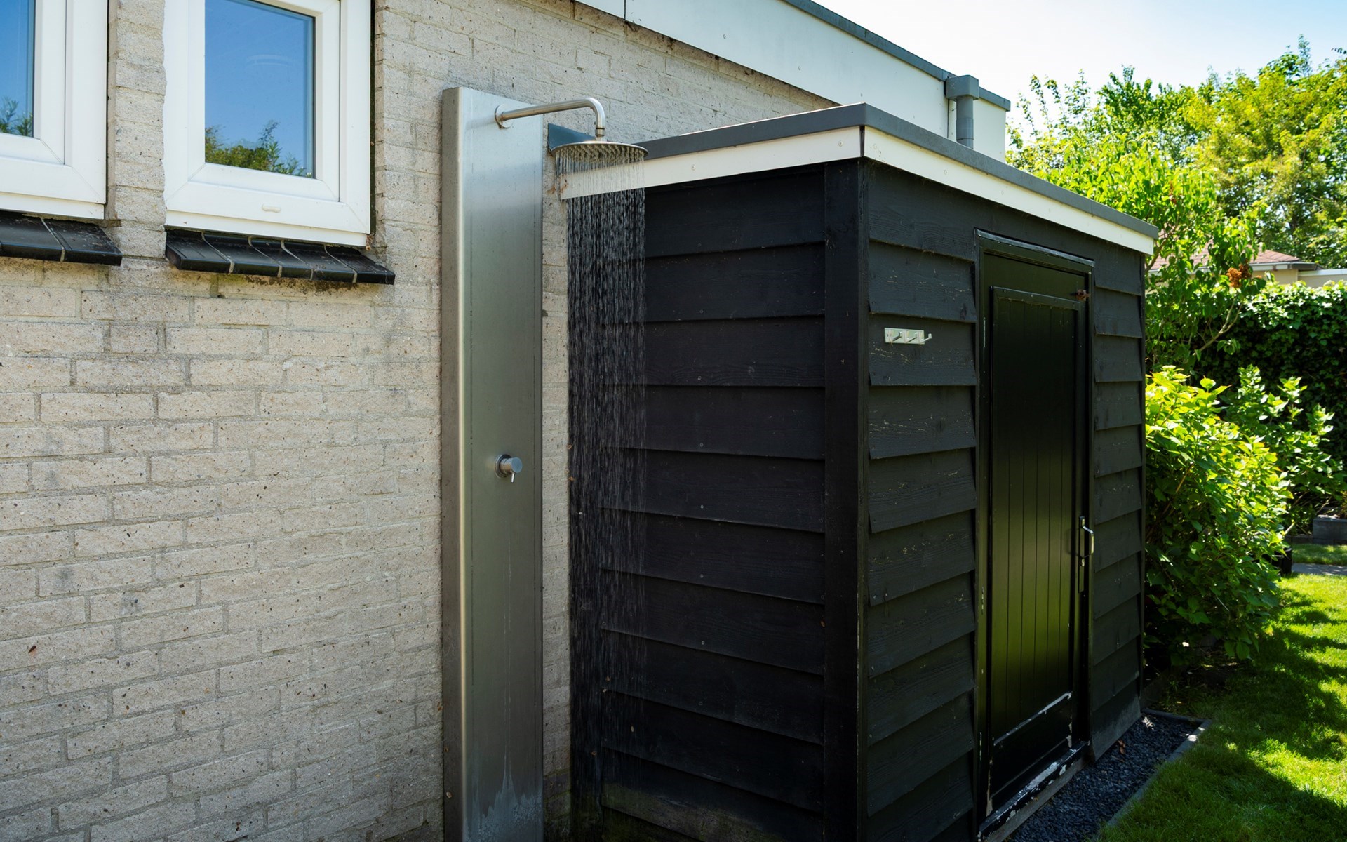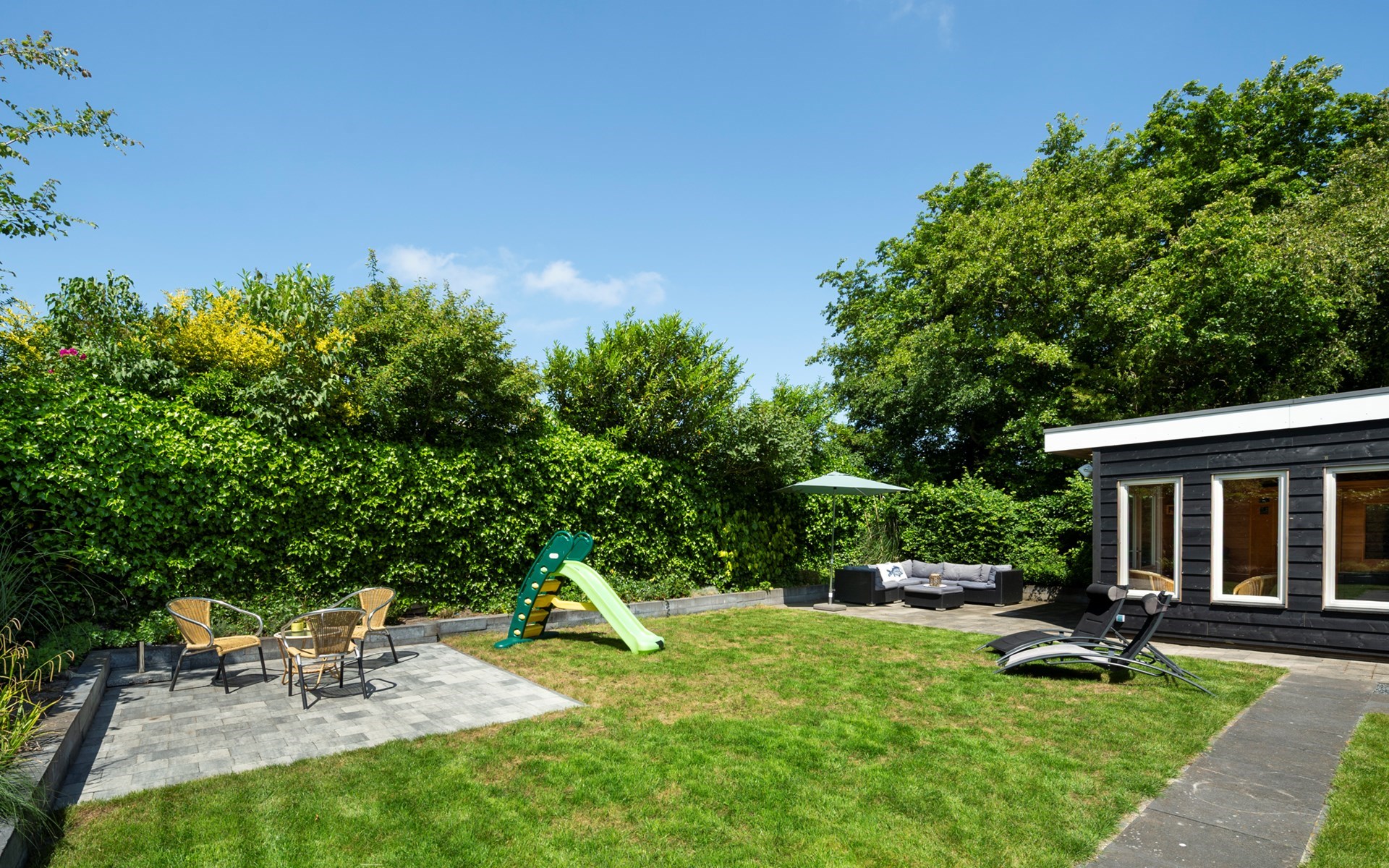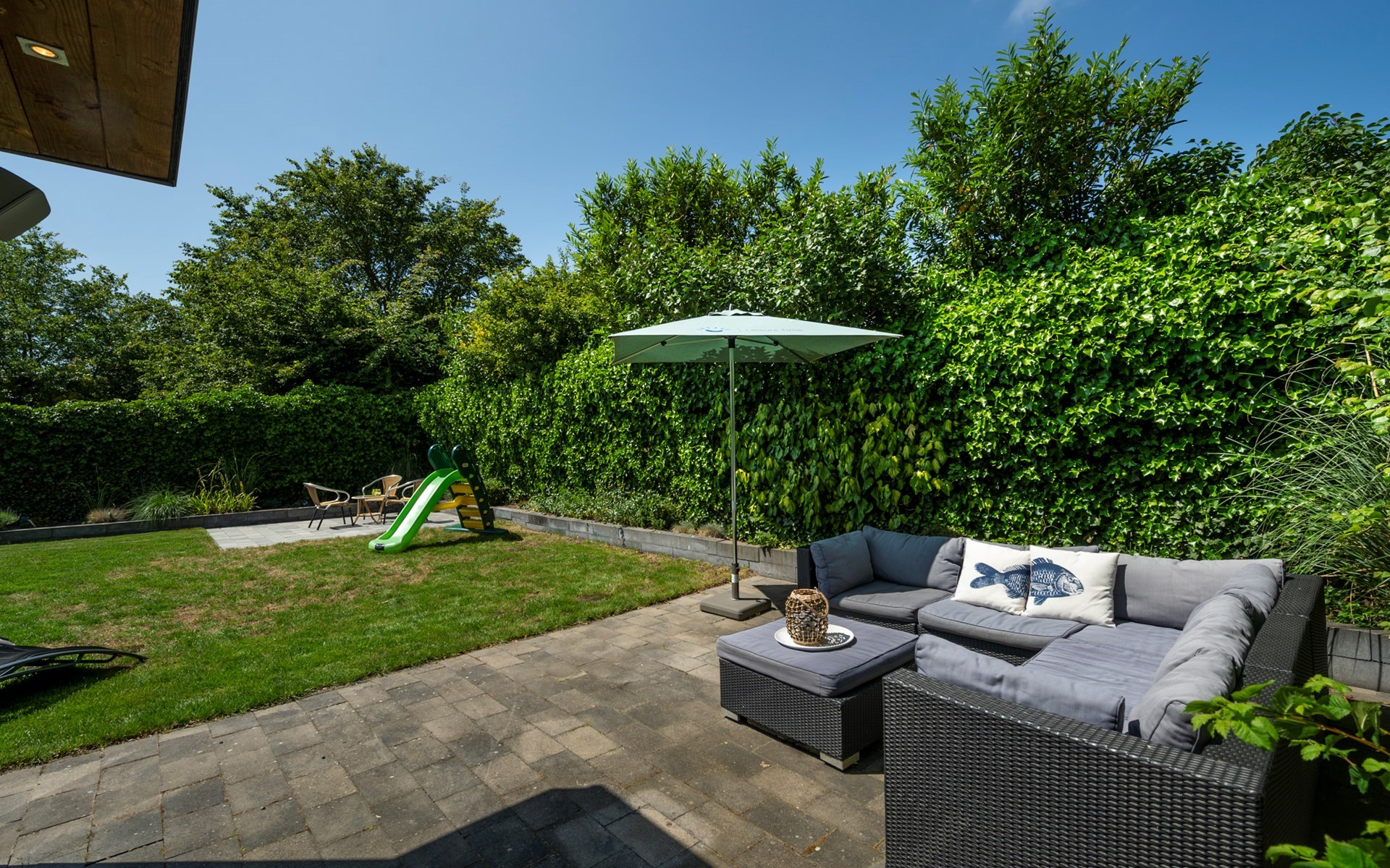 The fully-enclosed garden has two terraces with comfortable garden furniture and a lovely lounge where you can enjoy the sun and the music from the speakers. You can find an infrared sauna in a separate space in the back of the garden where you can sit down and relax. Also, a luxury outdoor shower is present. Furthermore, there are a small terrace in the front yard, two parking spots and a cabin present.
