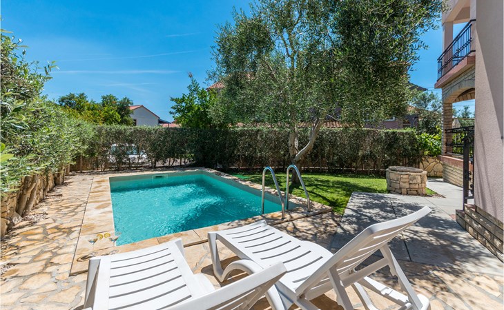 These tastefully furnished apartments with pool (CDA484 and CDZ760) are located in a family house in the village of Bibinje, not far from the town of Zadar. They are surrounded by greenery and have children's playground equipment such as trampoline and swing for common use. In the vicinity there are numerous national parks that you should not miss during your stay - Plitvice Lakes, Paklenica and Krka waterfalls will delight you with their unique nature. Also explore the city of Zadar, known for its rich cultural and historical heritage, the wonder of modern architecture, the sea organ and excellent restaurants with traditional specialties.