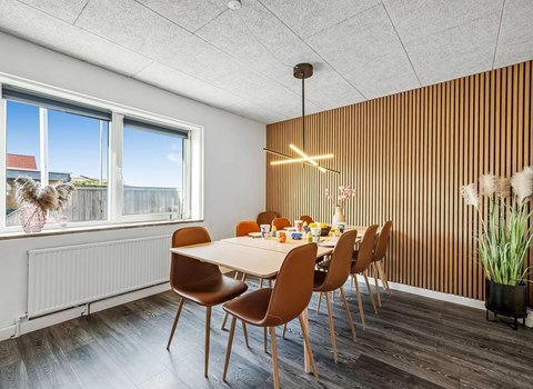 Enjoy the Danish coastal atmosphere in your modern accommodation that leaves nothing to be desired. Start your day with an extensive breakfast at the long, beautiful wooden dining table. Prepare your meals in the adjoining, open-plan kitchen. You can also dine outside on the spacious terrace, which has an elegant wooden roof to protect you from the wind and weather.
